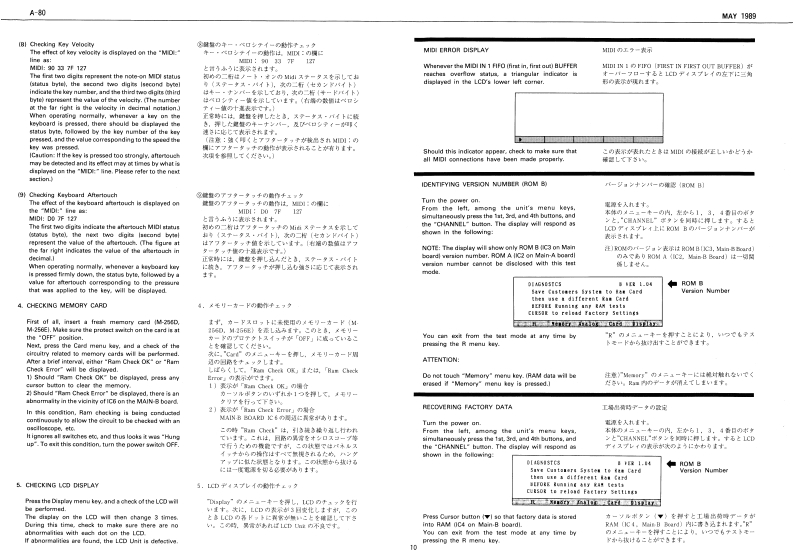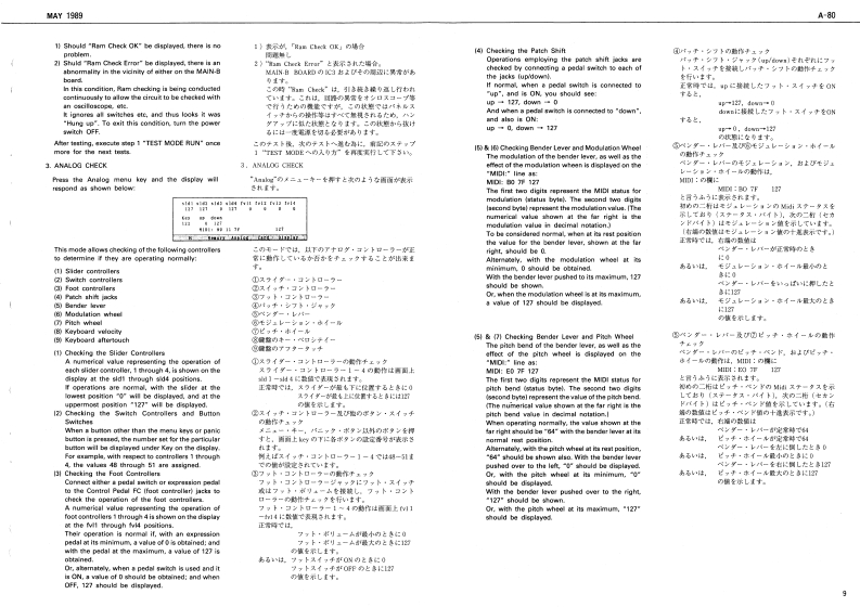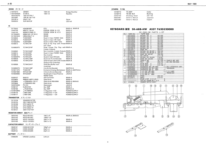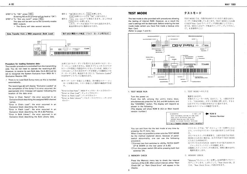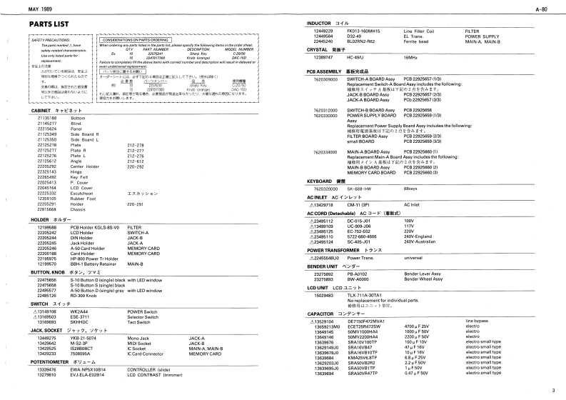 MAY 1909A-80A-80SERVICE NOTESTABLE OF CONTENTS日交PageEXPLODED VIEW分解回First EditionPARTS LIST心一y型习3.4MIDI KEYBOARD CONTROLLERKIYBOARDDATA SAVE/LOAD7ERRATA&SUPPLEMENT is attached at the end of the peg呼.◆TEST MODE于入老■家8-10SPECFICATIONS最锋真父正提表&追加情银加务可生寸,IDENTIFYING VERSION NUMBER=梦■十个…0速那10RECOVERING FACTORY DATA工增出商砖子一李较定KEYDOARD是取时内e年rdOPTON8Kepbaare sandBLOCK DIAGRAM11d,e2。风法M-2500.M-aS4EKEYBOARD(PCB)货塑多根12,1L①DAY24用■dowLtdm Balliry fer Momary GordMAIN A BOARD414,15C0wL代nk1G4情1-67)@升20021X6U0MAIN.B BOARD有保基板14,15RATON SHFT ON SV OFT OVdd聘过2.06乃到MEMORY CARD BOARD毛U一卉一华落核14,dd wwtillYolme pecal-4SWITCH-A BOARDMDSFMC cablsM3%00/155010018SWITCH-B BOARD1JACK-A BOARD少十学分青系短17JACK.B BDARD少+学少B系板/12置21POWER SUPPLY BOARD量系超25*85机号FILTER BOARD241SMALL BOARDx毛一(小]番看IC DATAG子一事19.2023451号CHANGE INFORMATION蓝毛发内14ne-624961t024A2345124Fedal suikih皇171转1购WA8F3BB010000000000000104e▣g-y puejoyG220414dEw-1PSE10014-T11-知如(1384015254500客:0的8Mh24是eto n 0o tttu起A口4444D14d--in-it-itHdvRoand Ra-HV211酒卫LA-W▣F【u02的RolandPrinted in Japan2《DP)1