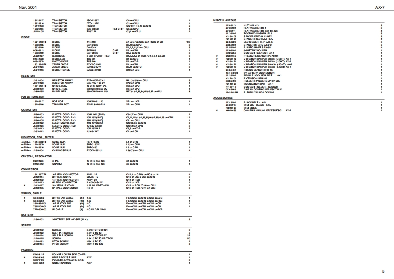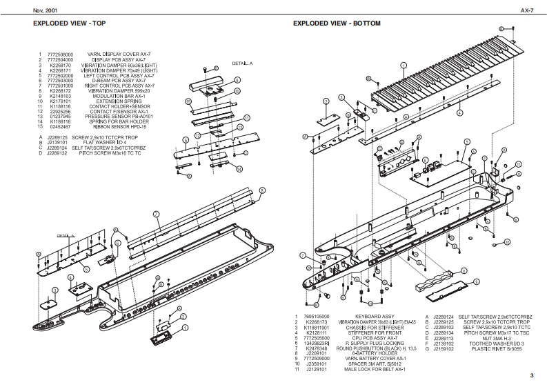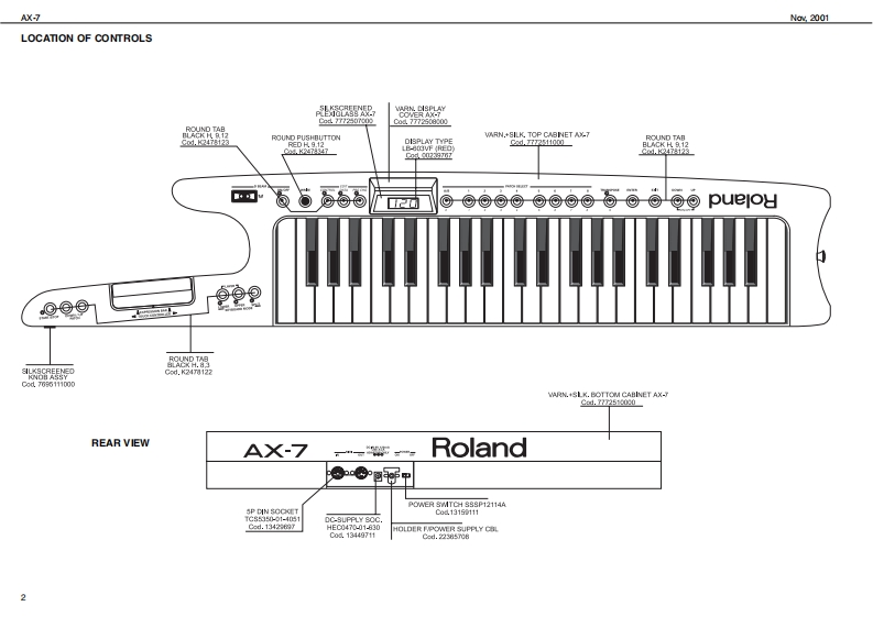 Na,2001AX-7A×-7SERVICE NOTESSpecificationsFirst editionan吐y keyboud wih Vlcty 5南yC了队p或MI▣I KEYB▣AH▣CQNT7▣LLEAC+rx7nt年Lay controlIssued by RESRetime controler DntaEnry Knob,Touh Controler,Bpreaion Bar,Hold Buton,D-Beumemorec1通P¥daComectione MDI InDC N (adptor)Pau甲y:tra年atd,Optionl AC/DC Adptor ACA(0TABLE OF CONTENTSPageCmn山t010WMxt话0xt020mmSPEORICATIONSw中E10向LOCATION OF CONTROLSEXPLODED VEW (TOP)p ed dy bat从cabls,Ouner's Nanul,2 raEXPLODED VEW (BOTTOMKEYBOAFD PARTS LBT123346of the aPARTS LSTHOW TO VISUALIZE THE SYSTEM PROGRAM VERSIONHOW TO CARRY OUT THE FACTORY SETUPHOW TO ENTERTEST MODEBLOCK DIAGRAMCIRCUT DLAGRAM(OPU PCB ASSY 1/3)CIRCUIT DIAG RAM(OPU PCB ASSY 2/3CIRCUT DIAGRAM(OPU PCB ASSY 3/3)LEFT CONTROL POB ASSYRIGHT CONTROL PCB ASSY A ORCUIT DAGRAMDSPLFGASSY&CIRCUIT DIAGRAM6669012345667D8 EAMPO阳SSY&C0 T DIAGRAMCONTACT PCB ASSY W RUBBER&CIRCUIT DIAGRAMDISASSEMBLY⊙⊙A J2289124 SELF TAP.SCREW 2.906 TCTCFRBZ是贸器2250125Copyright 2001 by ROLAND CORPORATIONRolandSN00058K6018459Pinted in ltaly (100)(AD)1