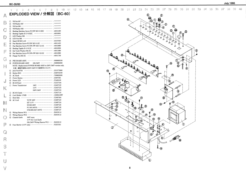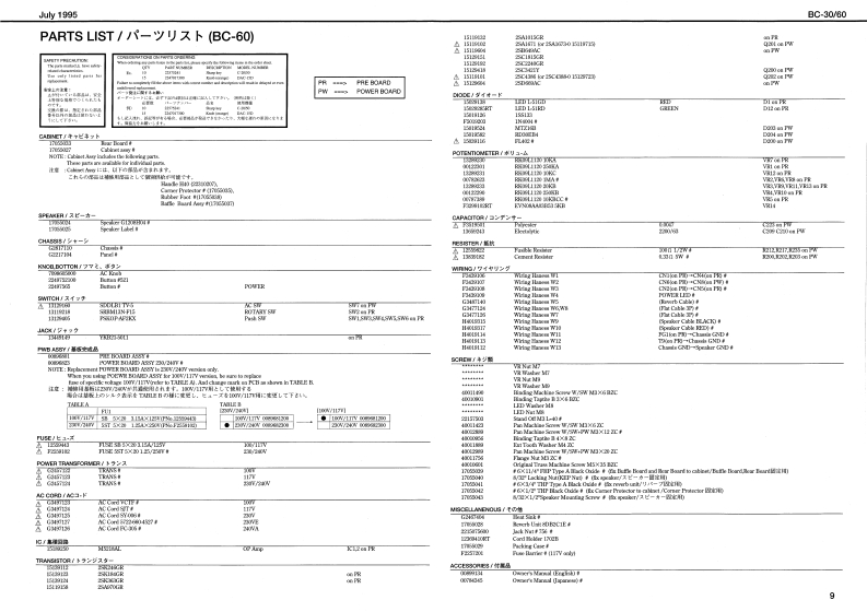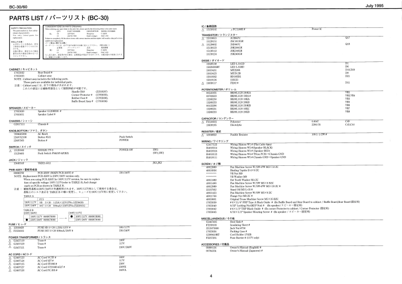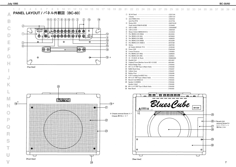 July 1996BC-30V60日-日▣/6▣SERVICE NOTESSPECIFICATIONS/仕樣【ec-3lFirst Edition1BC-0e1BluesCube01LL1了厚F平P44:am0Wa-0T竹s●22C门卡D=44-++++++4+1HA月I了hM00LAL ChaeelTABLE OF CONTENTS目次Page8KT 8otck5山CC围-dNnW/西GENERAL VIEWMD儿uEWOLLDIERAGESPECIFICATIONS仕横…1BGKT SeichLEAl ChimdlPANEL LAYOUT/バ礻外硬回(C30)2程OuE1OSTWHIN0EXPLODED VIEW分解回(B0-30》…3FE VLUVEPARTS LIST/t-y少入卜(BC-30以4POT VOILLVE48CIRCUIT BOARD基板回(BC.30)5V月tAEBTn山CIRCUIT DIAGRAM回路☒〈PCB/BC-3D6比NASTEIGendVUCKKLRAKIPANEL LAYOUT)《来儿外领冈《BC60》4…7PrWEI Susch3040523电7有-…tNTAEXPLODED VIEW分第☒《日C创)4·CRANKELSELECTYRo Sea:tPARTS LIST-y)又卜BC6的)…V120 00/IcbolHEEXCECIRCUIT BOARD基板回(BC0)…104181u求hCIRCUIT DIAGRAM回路☒(PAE/BC60)…11ee作/3a夕奥一==一…-一:Tc垂/重里GHh目.T4WCIRCUIT BOARD基板圆(P0WEA/BC-80)…12T.DeBTRBTsotSekdi●ecda4/付国4=-==-10wn山=Jipaoete Ponoagen于1T手×力香ADJUSTMENT调整仕横(但C-0)412Dhwors )anakTngat)PV00806%6卡e到ethsCIRCUIT DIAGRAM回路☒(POWER/BCGD)13年3te件r制先及Rabad Pt08见5410D1451103桥1ux1FV1情重州重重44一12a42 Be Soe◆A2e4y州其4es34d线物%m相花大国Oweer's hlamal eah PMo-b0d06134年3w销光是GENERAL VIEW/概觀☒日C-30/日C-608C-30BC-60Rohnd。6l6.o6o6o6ō96g8-co000⊙6100·●06.0000000100▣Roland17059816Printed in Japan AFAO (DP)1