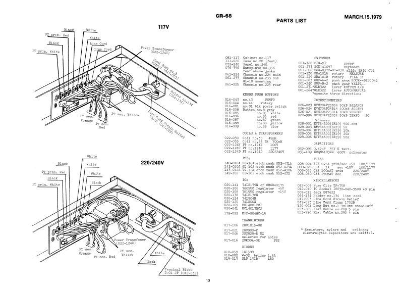 MARCH.15.1979CR-68LOGE SMBDLCR-68 SERVICE NOTESTEe转E尚向向向向向的SPECIFICATIONS4COTPUT LEVEL0dBnn题x0701,i9xAccant ninCUTPOP INPEDANCBHi:220k-chn Lo:10k-ohm磁RIGGER PUL8E CUTFUT04:+1570fr:07的POWER COMSUMPTION8 vntts品260¥)x275(D》x180(H)m=DIMENSI008VBIGHT4.5kgyn球F0原DECODERS/DEMULTIPLEXERSwMote that therePot.BVHCOAP25354Pot.EVH2CAP25854[026-023)[028-966】onob no.43(016-043japward throv and0bn0,44+1o到TAL通downvard tarow(016-044jLBD8LP-151B(D19-015》h重4额40年b[Pot.尚时向时尚尚市尚BVHC0AP25B15Cabinet no.117](026-0248witch(081-1173DG5P(001-217】x ceKnob no.B1Punel no.240(016-0g1】Pot.1072-24D4013 TAUTH TARLESo1999990T8witeh no.2731026-021)8K-41097SYNOHFOMOUSINPuTSCUIPUTE{001-2T31L FOISxiteh 818522Tc01-254)upw9r4WEX NVIRTIRS3U里-6-29d04白+9g-L8Sxitoh no.273](001-25】6总白6点合奇80K-41097CUTPUES001-2735pD3L3228witch SRA10151(001-2319ggg9回[c01-20)domverdNPE.N U8vitch SRA101B]〔001-229)0甲-E-2[001-240jnno.20(faot]STRMTE(111-020P4901 QUAD 24NPUT NOR GATEButtona风ameplat8VAEn0.8Gr8741《076-56)n0.89B18.a60色06量0no.88 YellovLOGC O MCabinet Renovalno.87 Green简风风aRA问Serexs 4x20mna.85月edno.85 Wnita6g909o四8x1tchH3W-0372-01-D0Jacka 867622L(016-0"D《001-206)[009-012J山Printed in Jepsn Jun.'82 E-2