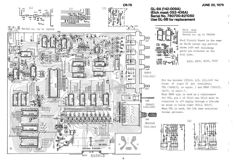 JUNE20,1979CR-78LDCIE TYMECLSMJ4LS174.SN74LS175.F40175CR-78SERVICE NOTESITO MIM司命向向向向向尚向的可的的觉Panel no.235Pot.EVHCOAP25B14(072-235】LYP6卫001-1CKL029-410)(026-021)Knob Ko.43[016-048jPot.BH0AP2515oootoo吧呵pg中响gSwitchS8N010(026-024】1001-242】LY6卫001-50团Knob No.43n013aKnob no.44029=411}(016-043》In using P40275,[016-044》reter to notewithDECODERS/DEMULTIPLEXERSon pag8日.LBD 8LP-131B53SDG5P(001-215】100W《001-241j001-2刀6117WODLF孔EDTY%FLPFLO81019-013)220/2407《016-080)001-217)4STO到TALdKnob Mo.81重4FLL0(D16-06m】帝高尚尚向向后3A202BLED 8LP-151B red(019-013)1001-244)8xitohSvitch3HL0231A-3254四TRUTNTAOLESd44(001-243》】,001-245]OUTPUTSSviteh0101SvitchKGA100373L-82号(001-273线:4特时(001-246):p-Ep+oKnob No.67ASYNCHRONOU省备尚尚卡司立(016-067)SwitchNPUTOUTPUTS31-号228witch(002-21)中用81H-522DD(001-231)女中99g9世品Switch80PA2KCA100370a8;1B888(fo0t)Na.20(001-239)(001-273》111-0203UFE2{001-240)ButtonaF40O1GD24NJTw0我aaT6OUT(016-00eGray82H4x60016-05尚品尚点品尚Red016-e7Greeno Lo016-c0Yellow016-c09Blue3v1tcbH图w0572-01-03019ck8307622#8(009-012)DL001-206J女tawoeRolandP,情同s0nal32毛2