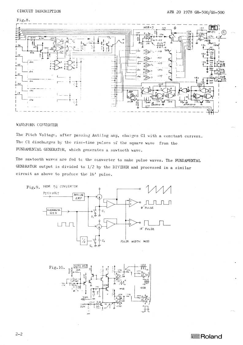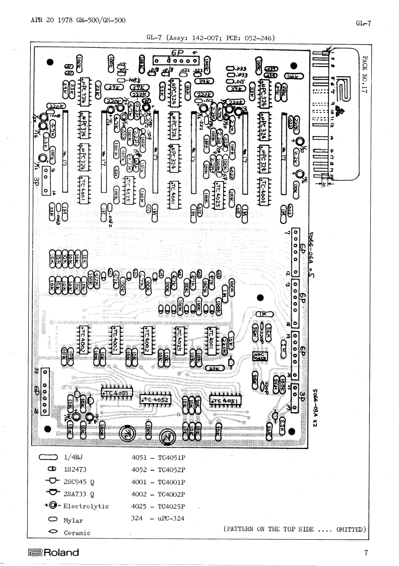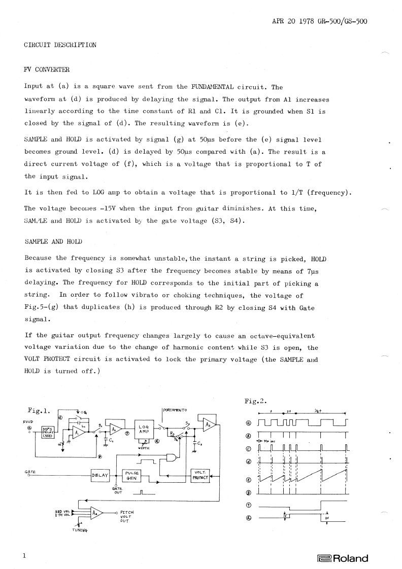 Guitar ControllerGS-500SynthesizerGR-500CONTENTSCIRCUIT DESCRIPTION1BLOCK DIAGRAM3WAVEPORM CHART ..........................CHANGES0 F CIRCUIT………4CIRCUIT DIAGRAM (Serial No.Up to 671299)...............................5CIHCUIT DIAGRAM (Serial No.671300 and higher)..........................oPCB PARTS LAYOUTGL-7.....................0P-71…8VGi-9.......................9FL-8……100P-73/0P-72....110P-70/0P-74...12S-37/5-38...13GS-500 GUITAR CONTROLLERCIRCUIT DIAGRAM.........14AP-72/AP-71/0P-6915ADJUSTMENTGR-50016G8-500......22PARTSILINSTRATION......24PARTS LIST .......27皇Roland