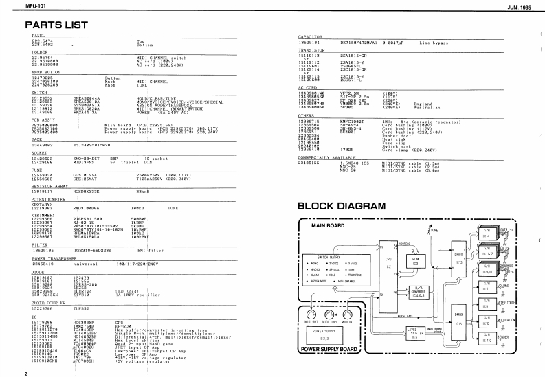 JUN.1885MPU-101DISASSEMBLYVMPU-1▣1SERVICE NOTESFirst EditionSPECIFICATIONSRLOIER FOOT D2356310 n SUPPLY B90A琴YCVonon1V作c1-Jw-+2TDYNANICS eetputOV-NaV28稀▣81H▣224DmATE SuAPuEHgh:+13V Low:OM●7axJ/16■●70ih100月st3t-W-21g4h.106呢HRAT SINKnn4t是ein0-+tOPTIONMDl/STC cable MC-25 12.5ml3C0150ml-+5TOH5琴0足A51A月15特329LDLR24161园9门01T0 V PANEL21444131252N0AND等Y00u5T05nn51G12141311地1114CKHg4月1003444040 LOCN I271明384ITOP PANGL 1222954741MASK (2224010200MTCH WK.2A4414C12I410圈5 OCKET MIDI S-NS134网9RTN湘MH7241见/TOP PANEL 1722154741⊙T1CPeL32a1s4aICOHD CLAMP I7OR28 (12360410 221.240VRoland