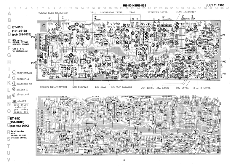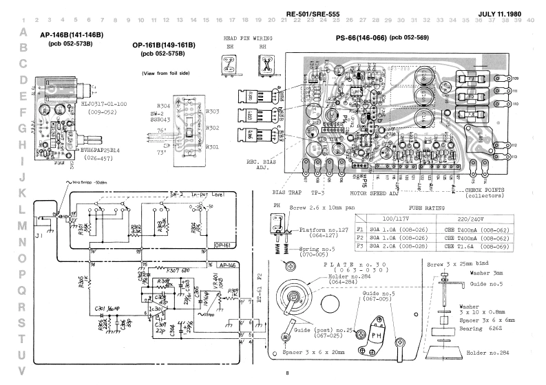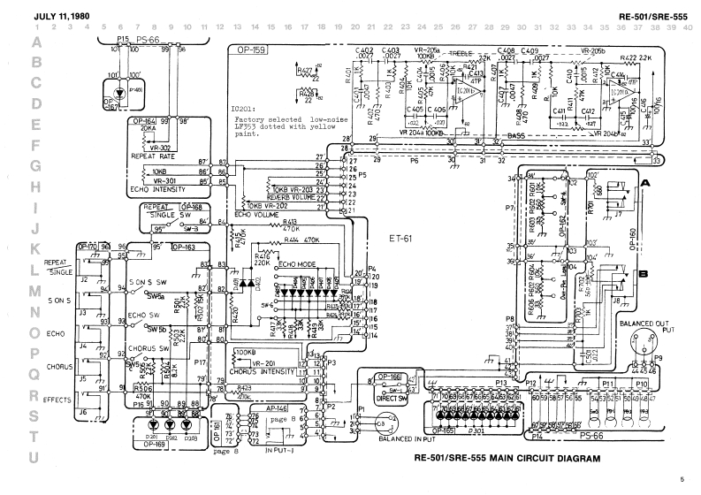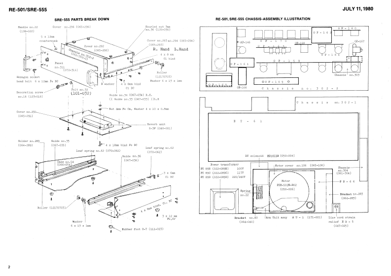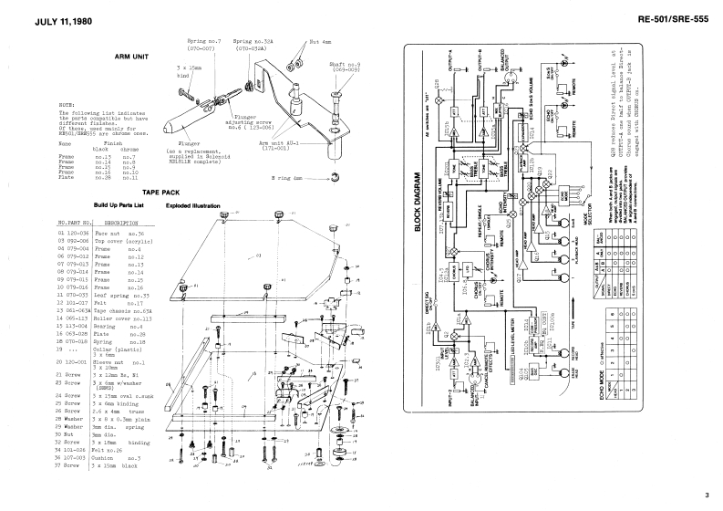 JULY11,1980RE-501/sRE-555RE-501,witeh8-1016(001-305)AP215obio.103(016-103)(027-016}SRE-555SERVICE NOTES8vitchSPECIFICATIONSPot.阳6PAP25B15(026-460}Pot.83B-70226SiohEVH6PAP25(13129113)100wea1w5大0=器.-如4¥且14E8B-70271P-455(026-457】(1刀29114)117vPowar Censumptioni2(WBwitehDimenaion:40Xw奶x160H)x4W7D壁88卫-02242(001-1B2)E8B.702938(13129115)220/240WWaisht158igptLd件中6aButton no.9 blackRE501LED BAR DISPLAY(016-009)4W0×9相x3D5gI-401〔019-D33】CABINED DIBA883MBLY:Renove screwa tvo decorations on both eide8;eight 4 x 25mn truas〔6bttom,2 aides)Maa上erCHORUS ECHOn0.42(121-042)H9n18日-15ConnectorDecorationnC-3里o时IEDPanelTop panel《10-004》80rewn0,15HA1-381R-124Serav0.299no.4 x 30 nn123-015)[010-26号]019-0281(072-299)〔086-019)black883-555c.sunkcont'dr色工七巴[taok510eSwitehJaakⅡJ-007-01-04088里-D4303《001-304)8F-032A19orJ-107-01-040《c01-3D6)(oountersunk op8怕in8(009-053)Button no.5Pot.BVH6PAP25814{016-0g5)[026-457)Pot.BVE6PAP25A24〔025-447)Panel coyer no.289《065-269)(Rx-501)3w1tah333-02305(001-205】85284Pot.BVE6PAP25BL4 (026-457)abno.78《016-078)JackCabinetNC-3P or1-0317-n0.135no.5061-02-2】Switoh6L8-02239(001-266}(111-00)111-02101-100(081-135)(016-065】02Nood 8crev(010-264】(009-052)2.7x16mm3.1x20mm67*NOTE Jacks on later productsHJ-1317-01-100 coumtersunk.RolandPvisied in Japan May'2 A.3
