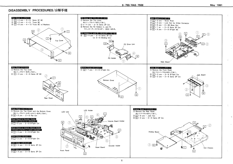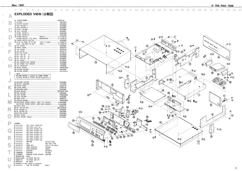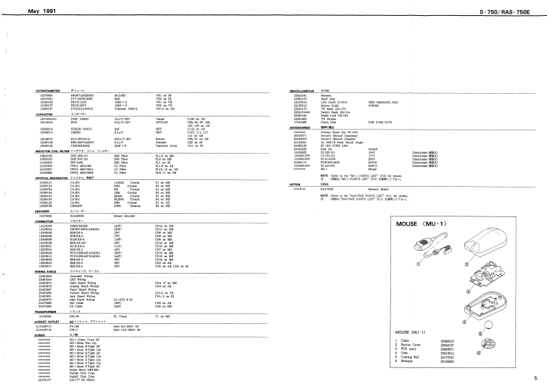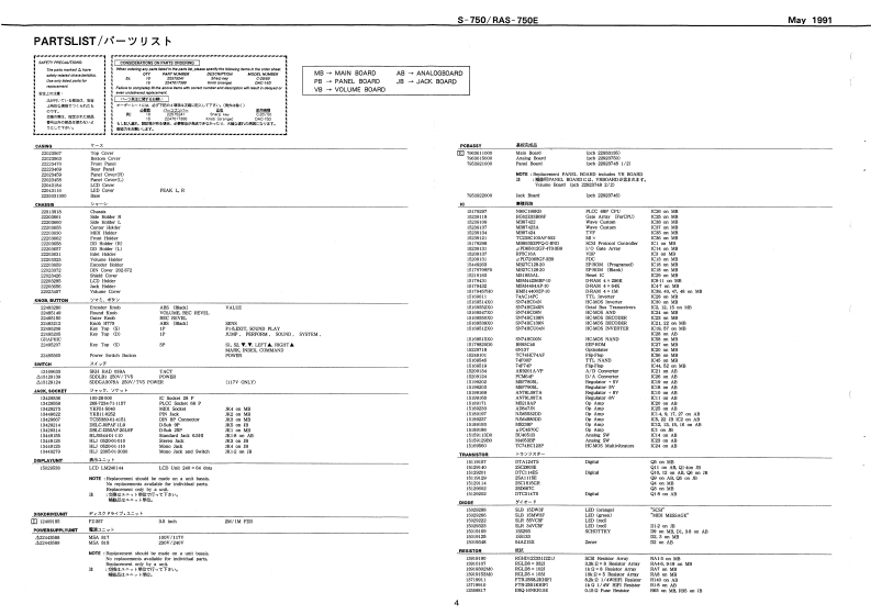 May 1991s-750/RAS-750ES-75▣/7AS-75▣ESERVICE NOTESSPECIFICATIONS/仕樣▣IGITAL SAMPLE7/MEM▣HYa▣AH▣First EditionSAMUNG 5YSTEV0445L24E2202承传TABLE OF CONTENTS目次Page母面20bSancart 2Mbyta fuly coanded 10Mtra ty NAS-T5E ard OMS75仕候444444444Tf件所释C,TA销24的LOCATION OF CONTROLS代实J配盟☒111一一行20性32面地【年0-30·EXPLOOE0VIEW分精四…ham中nc通Ivsics a:Fatec0w0Egtsl Hermsemie Diplarsian----iLs Tan t (A/D-D/A)“PARTS LIST-yy卡◆MUTSMOUSE [MU-1]7方天4人1】分标平厘-.4r to-Hai Comroul Wwmed·OCK DIAGRAM444444444444◆DUTPUT移CIRCUIT DISCIUPTIONMan.PelpleyTEST MODE一其七一++1+0地:儿转1特鱼物他回。1口ET无RSICN NUIMR5R10+13cBm (Max.Level at 1vocm far ott.Volume Man.]▣s75O/g7T9 CHECK D5K”MANUALFA=Nitei mors IhAn-笔anta}-IC DATA于—少卡车卡卡华卡卡140t城样4CIRCUT BOARD (ANALOGI+海ow:n).......15:Tti IMax.Lewel at Iyakcs fier oft.Wohare Mas.]CICUIT DIAGRAM (ANALDG)但3☒An3Ga44u44444444444441·CICUIT DIACRAM (MAIN》(Main)ewn一OcT神山恒》·CRCUT BOARD IMAI0Mmin77Gnou thomad BF-A Trpe.CRCUT BOARD (SWITOHING POWTR SUPPLY)1月●NTERFACCRCUT DIACRAM (SWITCHING POWER SUPPLYCRCUT DIAGRAM CMAIN)门19TTL LewelRGD CABLE◆Dt5KOVECRCUIT BOARDS (JACK VOLLME,PANEL)是新区kGum属Pn)●EC节汽A7CIRCUIT DIAGRAMS (JACK.VOLUME PANEL]网(lack.Velume,Pand)20RAS 750E仕排PARTS LIST(一y天k…RAS-7S0E/CMS-750 MANUAL FOR SERVICE216T/05CIRCUIT DIAGRAM (MEMORY)回钟区0 or mn4年1·CIRCUIT BOARD《MEMORY)SAMPLNG RATE/TIE0ne1M的1 Sand酒TW4手用4610TopFiset Panel12429165441包:时54a22323567222234T016Parel Cover CLatt)Pandl Cower (Righ32a142202234802202345边1141OMU-1)--15MOTE84a转2f0r0wwRoland17059E0间Printe in Japan AHOO (OP)1