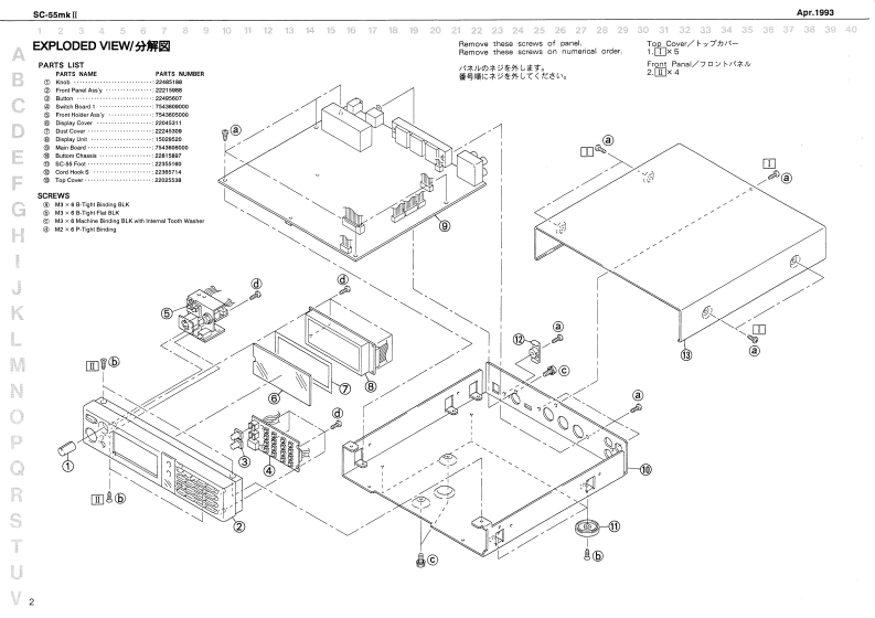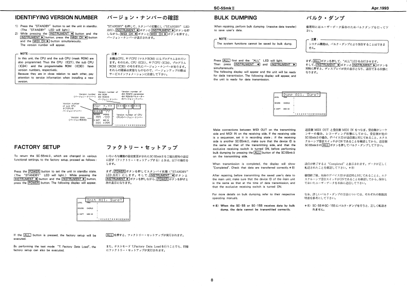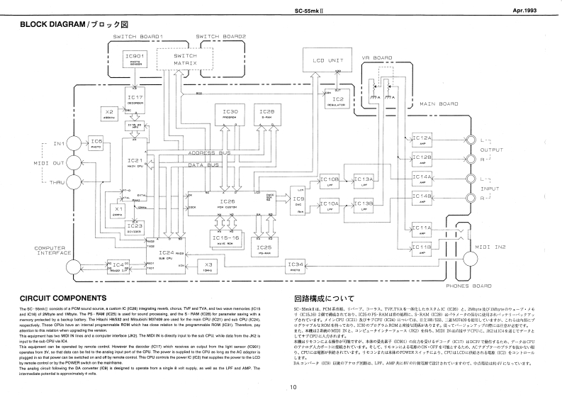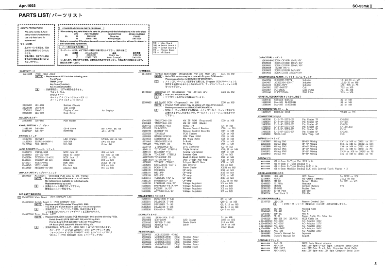 Apr,1993SC-55mkSOUNDCanvasSERVICE NOTESSPECIFICATION仕樣MIDI SOUND GENERATOR SC-55mkllFirst Edition●danitun Polip内yTABLE OF CONTENTS目次Page●EFFECTSSPECIFICATIONS仕楼…EXPLODED VIEWw6 Y CAPACITY---:C3物,-----=---=-:G在nLcD70最为24.5 rm /ith backight6rGPARTS LISTTEST MODE入毛一N…4-7●CONPUT勇NTERAO夏111m11t11m11T1t1F1t=+-++-1R8-422R释-22G●SUTPUT-…-:-…-4444u44111u1ii1 EAE101151iit5t1=:Hea材特h样6f国r400IDENTIFYING VERSION NUMBER一艺3·力/代一0碗超…日5想0L●e墙6Gw-FACTORY SETUP7T夕卜少一·也y卜了y…8UT-BULK DUMP/夕”岁/7,n1111n1111m1111111111…8◆DW5图0h5111111111==-21间××440IC DATABLOCK DIAGRAMブ口y夕回19=11”111”111111m11110CIRCUIT COMPONENTS回路精线化口八C4“4…4…·10CIRCUIT BOARD DIAGRAM基折图。…………………11CIRCUIT DIAGRAM回抢☒1111”11111111111111112,13CHANGE INFORMATION资更上案内4444444……4……··…14点AC-22N124466J3ACB-24E4125554点AcB40412444队Ownars MarualSet x t●OPO经444414111111i1i11110882O-0月利00-15aete3omte轧t0以w600wn91c6eTC8N7-29-40122451100229255311Font viaw】fnag4sw】两Roland00▣▣ii⊙▣▣G▣▣C▣■口■i177717r76151▣G▣0-虹2骑1Y1-0KF31-5040124-0N-135-15101-01344027714449143g131936144772)TC55031-15-453424Roland17059696Printed in Japan AFHO(DP)1