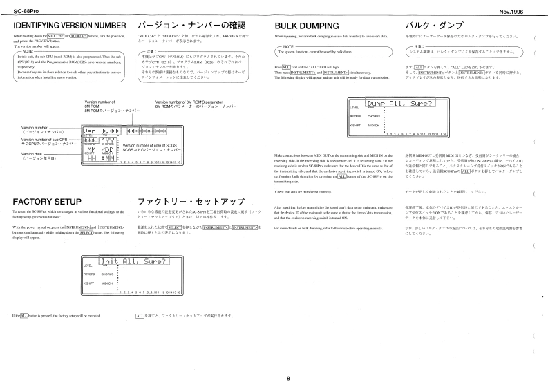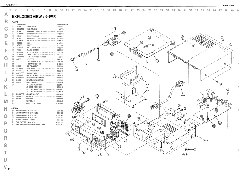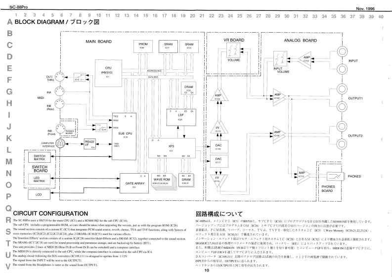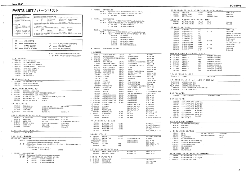 Noy.19965C-88Pr0SOUNDCanvasSERVICE NOTESSPECIFICATIONS/仕樣MIDI SOUND GENERATOR SC-88ProFirst Edition4183gSaad rupIssued by RJAPyesct wwds最终页配正规表&遍加情鞭加多)生才。TABLE OF CONTENTS目次PageGENERAL VIEW根视☑-411SPECIFICATIONS仕校EXPLODED VIEW2PARTS LIST一以3TEST MODE子又卜毛一卡44IDENTIFYING VERSION NUMBER/一沙3之”才之/バ一)罐招41FACTORY SETUP77夕卜少一·七y卜yブ44BULK DUMPINGgIC DATA9BLOCK DIAGRAMブ口y☑☒44441n,10●CIRCUIT CONFIGURATION回路模成仁儿4…1012型CIRCUIT BOARD (MAINICIRCUIT DIAGRAM (MAIN回ě图Ataa4a4aa11n1:12CIRCUIT BOARD (ANALOG)基板回w线0ASTH,Ts,PHONESHOLDE纽A33),13RC-134BTCIRCUIT DIAGRAM (ANALOG)回路回A线00.5MTH,TN8,PHONESHOLD纽AS5)11:14GENERAL VIEW/概觀☒水XCOVELCDDL复ehHBA器州LDa推行TACT 5VVE (0120011474.Rdland0102510n-tr.6tll1-l.(o)(oaACanvas sea Pro5-KEVSNJH IKG CLR9OR0137450《13120TACT SWITCHRoland17059859Printed in Jspan AF00 (DP]1