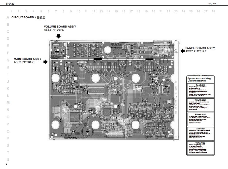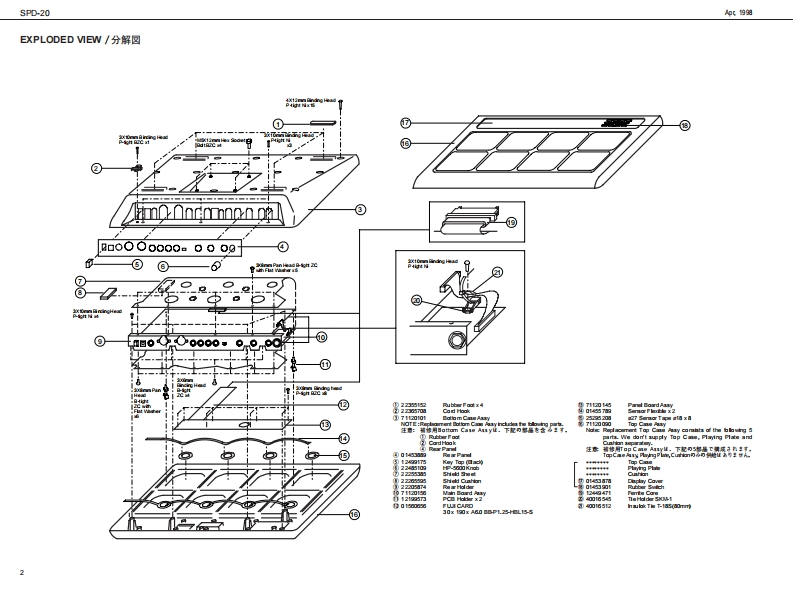 (1细SPD-20S尸▣-己口SERVICE NOTESSPECIFICATIONS/主在仕樣T▣TAL PERCUSSION PA▣First Edition一E是r证w:E-。。线D细s南可表Issued by RJAE如国4CF星时,P《陵):1《4】包8味甜他常发✉TABLE OF CONTENTS目次Page地f日EF于3-降C】SPECAT0NS4…L0 CATION0FC0NT0S·PLDEDVW...........................分解同“““4“042am7ARTS UST“““aaa。。a。a“。一73卡a0.0“。31EL0 ARD ASSY。aaa:aPAEL自OA坡DASSY.................:4nmF于3多,一V0LU八E BOARD ASSY:aB0 UME BOA娘DASSY4C地r于4支北A0AR0 acey...:a。ABAEAEAANE。。A自0AR0AgSy。a::aaa。。。:a。e4CIRRCUIT DlAGRAM...............路同Sw7以0GX0 AGRAM-“aaa。a。。ブ回y夕同004“0000.0ae58LOADING THE FACTORY PRESET DATA···772卜)一·方刊七2卜·子-30口-下方法…872037行F4,营阳回ED时宝DLD元D4DATASAVE AND L0AD·子一室欧也一了上口一罪方法““““““““““82:3三D浮INDENTIFYIN3 THE VERSION NUMBER···月一罗与之臻阅方法…9HECKING BATTERY VOLTAGE····電班骑阅方法〔少子宁4面泡》“““9兰超路4门77a441EST00E444444444444444444”于天卡t一罪444444440444.10ERR0 R MASSAGES·:::工一·y七一岁1325。wc得HOW TO EXCHANG年THE SENSOR ASSY···也7竹一4SSY及辽七>竹一交损方法·…13ADJUSTM日yT。。。444。整444444“44.4“14℃D灯A0040000000”C子一空a000000a1写LOCATION OF CONTROLS/R未W配置☒a年hCf34a山D1到相满L白VPN号hf笔A山a目到号yTep和ud封T-4i行的M世4月主口转[txog14Cad Ho仕a细心4Copyright1998 by ROLAND CORPORATIONAll righs neserved.No pat of this pub lca ton mybe re produad in any bmwihou the writen pormisson ofROLANDCORPORATION木有四一算.毛儿《仕全第老铜断C妆写·板载有5工上老精化主方,Roland 17059918Pned in Japan (ACE0C角1