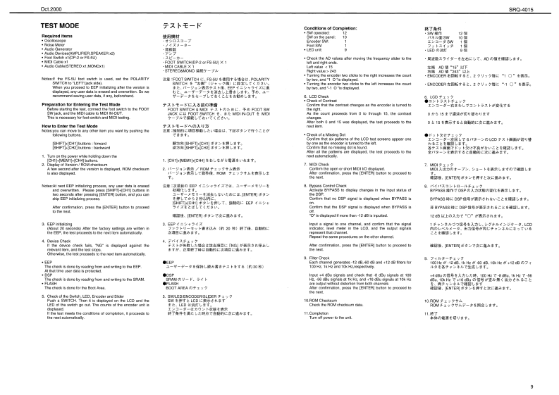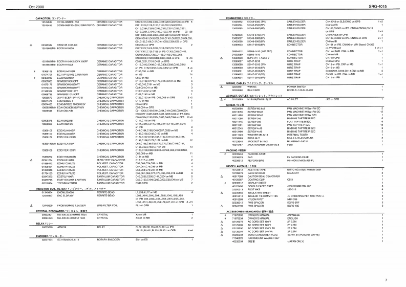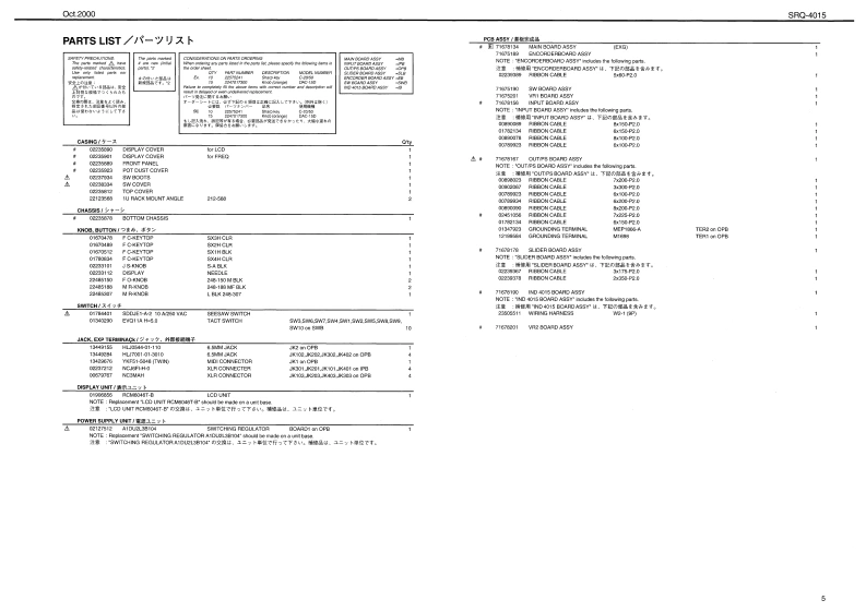 0t.2000SA0-4015S▣4▣15SERVICE NOTESSPECIFICATIONS主在仕援SRO-4015:DIGITAL GRAPHIC EOUALIZER04015:罗岁k:7子71y夕:351呼-DIGITAL GRAPHIC EQUALIZERFirst Edition+de我售门安器售42下=当2题制黄有-代-9>>号Issued by R.IA与学4,仿为=身04m,工,可今=事销量t=e专》了Vy·山写鲁开年三九儿Table of Contents目次page,epDt儿e◆卡才V满包29子4974n学2号4村SFECIFICATIONS..生会性样41+mm到LOCATION OF CONTROLS】t来儿配图回年使鞋表?LOGATON OF CONTROLS PARTS LIST...来儿配置同t一y)又卜.2玉一平一:袖7g卡▣3◆少■4李子.5得生数千了力EXPLODED VIEW PARTS LIST...分制同置一))入卜3垂周老科与25k73k·3391-题月EXPLODED VIEW.分解回.…3地的为地动国THO RCXLRIe 1GND HOT.%OOLD无2事f子,t线意作事4子WIRING DIAGAAM7术女)艺配橡回知两3471阳,7484●绿出入有山风品0PAATS UST......-岁y又上5hLmdTR TSOT RCOLD.9 AVE USER DATA&RELOADING SAVED DATA.-1-Y一Y-夕)七-上口-卡方法.FOOT SW M5C0MOl connecdor IM DUT/TH.垂人为比=天UPDATING SYSTEM SOFTWARE WITH S聊MfE上5)天于4V7卜7工严.81D6dm60He领G年t0e6★wwe算cD.C0Dk D CHGT.OAD.COLD03单罗一满,市TEST MODE.于入卜毛一卡9CHOI“a宽0VVoNp iTHanBLOCK DIAGRAM...2口y2●组当过为心州●程CACUIT BOARD IMAIN BOARD ASSY).蒸t板MANB0 ARD ASST■wCi7M,●■WC0M440的的e]CRCUIT DIAGRAM (MAIN BOARD ASSY).晴同MAN BOARD AS5YM12导■G面桥垂/少U,7后大入清×帝滑用青CRCUIT BOWRD (SUB SHEET ASSYI...基板园传UB SHEET ASSY)约鞋山Dimanalond42病TNC9 CUIT DIAGRAM3 UB SHEET ASSY门)a日港回SUB SHEET ASSY),184思0M222gmn404重/之学U,子最大内3经1B的x斜@x14406,31垂州十法4脸1蓝01形MEhu女orp垂生力有比-事天4城001■g间ew0g1Ca角0 p INOT.COLD便U号y9-7之卡·第301-shme (HOT-CNO.COLD-”纳c50D0H0T.00,.C0.DGhD26g5eat径cecni年同发垂n重黄司4之比-罗>A好nadQ年t着。am4MCwrers Mma Ergiat5通=方条了。本:着女台7102上●树深里Liraslancod Ouput:Jk ohraCo对10T观9天1797)卜13需青军7以收6868a李21的61灯a上通垂口一买¥汉周4门道T3人星40m17n.Tot Hanonic DinortioaOURO CONVERTER PLUG布全消发蛋车学7平方用以学2卡男%gM山CCf作i-4Mee3H周3满起5厘1166,1,内青=三有¥卡1】e习:00t+千06无收gA1F利42e>卜日-得:士图,1351码江看4建4小4文d7-·n净:士a国1⑦12●地星Flaidasl Paie Level●程国/天:40才有3+-夕2罐地a-fko以林4⊙po0切.容r可t40表V韩MTTM6卡四=1土0明《三季Ty·天f,手:移和ta)17049下-·作:主9图.eFou:Swnt P9-6(TOSSIEoeloet Conrol●4394f-·3y0=413绿U45阳Cer Frgpen年益0园'00=07形hmn0因h:洛,的.时。1的。仕通南2特解.登月同1用1脑e43n001+通曹。gCd边大务中售车置表下果己之样制是数鱼8kI队A时现用带油号,登.编.为,量事寸,wR0:女2c重话d之e笔维UMwd¥种w0aa0室制图:±12得、据明s甲=心0s2制●32口-圆量15fy=CAK8HTEU用MLUC IAM IAS EATORa2事h⊙L2Dg何4HH.G2H门D4CO0I内F送L线5重=LAFLATMEMCRYIL SEARCH参T3中AVEMO2EMORYDL SNOEPSWEEPMEMOR WDC2行WEGQ9Copyright 62000 ROLAND CORPORATIONMEMCRYO 3HT DnO公门米步IMFUT LEVEL kwe CHI.CH.UTLp事◆C悦C2A相ghs8 rved.No parl of thi够outlicsion my b#eproduced in ary form without e w信an pommiason ofG8,⊙0ACLAND CORPORATION.A中8h瑞两17手。2000口一与一卡落晋功一船.韦儿《过全韶查款断℃黄写·松恒寸名乙七查某已安寸。Roland17059041Printed in Japan (AA0O)(SP)1