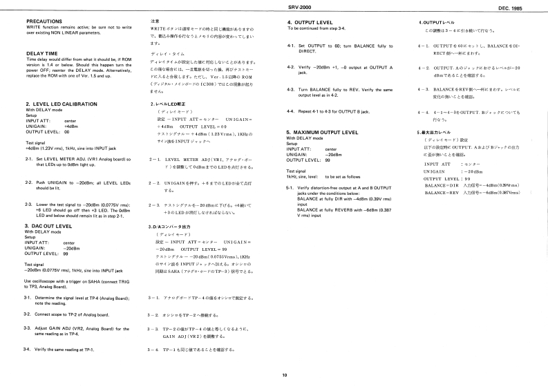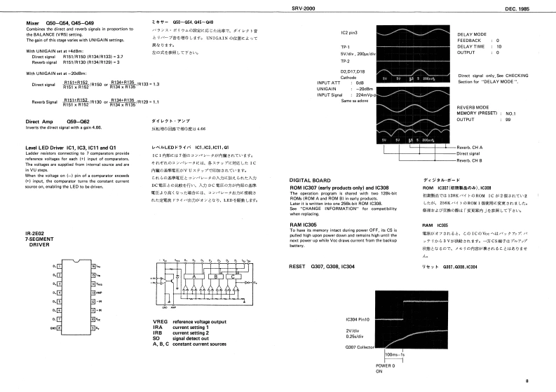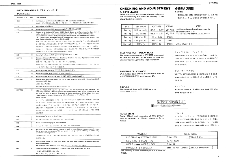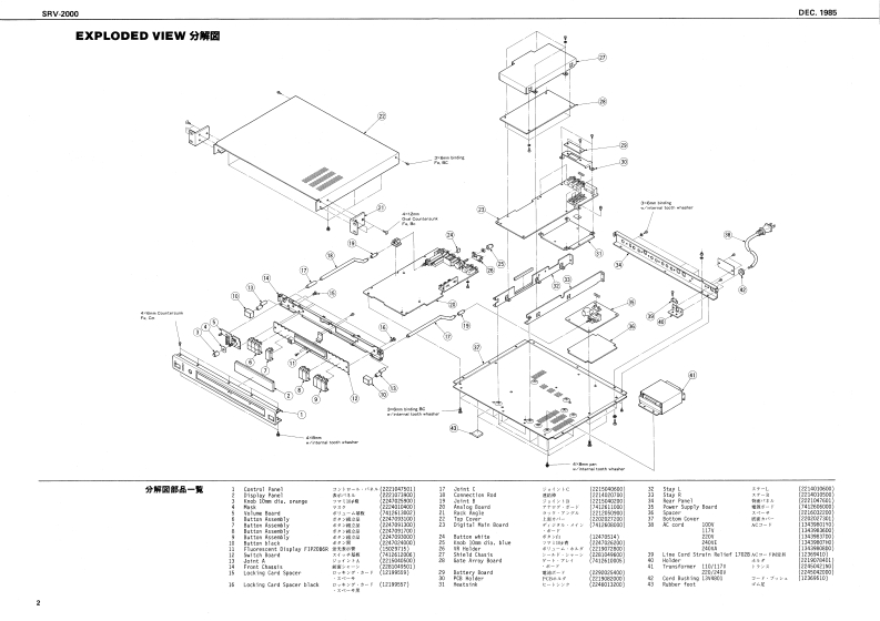 DEC.1985SnV-2000SRV-2000)SERVICE NOTESFirst EditionSPECIFICATIONSent Lenelutn人0位d-12+4din iras.+1lcDml林15初375t-20d3n Iras.-S4Bml门E有0.3 to37是1r1011110Oupun imptdancsm.ntdn.om 00GE-TOHnAD-DA CaerenionFncency53。月月eo3w:3ae10ct*2:HightB4re特h6Hee96hH日用影方sNt的IIHF Al at我t=时:地c0Dl色2#线军wU0m年wEDyramk RangsIFAA-1ul118两Pre-Dley Timeb:0160=R4gP卡AHLu05z101-110MLJ00100434g00特1022204001)1134415330I1144961Hawrb TineLEDLED-5L0-U5w时◆111内1加建角0指415029120000TABLE OF CONTENTS目次PageEXPLODED VIEW分解网2PARTS LIST/-y又卜3CHANGE INFORMATION变更案内4自005h著子来CIRCUIT DESCRIPTION回路解脱5E行2221072901SDDGA-3012A4131212wCHECKING AND ADJUSTMENT点换及心调整9Cottol PaneCVLCAS3E0143104701排BLOCK DIAGRAM和y力图114132190mSWITCH BOARD又于术-N12DIGITAL MAIN BOARD子逆儿+求-下14O Eutron3 REV TIHE车A4T066O Buton MiDe334202240020001ITEBun4 HF DANPxANALOG BOARDP才口5求-N1622420012340220m1EROINON LINEARGATE ARRAY BOARD5-卜T求-K18L山2ERRolandPrn时dnJp的3