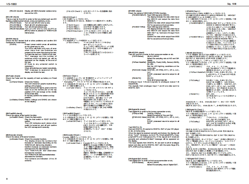 全n的aVS-1680Vs-168口SERVICE NOTESSPECIFICATIONS/主在仕樣First Edition-4024罐Csu多tdn840:2423·了g9·299t·7-97于-5a324BT OGITAL STUOIO WORKSTATIONIssued by RJAOTrads:Tracia:超0非9?9数:539Trcia:道Tradape ed小Tad的nd甲色1da连意:景大球事专?争,景大两生1卧专?争,anE输aEo山o,@儿。y)7·子-W级或行,习少·家24转相贵巴上4【TABLE OF CONTENTS目次PageEh下ee8Ek%4n主f.SPECAT0NS⊙大量L0 CATION0FC0NTR0S·来儿配置同“3铁七r》卧通山垂w,数Wf:29:37XPLDEDVEW...........................分解同0“““““““004004Cintemul Memoryong:0ma0f章十4无月;)青:200(养-于(乡■10GX0 AGRAM-。““aブ回y夕同“a“a。n。。。。。。SBqulaeL MD,LOW(churnd0f35f:4 4D LOW116于零>未条1HL LOGE dumele-76w7h量ackPo(m网:*于今?夕·T日MTP1DENTIFYINGVERSON NU但ER·······一岁5之十之月一随鳃方法…7w10:a99)716}1EST00E044.4。“4。。4。。44444。。44.4。于3卡无一琴aa。a。。。。。。。.7w10量achi0T1:学4于多52步1MT1量ach20T:k于多3?92MT21SETN焰THE INTERNAL CLOCK·内留昨卧可合力世方“““““““10Lhe1(LM)VS-840 SYSTEM SOF TWARE UPDATESF化上石多x于点L2USING THE SMF。“t-沙52了yブE2t10⊙#号美通:如典:k.-L》为DA食典:动k.经漏t-心47HS0w/N3 DATA OF INTERNAL HD0·内富A一罪子(天夕于一室保存11w13幽dPo高:a望L恤rd到:g包理:E3F5》。I4-事EXCHANGE THE MAIN0ARD:··X之一平交找吻于聊“…14ample Rate0么4.1包2D拉CIR CUIT0GAM&0A0·可路同&基板同--1Sw24连意:H号·E?于线e上明。器0妇-04维地主下转四1景℃0A打Aee。e。。00。。0ea。ee0。e0。。。。C于一空。。0。ea。e0。。。。。0。。0a。。25wu g vari-pltch funcson大}【率1f。SPEC月GAT0NSWS852)·仕棵N8舒-为…26sa风NSTALLING THE (VS8F购本体入取9付甘仁2T“…26404红20-24式402c902c角PARTS LISTOVSBF2......................一793}WS8部☒…27:41地:200-地100通1CIRCUIT DIAGRAM&0 ARD(VS8F2)···回路同&基板同VS8-)·2洁w29:0e:20e-Me100通10 Tot Hano业0aeon0堂真发0话率4wuTs06:0d41h地蓝noninu output love线[UT区:O场L.收克走大4】话%or lea0 carding mode:M网:下利3-495-F:M⊙钟两[0里2Gd4k1手专?争1k-74罗e-F92万k·kf3接0物4414H包经0推居强地5行120H行MTP7&n¥4unn4111Mmn¥a0n4ooa血口aaad日2I1用41¥14n¥aMT2买0非10器特阴星诗n141m¥413mn¥4LM的用雪量列蒸2诗白a白白68日d6LN1441a6☆4■n¥aLM2H0玉金特回旦旦g旦g包ggg旦as--E连意:上式解到网世皮下f,装黄6九了(入乡·家34丁本修转相甲.有6九?)7秀指C上明。C球音下8网世aB日Bnnter d aongathat were areated根《e明1年.e情ou速LevdMnbe百白马口学口inputt-27,1-2:0-4u大u:2白白白白白g白+国u山t景为0u:了W9》2明}0-4uunn+d国uut47?1-角:0-4u1最大au:约》2醇uan+0国tunbutano最为0u:73w与3入明1回回回回回可CHn0-4d国uann+墨d国uuc:0-+4cu1最大u:532即g国+0d组urt七o景为0u:了W33210入为4)E-)a;437?1-2:100童kc:4)7?1-0:1000r海:0kc的国:F9-1H21:000at Out :0cu:学2章。月今3:057LXA(,R时:0anu:0:以L-R}:0u:t法净-4了9手:0Outpu inped山ne星Odtd间0速为4比-F)7Copyrig ht1998 by ROLAND CORPORATION机联A时1kdn:29-·7与3:10L联aL,R附:HkdnAUX AIL-R]:10All rights reserved No part of this publication may be reprodaced in ay fom without the writan permission ofAUXBIL-R)10ROLAND CORPORATION;t=象-·了:10:?家市):20有0一幕.毛儿《仕全幕老铜断工祓写·板粮有否二上老禁化主事,Roland 17059910Prirted in Japan(000C角1