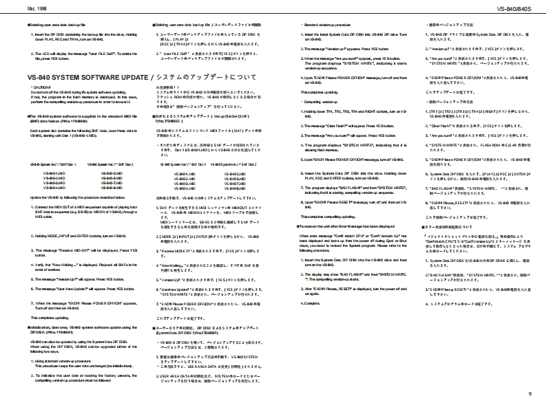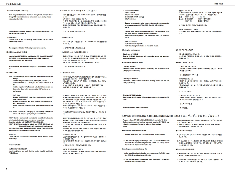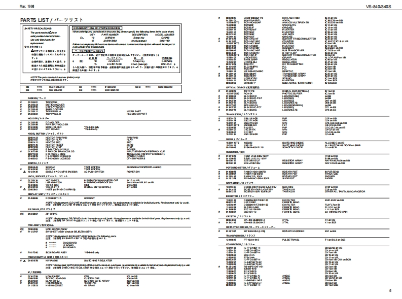 他.塑VS-840V840SVS-B4▣/B4▣SSERVICE NOTESSPECIFICATIONS/主在仕樣G WORKSTATIONFirst Edition路4arIssued by RJA得朝1wn:4六Hov思TABLE OF CONTENTS目次PageSPEG月℃T0NS“。·。·。。主拿仕棵“。。a。。1LOCATION OFCONTROLS......................出骨来人配图同““““2三苦中蛋监器东B以0 CK DIAGRAM4生沿盐PART兮ST-yy天卜0“““S,6IDENTIFYING THE VERSION NUMBER..........一沙三之十之骨一骑阅方法“。7:TEST00E。aa0aa。于X卜无一罪aa.7w9VS-840 SYSTEM SOF TWARE UPDATES形E上石多x于点-莎5之了y习三este tUSINGTHESMF....................亿7t“04040440444444444440.4“9SN3 USER AREA·1一好一工月了吻保存“9CIRCUIT DLAGRAM&BARD.................路同板同1015SPEC日月CATIONS S4S-1)·”仕棵N545-)““17INSTALLINGTHE (VS4S-1)..................本体A②取付甘E2tS4S-1)=17法三一出.日PARTS LIST(VS4S-1)“-7号天0N545-1)18路主兰一置CIRCUIT DIAGRAM&0 ARD(VS4S1)···路同&基板同0W545-1)18.19会密士恩器密.世密去盖肠.密在中”白△h书特gw@oo10oll庄8666▣在,8军名4a-福,国m和一花出品,Copyrig ht1998 by ROLAND CORPORATIONROLAND CORPORATION包有四一幕.毛儿《仕全幕老铜断工夜写·板载有否二上老禁化主方+Roland 17059909Prirted in Japan (A000)(CR)