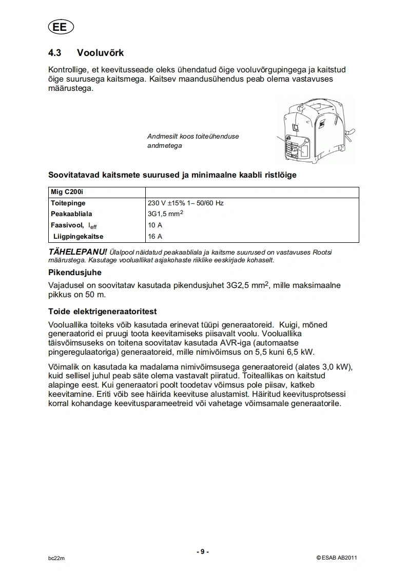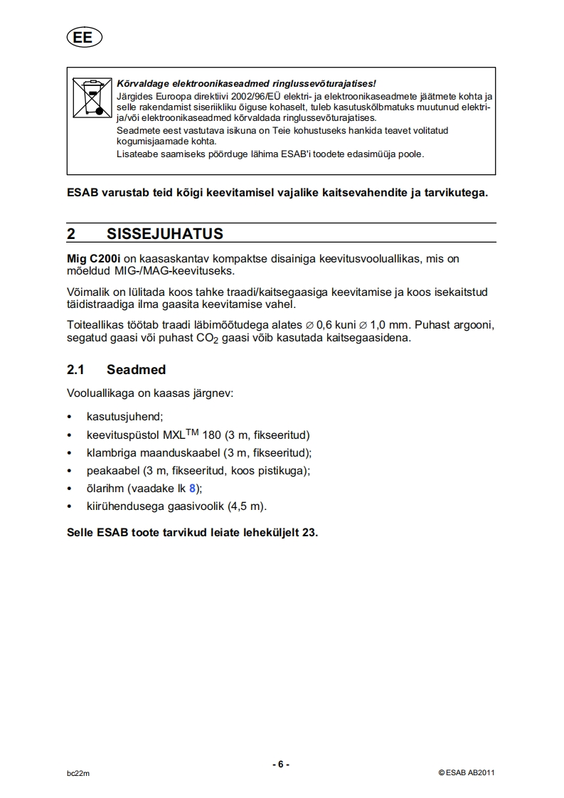 ESAB-C200i-Eesti操作手册含电器原理图找手册网24天前发布关注私信0.84MB24页037ESAB-C200i-Eesti操作手册含电器原理图此内容为付费资源,请付费后查看¥19¥21黄金会员免费钻石会员免费登录购买付费资源 第1页 / 共24页 第2页 / 共24页 第3页 / 共24页 第4页 / 共24页 第5页 / 共24页 第6页 / 共24页 第7页 / 共24页 第8页 / 共24页 第9页 / 共24页 第10页 / 共24页 试读已结束,还剩14页,您可下载完整版后进行离线阅读 THE ENDESAB焊机/林肯焊机 文本预览 、EEEESABCaddy®Mig C200i0Kasutusjuhend0440001001EE20120604Valid for serial no.932-xxx-xxxx 查看更多 收起部分 喜欢就支持一下吧收藏