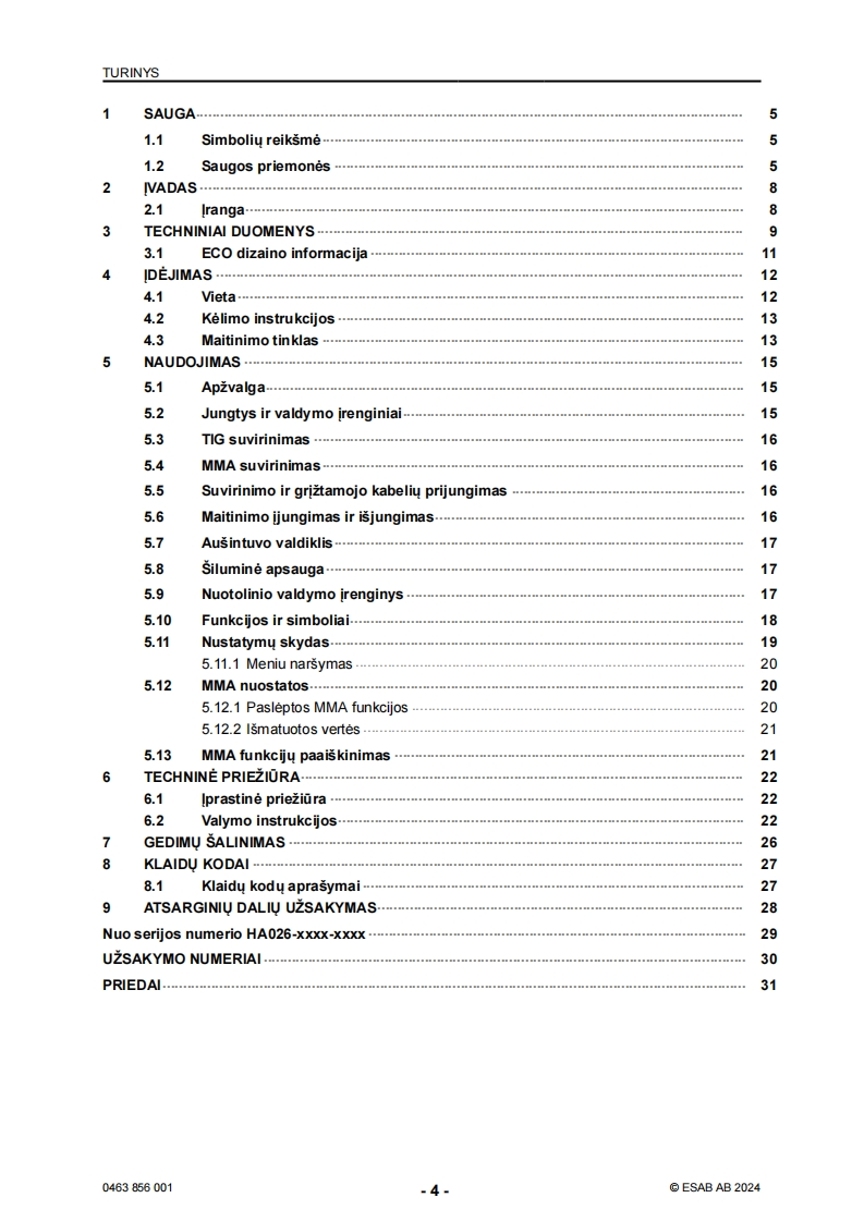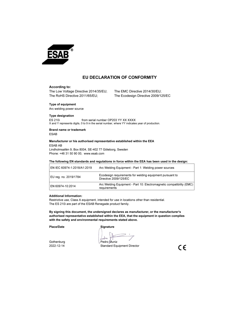ESAB-ES-210i操作手册含电器原理图找手册网24天前发布关注私信10.18MB32页044ESAB-ES-210i操作手册含电器原理图此内容为付费资源,请付费后查看¥19¥21黄金会员免费钻石会员免费登录购买付费资源 第1页 / 共32页 第2页 / 共32页 第3页 / 共32页 第4页 / 共32页 第5页 / 共32页 第6页 / 共32页 第7页 / 共32页 第8页 / 共32页 第9页 / 共32页 第10页 / 共32页 试读已结束,还剩22页,您可下载完整版后进行离线阅读 THE ENDESAB焊机/林肯焊机 文本预览 ESABRenegadeES 210i配E8&8Eksploatavimo instrukcija0463856001LT20241003Valid for:HA203-.OP203YY-XXXXXX 查看更多 收起部分 喜欢就支持一下吧收藏