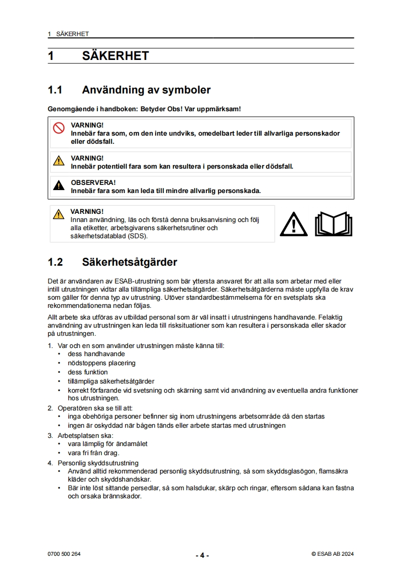 ESAB-ES-250i操作手册含电器原理图找手册网24天前发布关注私信4.53MB26页021ESAB-ES-250i操作手册含电器原理图此内容为付费资源,请付费后查看¥19¥21黄金会员免费钻石会员免费登录购买付费资源 第1页 / 共26页 第2页 / 共26页 第3页 / 共26页 第4页 / 共26页 第5页 / 共26页 第6页 / 共26页 第7页 / 共26页 第8页 / 共26页 第9页 / 共26页 第10页 / 共26页 试读已结束,还剩16页,您可下载完整版后进行离线阅读 THE ENDESAB焊机/林肯焊机 文本预览 ESABRogueES 250i▣0ESAB0Bruksanvisning0700500264SE20240322Valid for:HA410YY-XXXXXX 查看更多 收起部分 喜欢就支持一下吧收藏