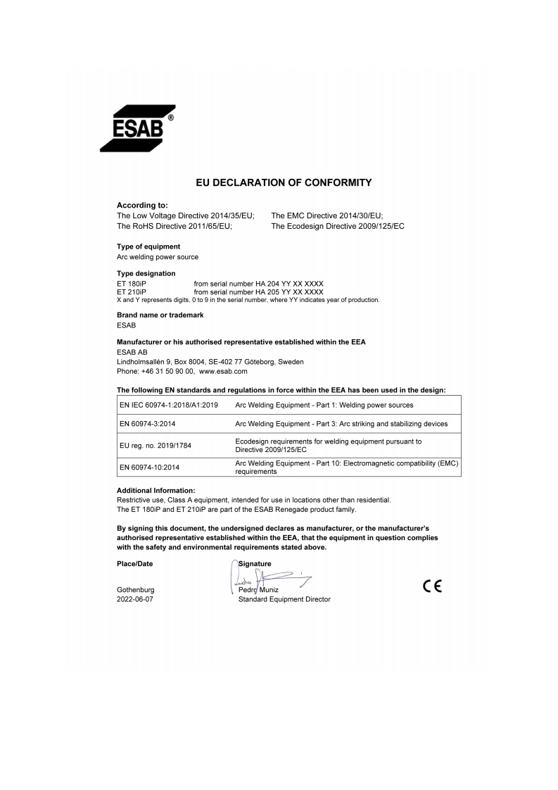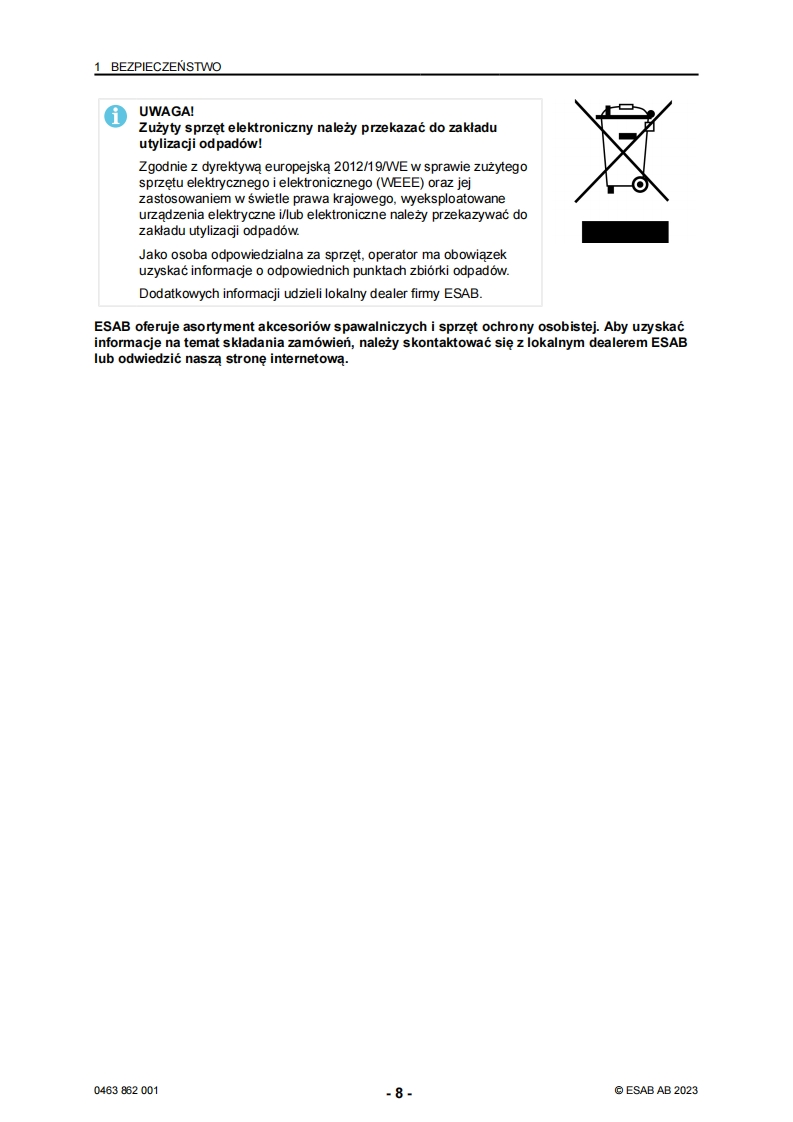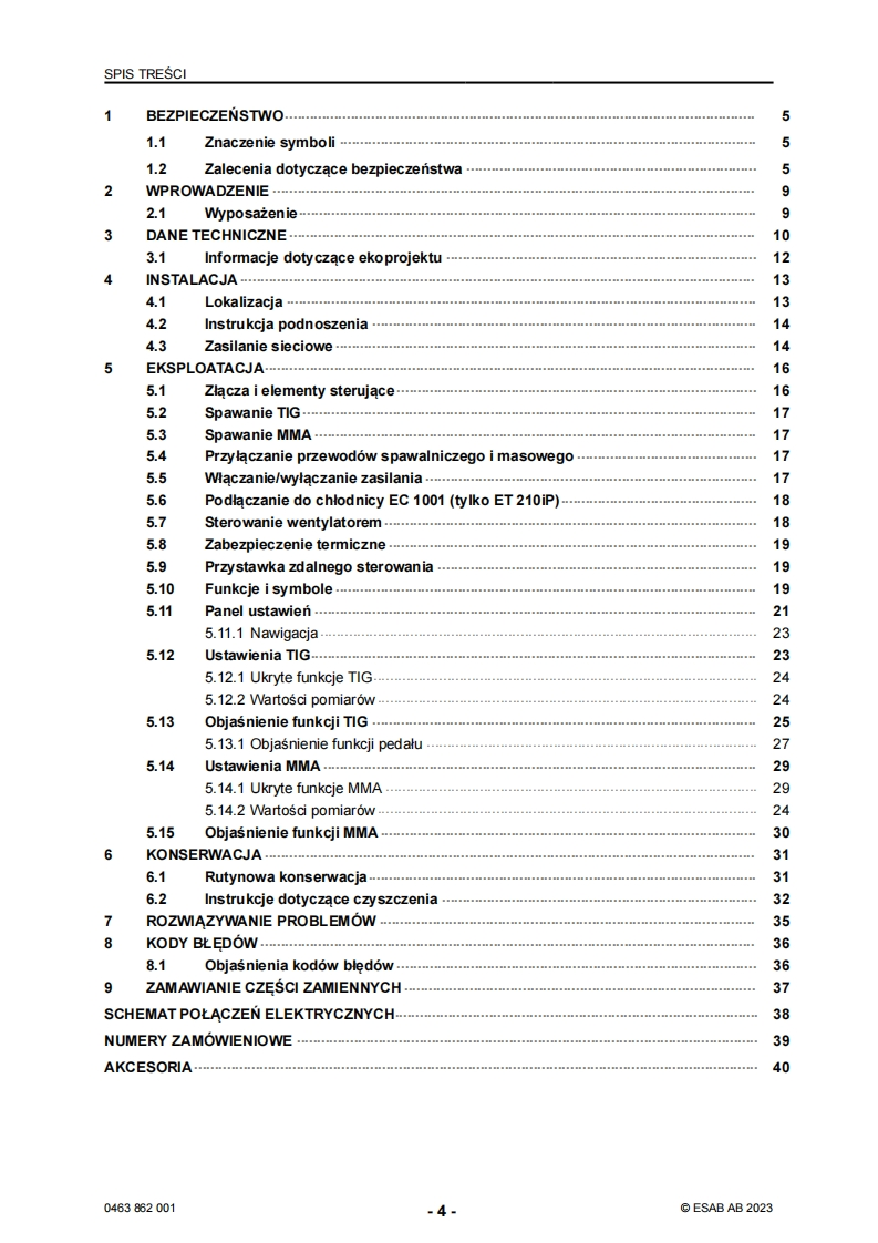 ESAB-ET 180iP–ET 210iP操作手册含电器原理图找手册网24天前发布关注私信11.80MB42页030ESAB-ET 180iP–ET 210iP操作手册含电器原理图此内容为付费资源,请付费后查看¥19¥21黄金会员免费钻石会员免费登录购买付费资源 第1页 / 共42页 第2页 / 共42页 第3页 / 共42页 第4页 / 共42页 第5页 / 共42页 第6页 / 共42页 第7页 / 共42页 第8页 / 共42页 第9页 / 共42页 第10页 / 共42页 试读已结束,还剩32页,您可下载完整版后进行离线阅读 THE ENDESAB焊机/林肯焊机 文本预览 ESABRenegadeET 180iP.ET 210iP88a8Instrukcja obstugi0463862001PL20231023Valid for:HA 204 YY-,HA 205 YY-XXXXXX 查看更多 收起部分 喜欢就支持一下吧收藏