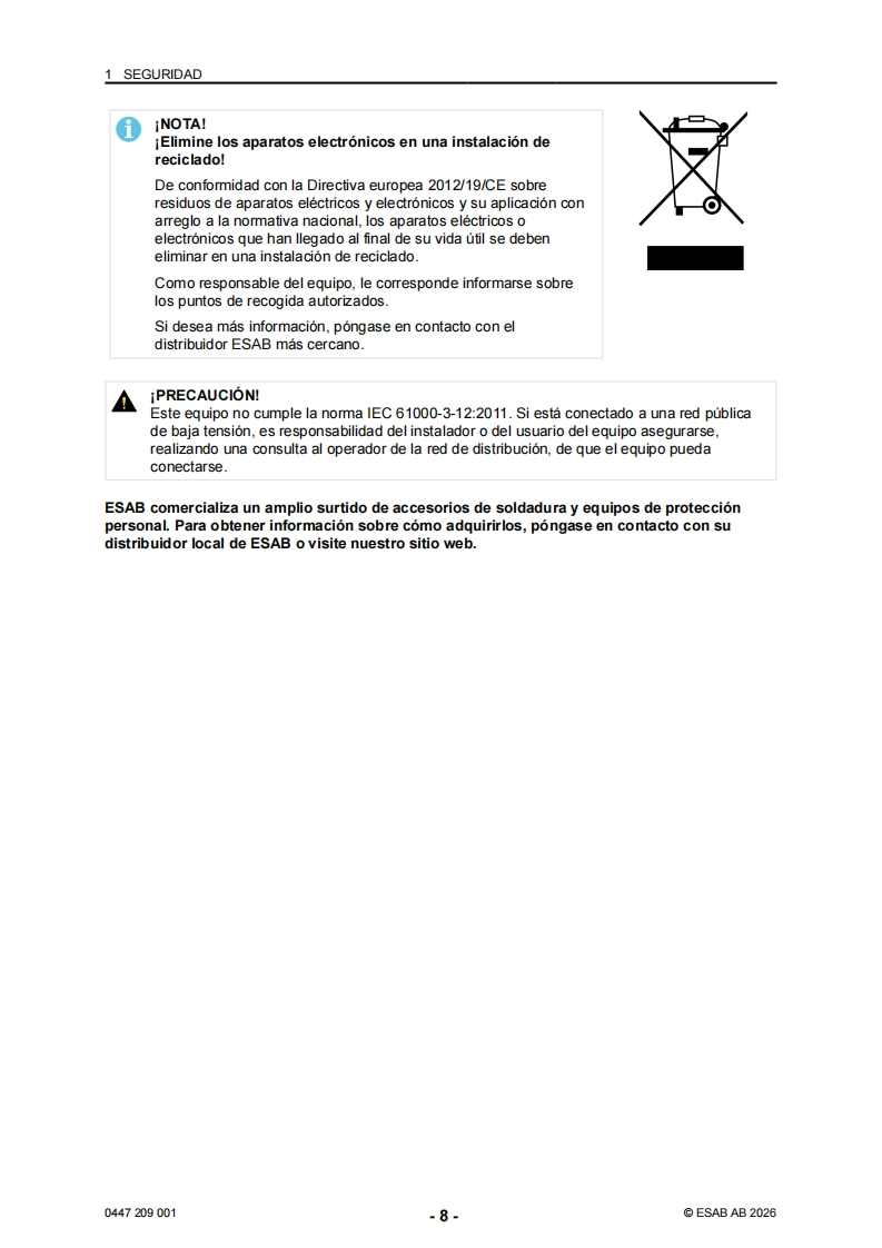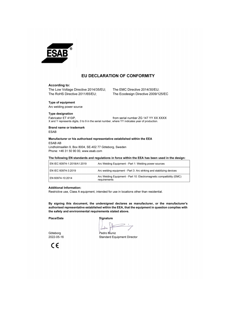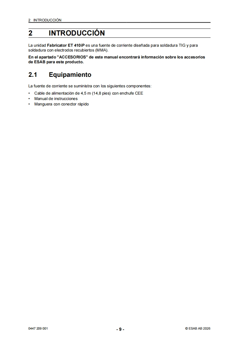 ESAB-Fabricator ET 410iP操作手册含电器原理图找手册网24天前发布关注私信11.88MB44页042ESAB-Fabricator ET 410iP操作手册含电器原理图此内容为付费资源,请付费后查看¥19¥21黄金会员免费钻石会员免费登录购买付费资源 第1页 / 共44页 第2页 / 共44页 第3页 / 共44页 第4页 / 共44页 第5页 / 共44页 第6页 / 共44页 第7页 / 共44页 第8页 / 共44页 第9页 / 共44页 第10页 / 共44页 试读已结束,还剩34页,您可下载完整版后进行离线阅读 THE ENDESAB焊机/林肯焊机 文本预览 ESABFabricator ET 410iPFuente de corriente de soldadura TIG 410 A且8?A家Manual de instruccionesValid for:Serial number:0447209001ES20260310ZG147YYXXXXXX 查看更多 收起部分 喜欢就支持一下吧收藏