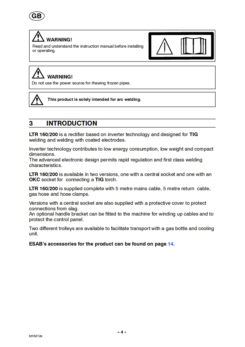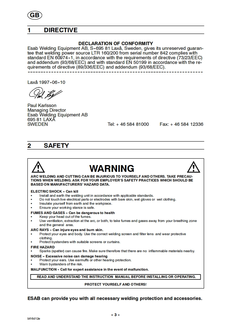 ESAB-Power-Tig-160操作手册含电器原理图找手册网24天前发布关注私信0.31MB18页046ESAB-Power-Tig-160操作手册含电器原理图此内容为付费资源,请付费后查看¥19¥21黄金会员免费钻石会员免费登录购买付费资源 第1页 / 共18页 第2页 / 共18页 第3页 / 共18页 第4页 / 共18页 第5页 / 共18页 第6页 / 共18页 第7页 / 共18页 第8页 / 共18页 第9页 / 共18页 第10页 / 共18页 试读已结束,还剩8页,您可下载完整版后进行离线阅读 THE ENDESAB焊机/林肯焊机 文本预览 GBESABPower Tig 160Power Tig 200LTR 160,LTR 200尚LTR⑥Instruction manual0457305201GB041101Valid for serial no.011-xxx-xxxx 查看更多 收起部分 喜欢就支持一下吧收藏