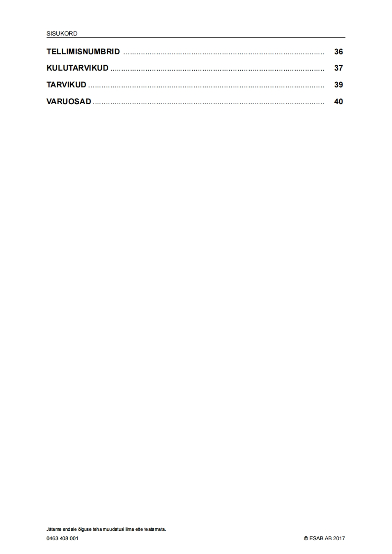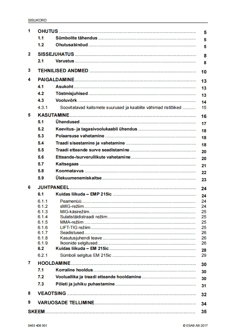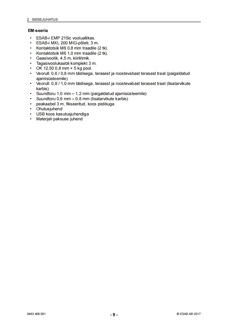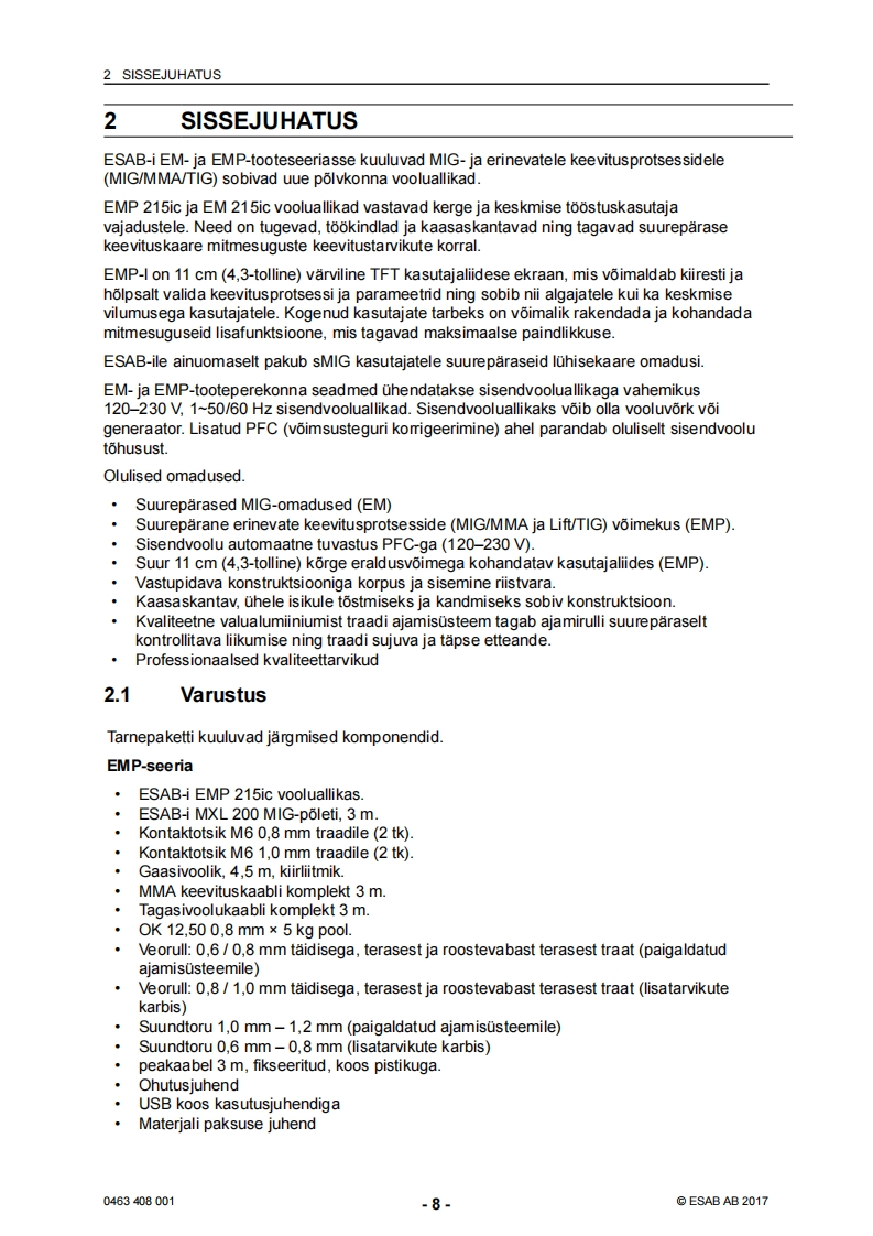 ESAB-rebel-eesti操作手册含电器原理图找手册网24天前发布关注私信5.43MB42页044ESAB-rebel-eesti操作手册含电器原理图此内容为付费资源,请付费后查看¥19¥21黄金会员免费钻石会员免费登录购买付费资源 第1页 / 共42页 第2页 / 共42页 第3页 / 共42页 第4页 / 共42页 第5页 / 共42页 第6页 / 共42页 第7页 / 共42页 第8页 / 共42页 第9页 / 共42页 第10页 / 共42页 试读已结束,还剩32页,您可下载完整版后进行离线阅读 THE ENDESAB焊机/林肯焊机 文本预览 ESABEMP 215ic.EM 215icSAESABKasutusjuhend0463408001EE20170228Valid for:serial no.EMP:615-xxx-xxxx,EM:627-xxx-xxxx 查看更多 收起部分 喜欢就支持一下吧收藏