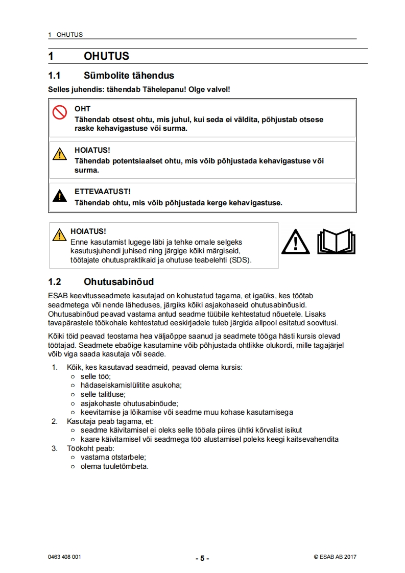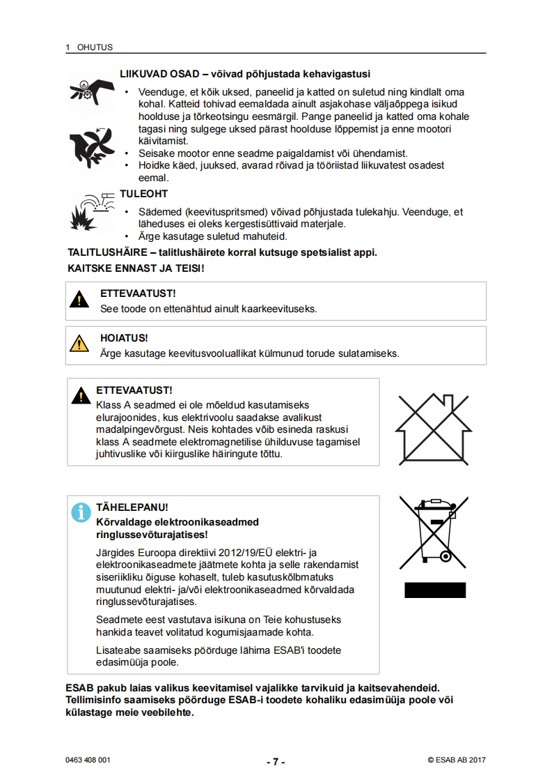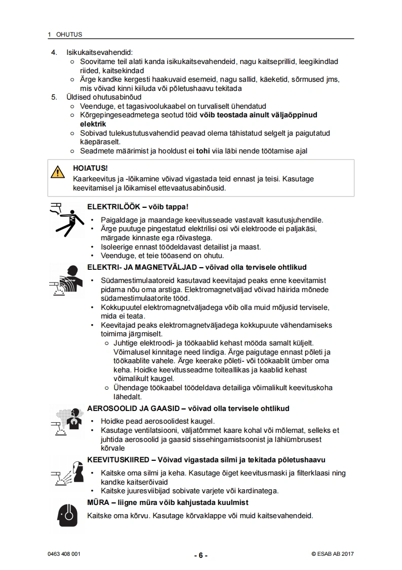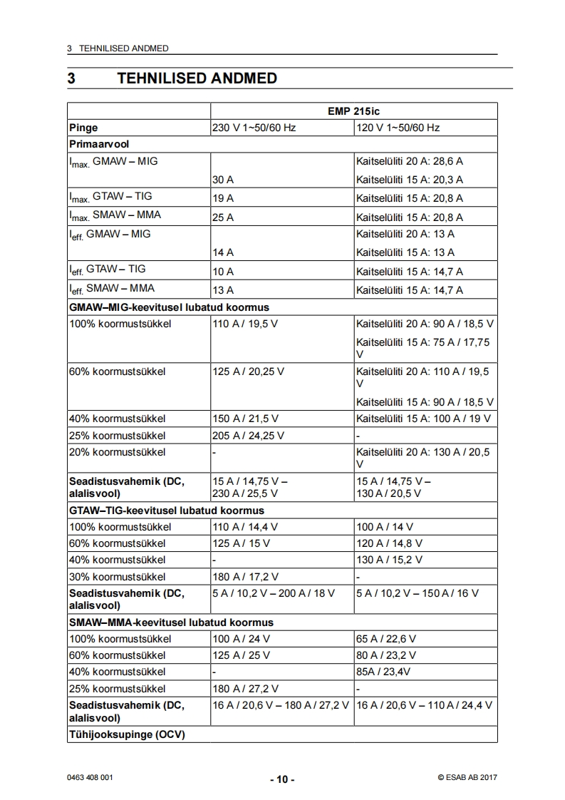 ESAB-rebel-eesti操作手册含电器原理图找手册网24天前发布关注私信5.43MB42页044ESAB-rebel-eesti操作手册含电器原理图此内容为付费资源,请付费后查看¥19¥21黄金会员免费钻石会员免费登录购买付费资源 第1页 / 共42页 第2页 / 共42页 第3页 / 共42页 第4页 / 共42页 第5页 / 共42页 第6页 / 共42页 第7页 / 共42页 第8页 / 共42页 第9页 / 共42页 第10页 / 共42页 试读已结束,还剩32页,您可下载完整版后进行离线阅读 THE ENDESAB焊机/林肯焊机 文本预览 ESABEMP 215ic.EM 215icSAESABKasutusjuhend0463408001EE20170228Valid for:serial no.EMP:615-xxx-xxxx,EM:627-xxx-xxxx 查看更多 收起部分 喜欢就支持一下吧收藏
