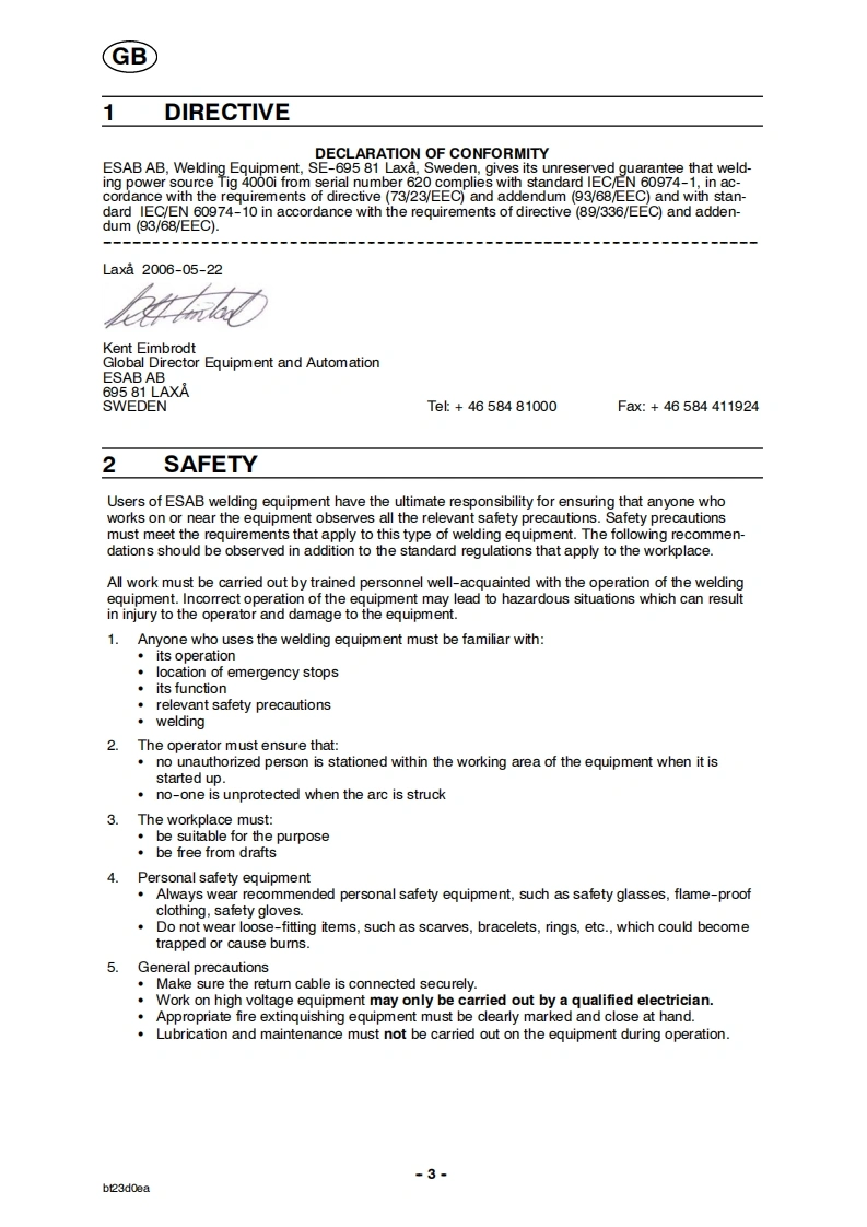 ESAB-Tig-4000i操作手册含电器原理图找手册网24天前发布关注私信1MB24页029ESAB-Tig-4000i操作手册含电器原理图此内容为付费资源,请付费后查看¥19¥21黄金会员免费钻石会员免费登录购买付费资源 第1页 / 共24页 第2页 / 共24页 第3页 / 共24页 第4页 / 共24页 第5页 / 共24页 第6页 / 共24页 第7页 / 共24页 第8页 / 共24页 第9页 / 共24页 第10页 / 共24页 试读已结束,还剩14页,您可下载完整版后进行离线阅读 THE ENDESAB焊机/林肯焊机 文本预览 GBESABTig 4000iAristo TMZSO HVInstruction manual0458640101GB060523Valid for serial no.620-xxx-xxxx 查看更多 收起部分 喜欢就支持一下吧收藏
