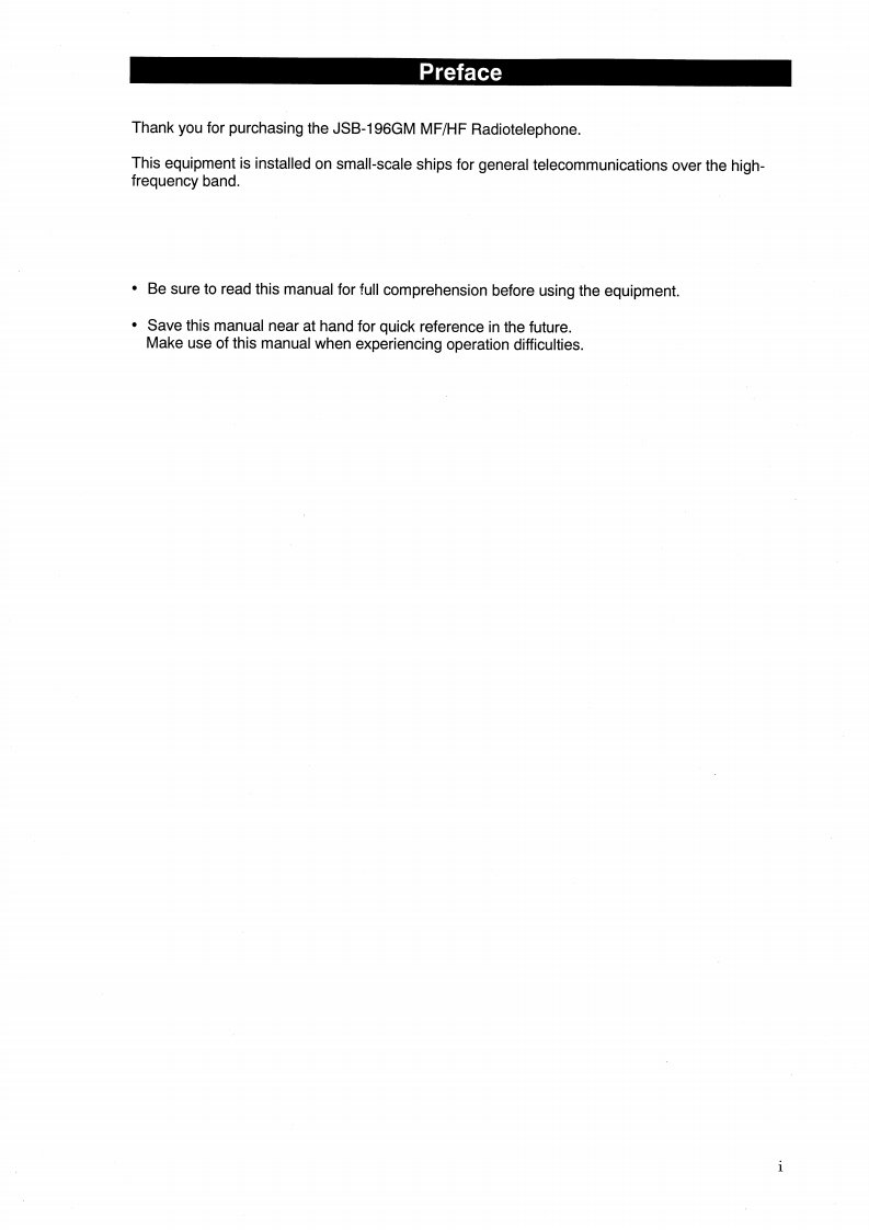 JRC_JSB-196GM_使用说明书手册找手册网前天发布关注私信5.83MB70页024JRC_JSB-196GM_使用说明书手册此内容为付费资源,请付费后查看¥19¥21黄金会员免费钻石会员免费立即购买您当前未登录!建议登陆后购买,可保存购买订单付费资源 第1页 / 共70页 第2页 / 共70页 第3页 / 共70页 第4页 / 共70页 第5页 / 共70页 第6页 / 共70页 第7页 / 共70页 第8页 / 共70页 第9页 / 共70页 第10页 / 共70页 试读已结束,还剩60页,您可下载完整版后进行离线阅读 THE END泉盛/JRC 文本预览 MF/HF RadiotelephoneJSB-196GMInstruction ManualJRC Jappan Radio Co.Itd 查看更多 收起部分 喜欢就支持一下吧收藏