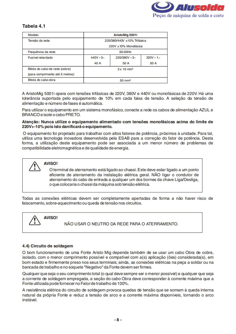 ESAB_ARISTOMIG_5001I操作手册含电器原理图找手册网24天前发布关注私信4.42MB26页040ESAB_ARISTOMIG_5001I操作手册含电器原理图此内容为付费资源,请付费后查看¥19¥21黄金会员免费钻石会员免费登录购买付费资源 第1页 / 共26页 第2页 / 共26页 第3页 / 共26页 第4页 / 共26页 第5页 / 共26页 第6页 / 共26页 第7页 / 共26页 第8页 / 共26页 第9页 / 共26页 第10页 / 共26页 试读已结束,还剩16页,您可下载完整版后进行离线阅读 THE ENDESAB焊机/林肯焊机 文本预览 原日AlusoldaESABAristoMig 5001iMultivoltageManual do Usuario e Pecas de reposicaoReferenciaAristoMig 5001iMV0402451A ESAB se reserva o direito de alterar as especificages sem prvio aviso.0212620042009 查看更多 收起部分 喜欢就支持一下吧收藏