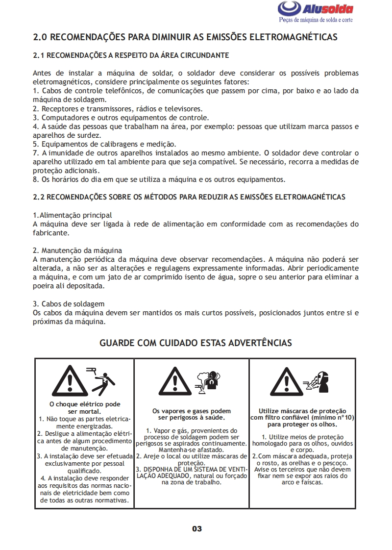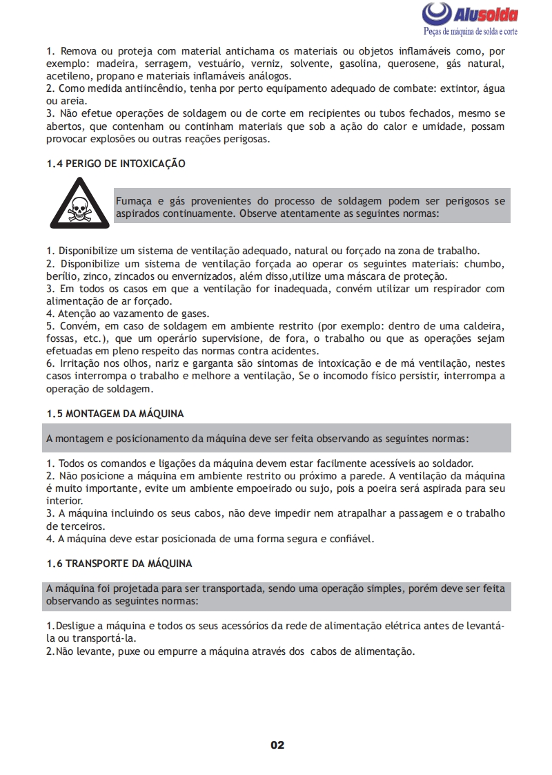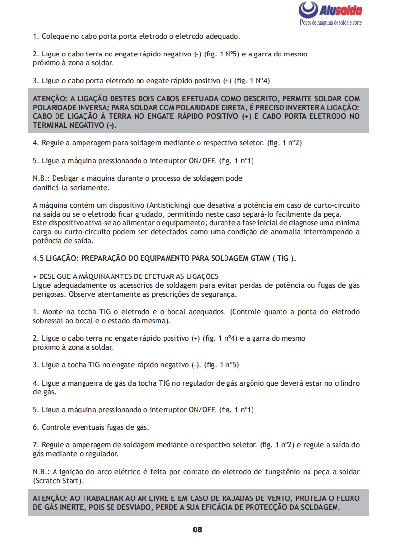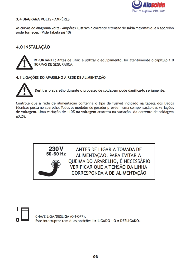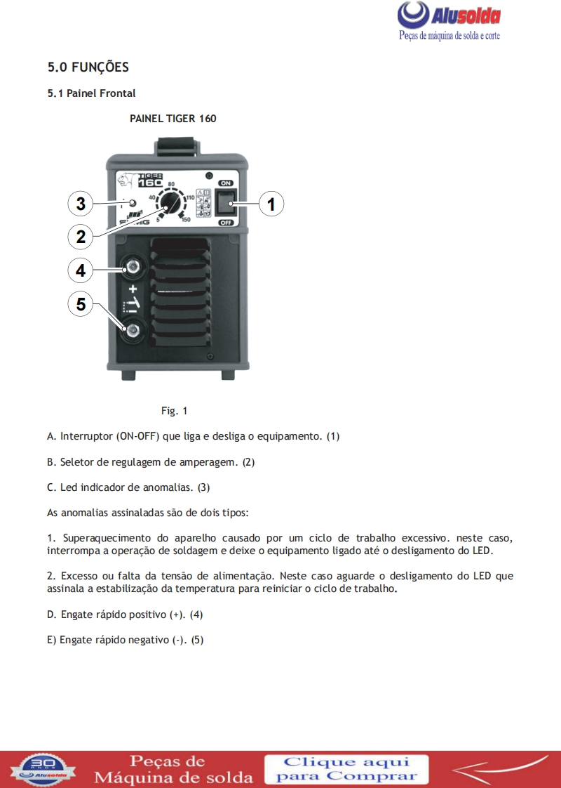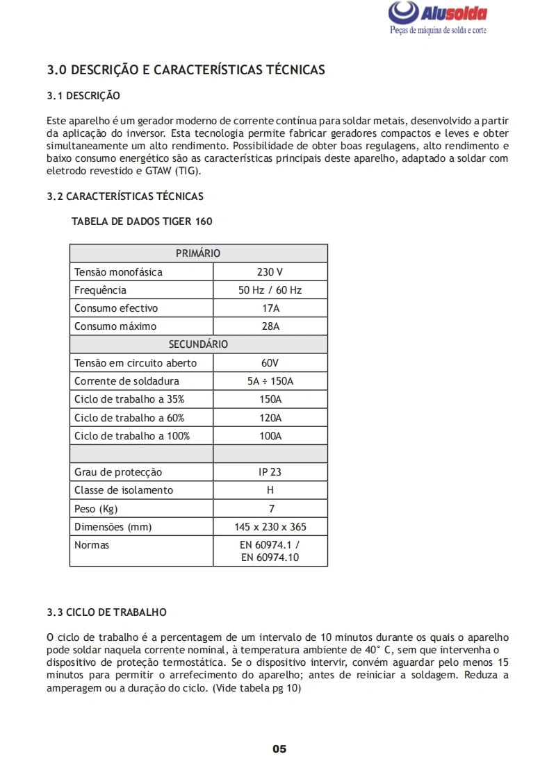 早只AlusoldaSUMIG■IIPAMEN■MANUAL DE INSTRUCOES160ONSUMIGOFF+TIG TIGER 160800035682 REV01 for ISUM TIGER 160Importante:Este manual foi redigido para soldadores:Leia-o atentamente antes deutilizar a maquina.Em caso de inexperiencia ou se nao conhecer os metodos e ofuncionamento seguro da maquina,contate um tecnico.Nao tente instalar,utilizar,nem efetuar a manutencao da maquina,sem adquirir a experiencia necessaria,lere entender as instrucoes do manual.Em caso de duvidas a respeito da instalacao eutilizacao desta maquina,contate a Sumig.