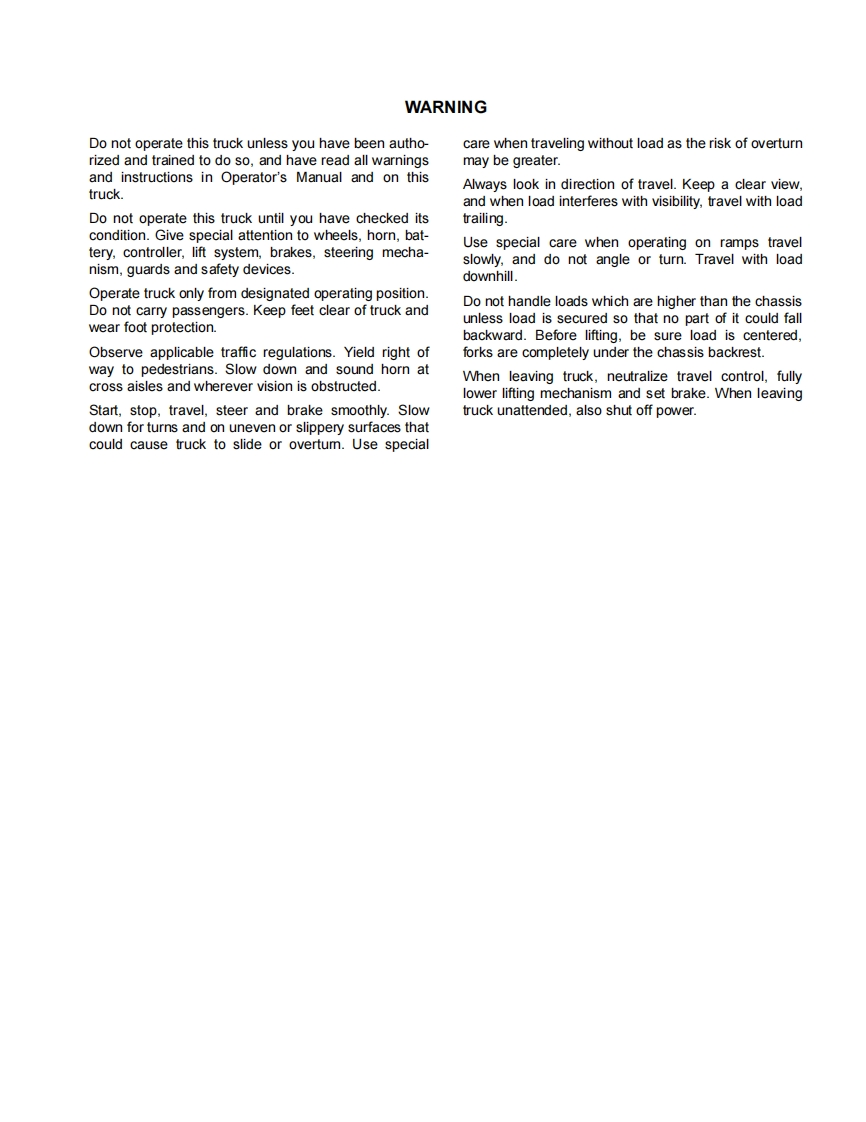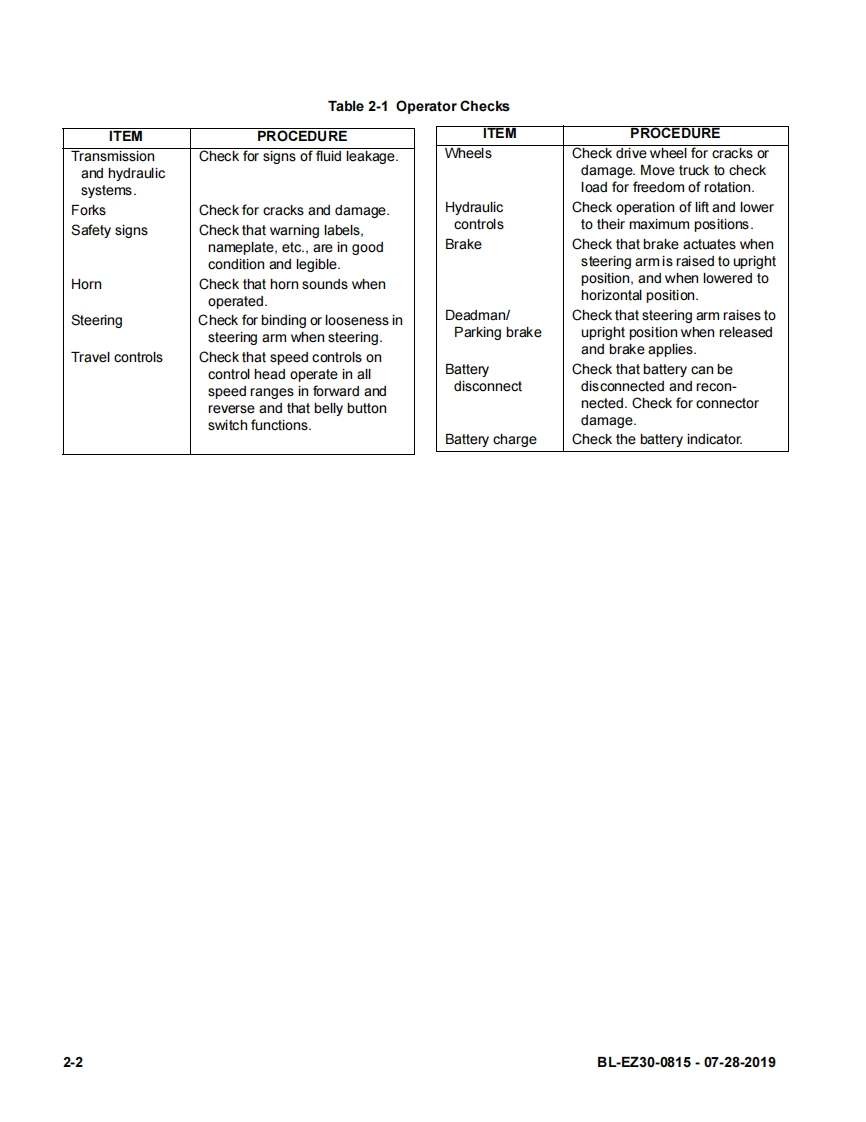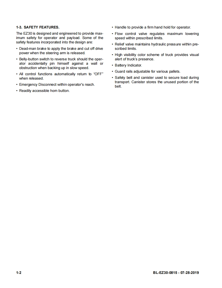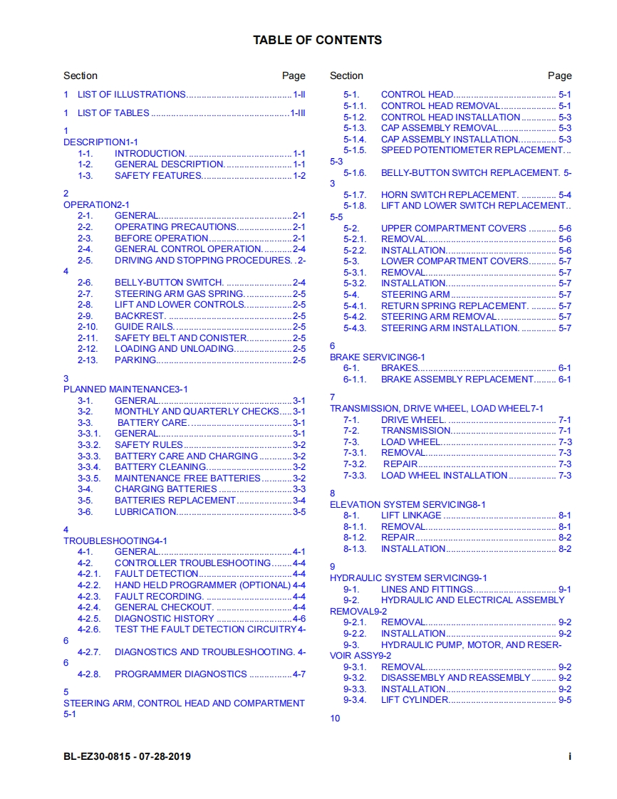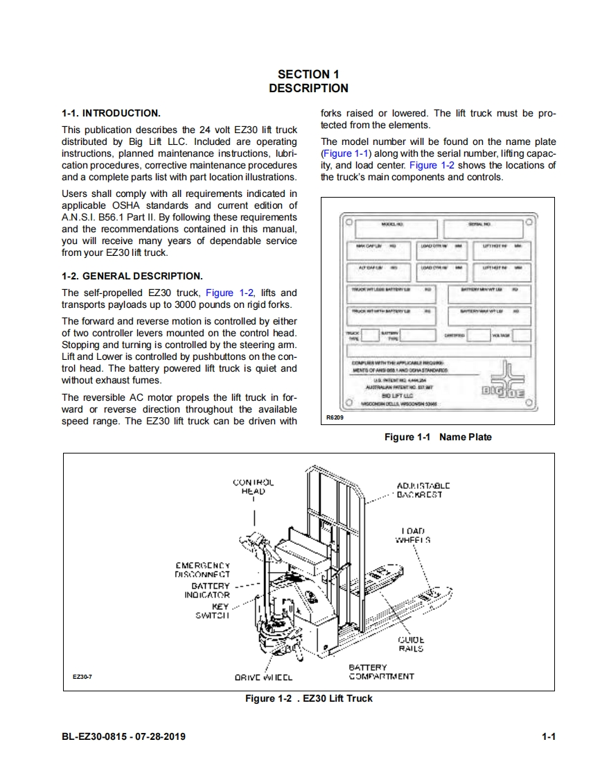 BlueGiant-Big-Joe-EZ30-Self-Propelled-Lift-Truck-Service-Manual维修维护手册找手册网前天发布关注私信2.71MB134页026BlueGiant-Big-Joe-EZ30-Self-Propelled-Lift-Truck-Service-Manual维修维护手册此内容为付费资源,请付费后查看¥19¥21黄金会员免费钻石会员免费立即购买您当前未登录!建议登陆后购买,可保存购买订单付费资源 第1页 / 共134页 第2页 / 共134页 第3页 / 共134页 第4页 / 共134页 第5页 / 共134页 第6页 / 共134页 第7页 / 共134页 第8页 / 共134页 第9页 / 共134页 第10页 / 共134页 试读已结束,还剩124页,您可下载完整版后进行离线阅读 THE END日立/BlueGiant 文本预览 EZ30SELF-PROPELLED,PALLET LIFT TRUCKU.S.Patents Nos.8,540,213;8,833,736;9,079,754;D692,202;D692203;D692204OperationMaintenanceRepair Parts ListBig Lift LLCMANUAL N0.BL-EZ30-0815-07-28-2019www.bigjoeforklifts.com 查看更多 收起部分 喜欢就支持一下吧收藏