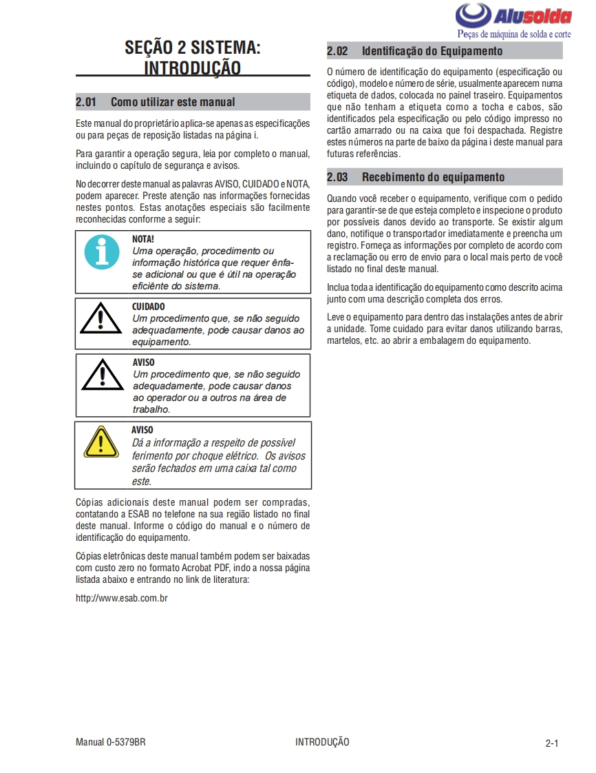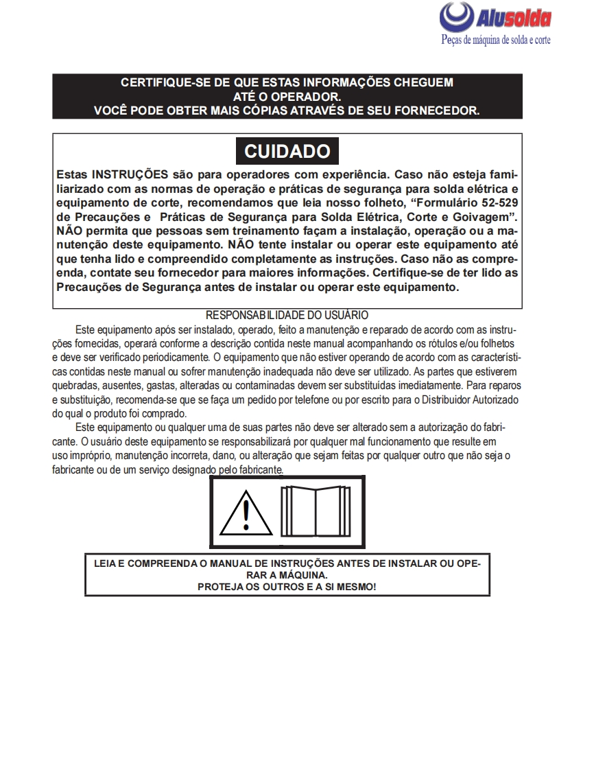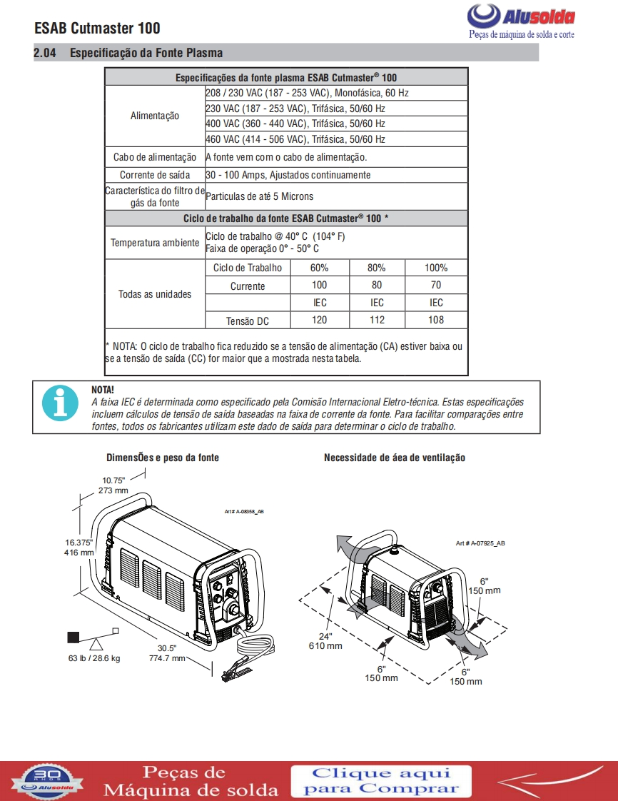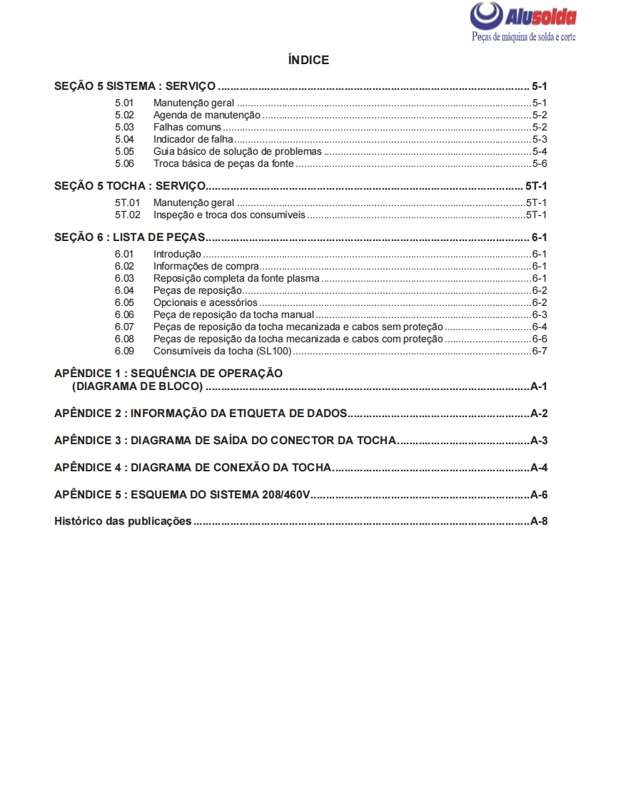 ESAB_CUTMASTER_100操作手册含电器原理图找手册网25天前发布关注私信6.58MB76页044ESAB_CUTMASTER_100操作手册含电器原理图此内容为付费资源,请付费后查看¥19¥21黄金会员免费钻石会员免费登录购买付费资源 第1页 / 共76页 第2页 / 共76页 第3页 / 共76页 第4页 / 共76页 第5页 / 共76页 第6页 / 共76页 第7页 / 共76页 第8页 / 共76页 第9页 / 共76页 第10页 / 共76页 试读已结束,还剩66页,您可下载完整版后进行离线阅读 THE ENDESAB焊机/林肯焊机 文本预览 只AlusoldaESABESAB Cutmaster®1O0ISTEMA DE CORTE PLASMASL100 1TORCHTMManual deOperacaoA如4A-127728R_A8100ccFASE3FASES208/230400V460VAMPSVersao:ABData:15 de Abril de 2015Manual:0-5379BResab.com.br 查看更多 收起部分 喜欢就支持一下吧收藏