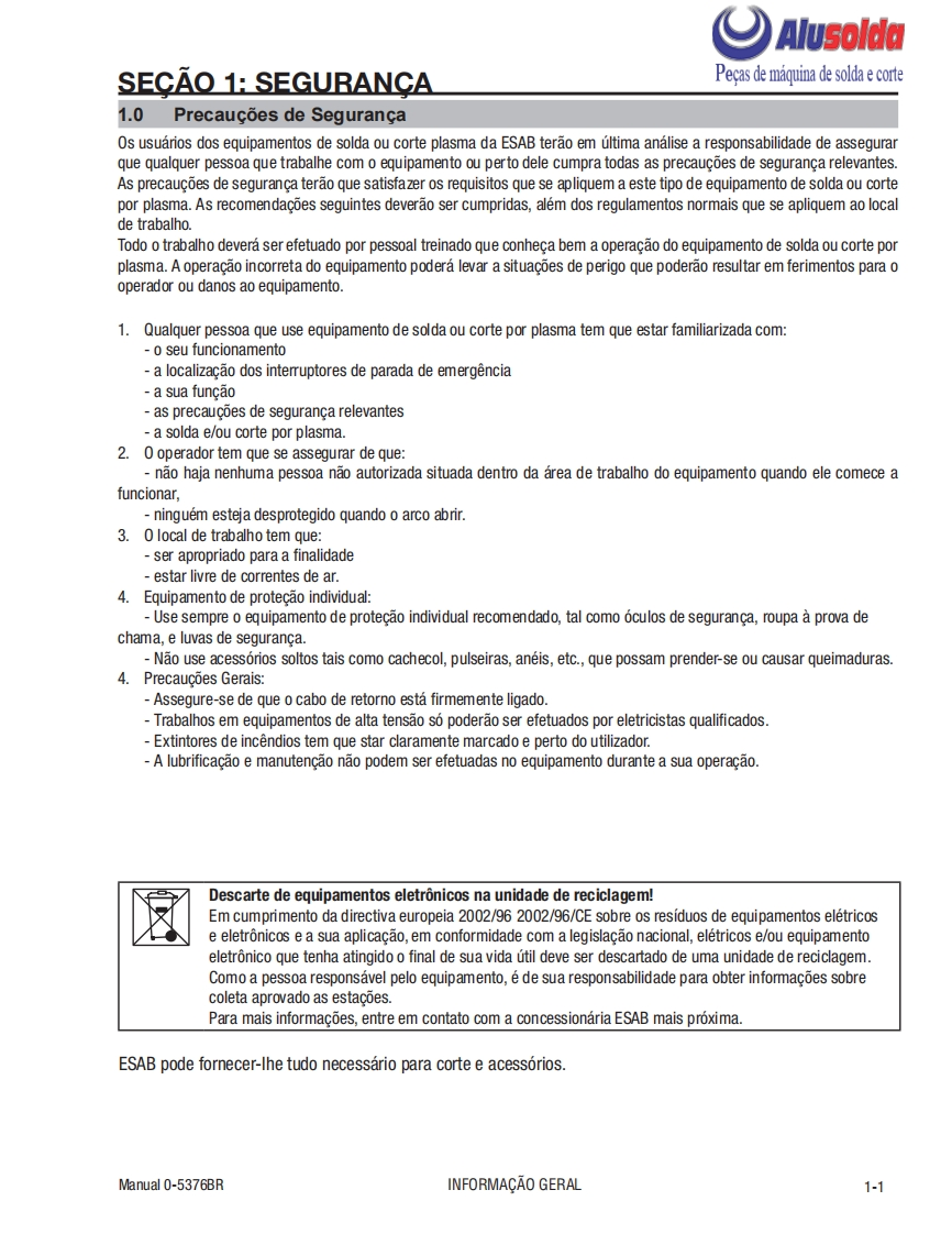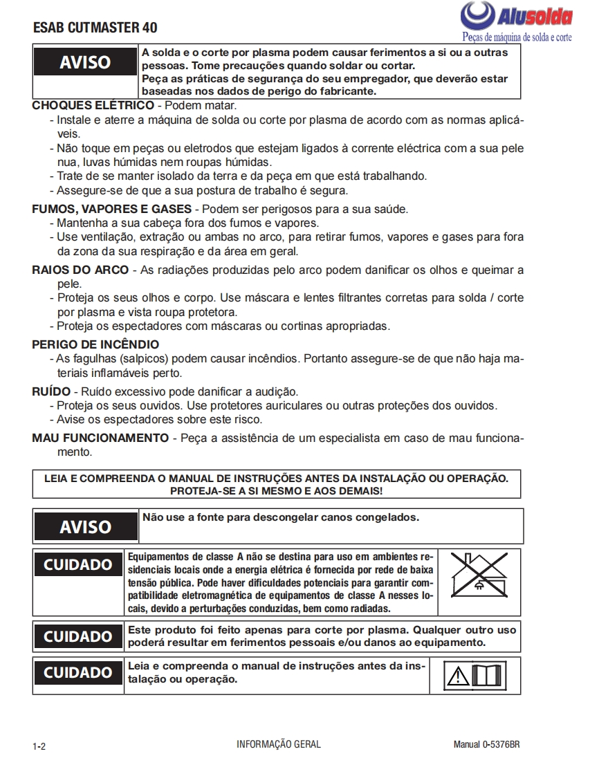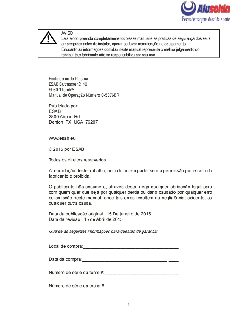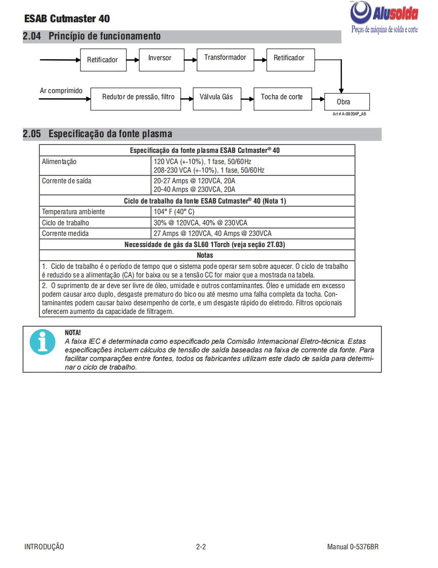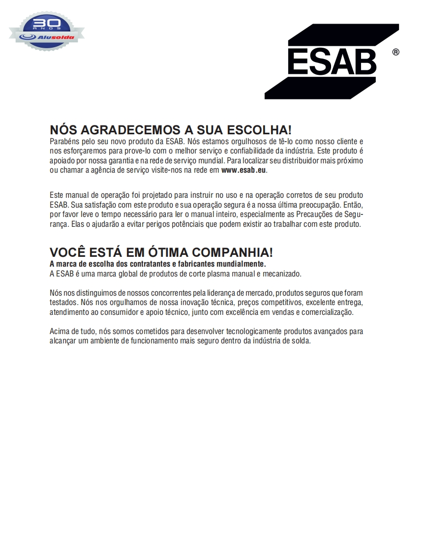 ESAB_CUTMASTER_40操作手册含电器原理图找手册网25天前发布关注私信3.84MB40页028ESAB_CUTMASTER_40操作手册含电器原理图此内容为付费资源,请付费后查看¥19¥21黄金会员免费钻石会员免费登录购买付费资源 第1页 / 共40页 第2页 / 共40页 第3页 / 共40页 第4页 / 共40页 第5页 / 共40页 第6页 / 共40页 第7页 / 共40页 第8页 / 共40页 第9页 / 共40页 第10页 / 共40页 试读已结束,还剩30页,您可下载完整版后进行离线阅读 THE ENDESAB焊机/林肯焊机 文本预览 阜只AlusoldaESABESAB Cutmaster®40SISTEMA DE CORTE PLASMASL60 1TORCHTMManual deOperacaoArt A-12777_AA40ccFASICA120V230VAMPSRevisao:ABData:15 de Abril de 2015Manual No.:0-5376BResab.eu 查看更多 收起部分 喜欢就支持一下吧收藏