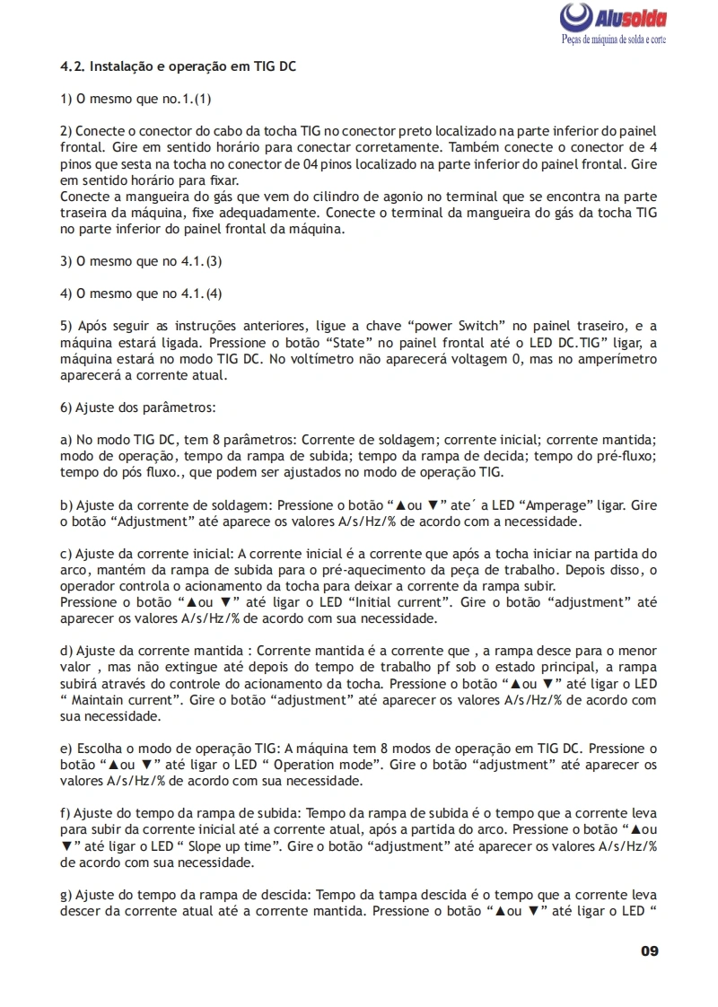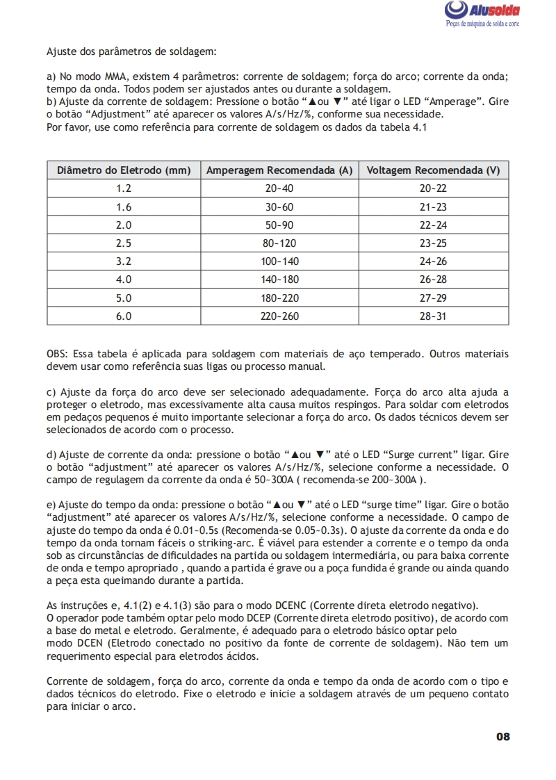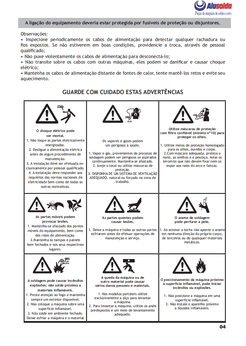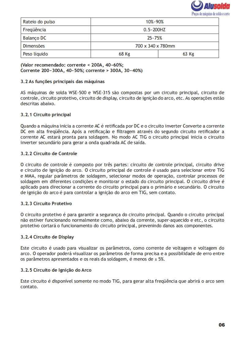 7AlusoldaSUMICMANUAL DE INSTRUCOESTIG INVERSORA WSE 318E TIG INVERSORA WSE 505Importante:Este manual foi redigido para soldadores:Leia-o atentamente antes deutilizar a maquina.Em caso de inexperiencia ou se nao conhecer os metodos e ofuncionamento seguro da maquina,contate um tecnico.Nao tente instalar,utilizar,nem efetuar a manutencao da maquina,sem adquirir a experiencia necessaria,lere entender as instrucoes do manual.Em caso de duvidas a respeito da instalacao eutilizacao desta maquina,contate a Sumig.