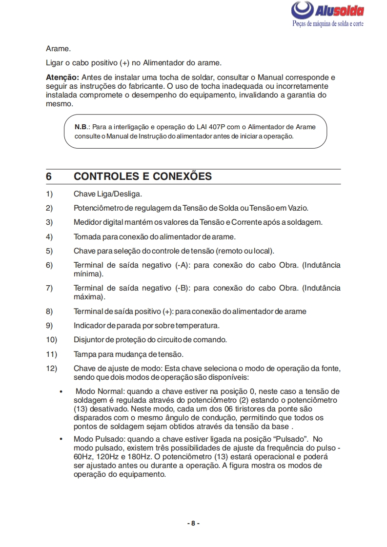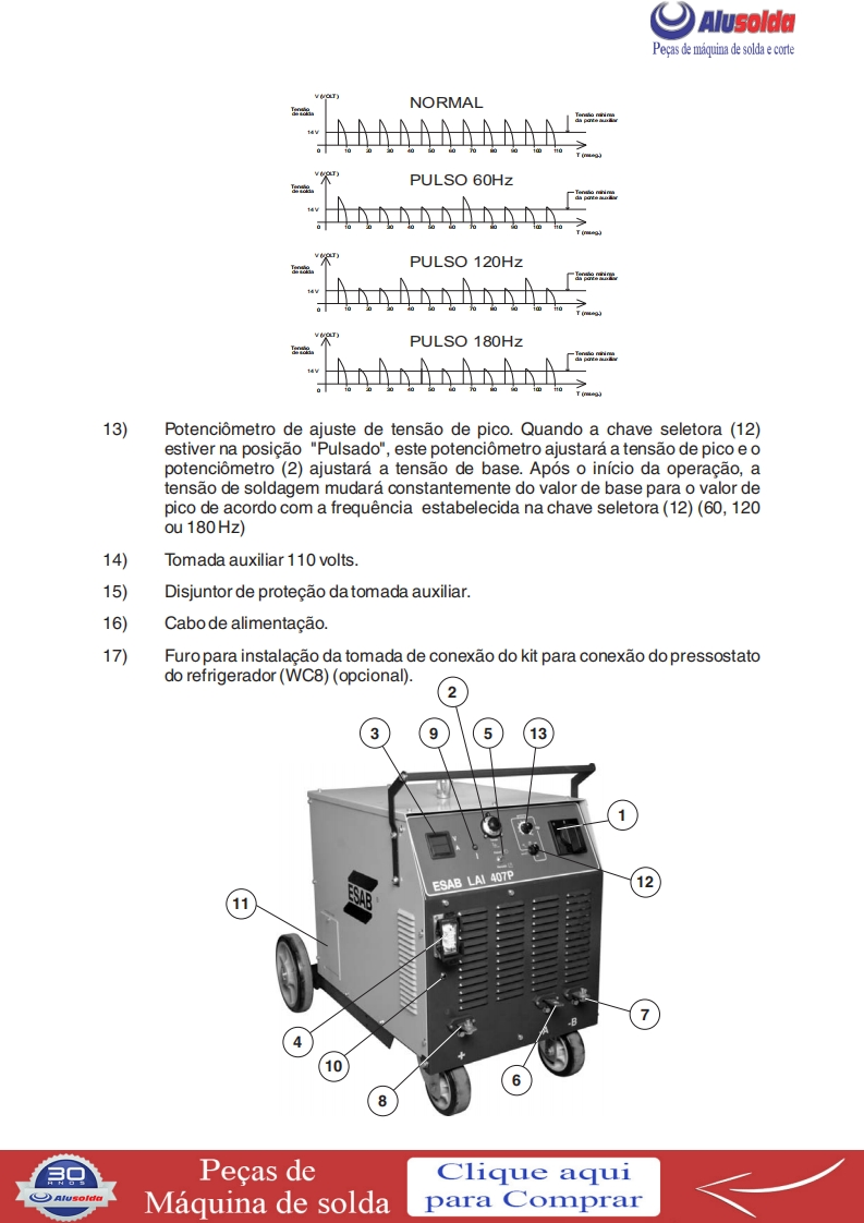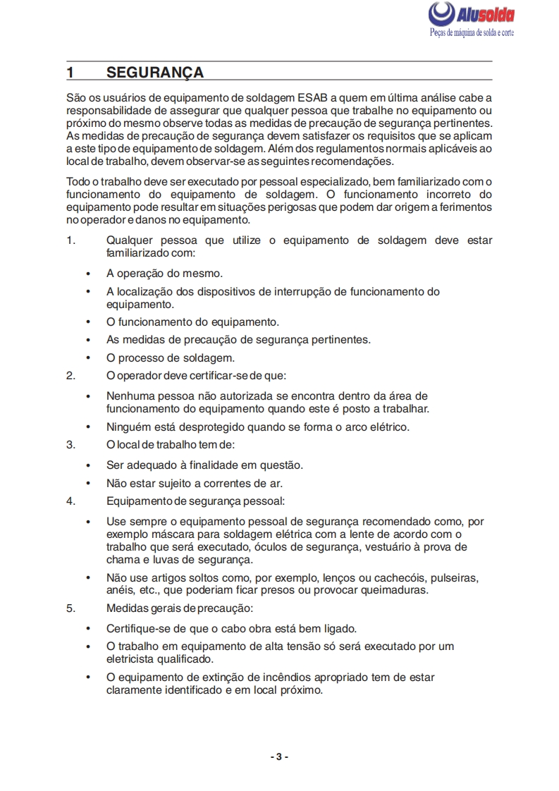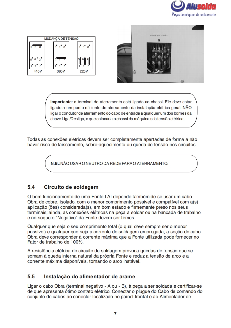 争只ESABAlusoldaLAI407PRetificador para soldasemi-automaticaESAB LAI 407PManual do usuario e pecas de reposicaoReferenciaLA1407P220-380-440V-60Hz0402186A ESAB se reserva o direito de alterar as especificagbes sem previo aviso0210225122009Valido para n de serie a partir de FXXXXXX