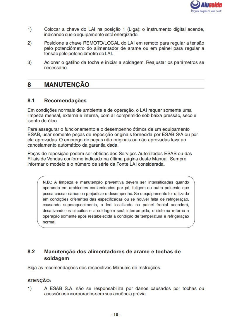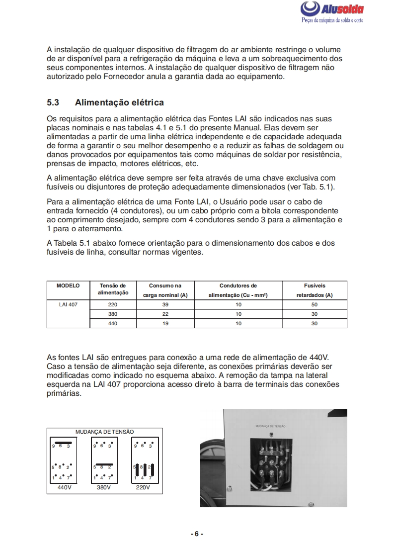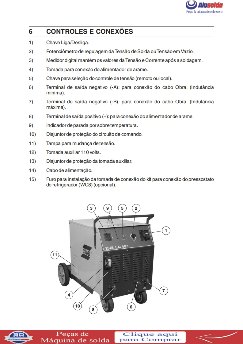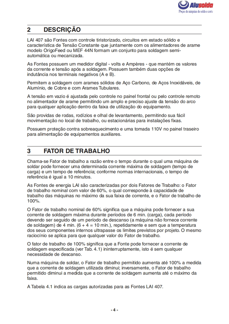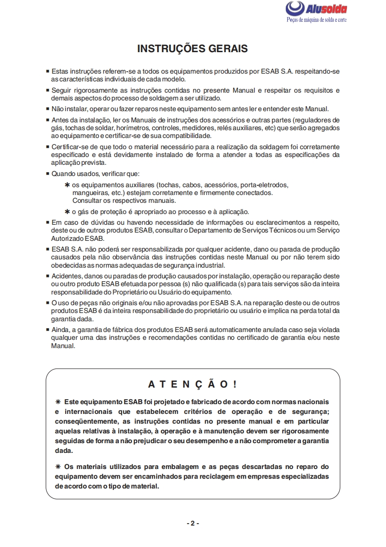 AlusoldaESABLA1407Retificador para soldasemi-automatica。2(ESAB LAI 407Manual do usuario e pecas de reposicaoReferenciaLA1407-220-380-440V/60Hz0402090LA1407 ESTAC1 ONARIA-220-380-440V60Hz0402184LA1407-220-380-440V/50Hz0402231A ESAB se reserva o direito de alterar as especificagbes sem previo aviso.0209636082008Valido para n de serie a partir de FXXXXXX