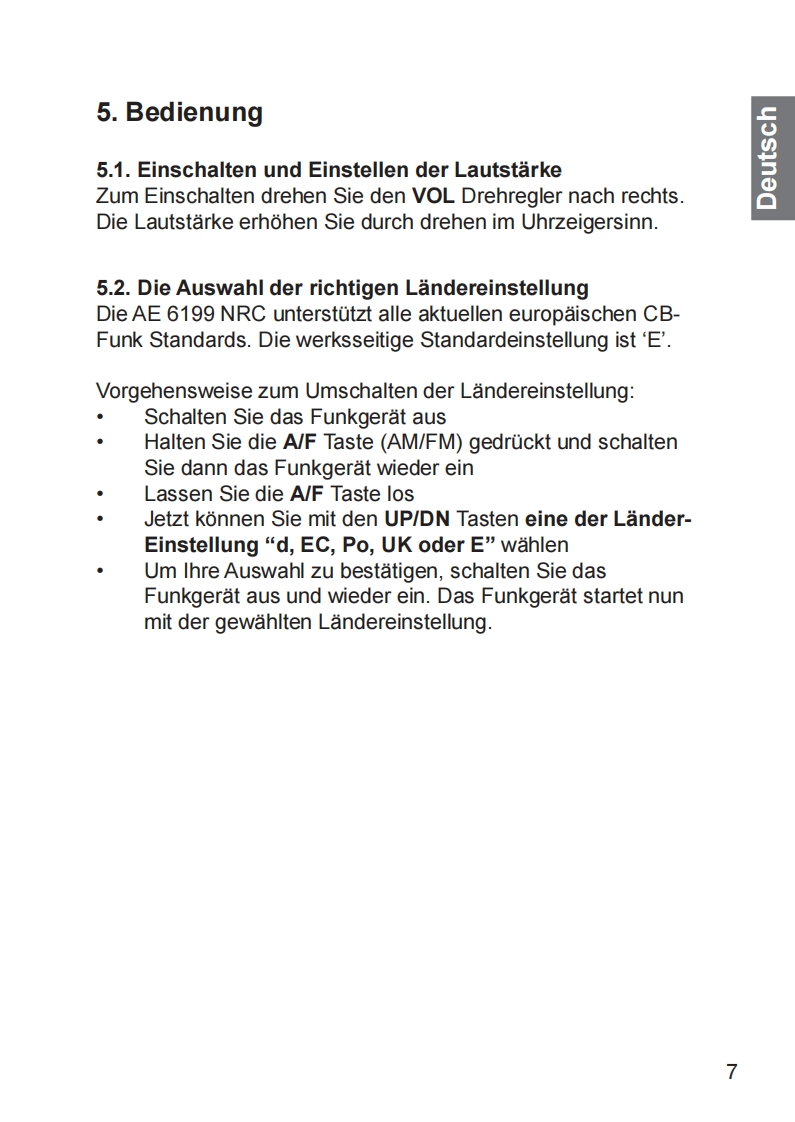 Albrecht_AE6199_NRC_DE_ENG_FR_ITA_10_2020操作说明书手册找手册网前天发布关注私信1.75MB72页031Albrecht_AE6199_NRC_DE_ENG_FR_ITA_10_2020操作说明书手册此内容为付费资源,请付费后查看¥19¥21黄金会员免费钻石会员免费立即购买您当前未登录!建议登陆后购买,可保存购买订单付费资源 第1页 / 共72页 第2页 / 共72页 第3页 / 共72页 第4页 / 共72页 第5页 / 共72页 第6页 / 共72页 第7页 / 共72页 第8页 / 共72页 第9页 / 共72页 第10页 / 共72页 试读已结束,还剩62页,您可下载完整版后进行离线阅读 THE END北峰/Albrecht 文本预览 ④ALBRECHT.CB Funkgerat AE 6199 NRCCB radio AE 6199 NRCAE 6199 NRCCH9/9LIGHTDNALBRECHT.A/FCTSASQNRCSCANSETBedienungsanleitung ManualDeutsch English Francais ItalianoDownloaded from www.cbradio.nlALBRECHT。 查看更多 收起部分 喜欢就支持一下吧收藏