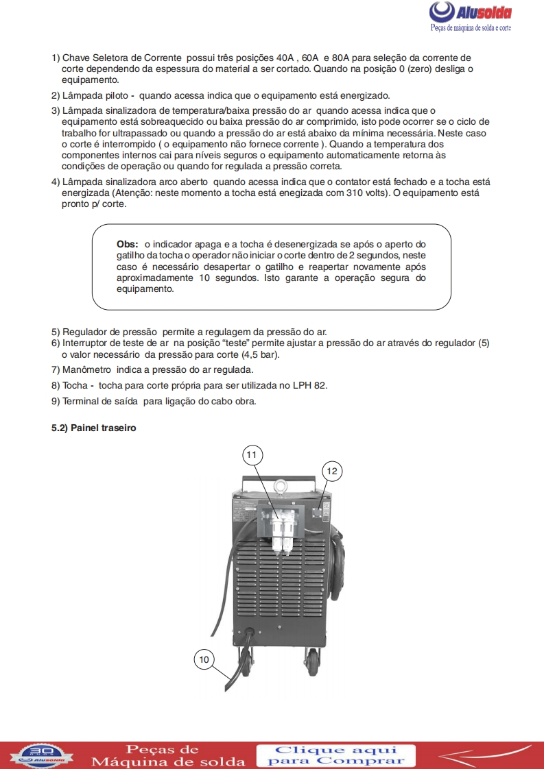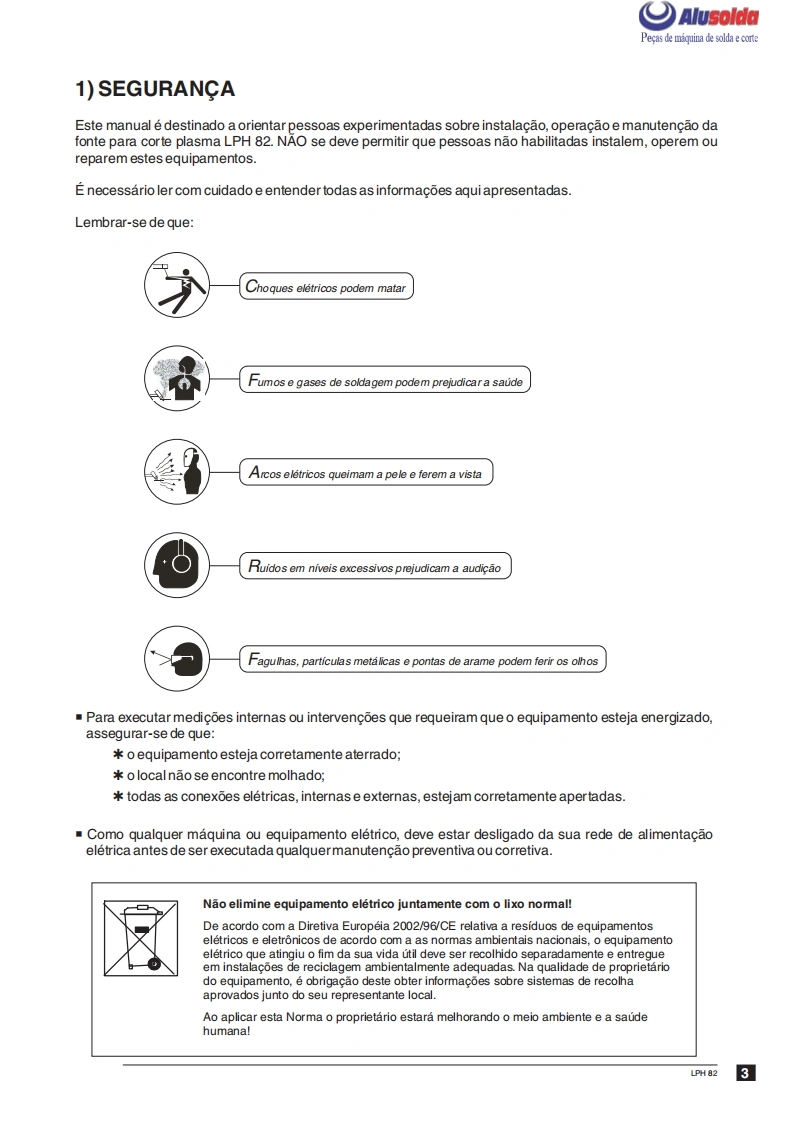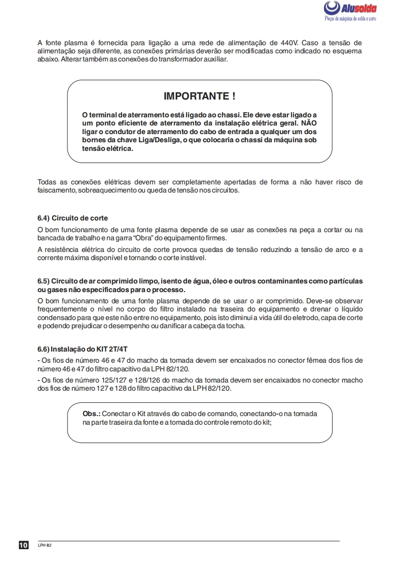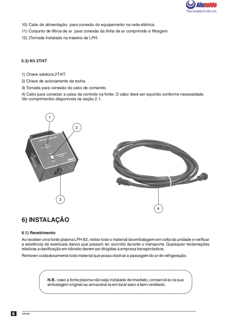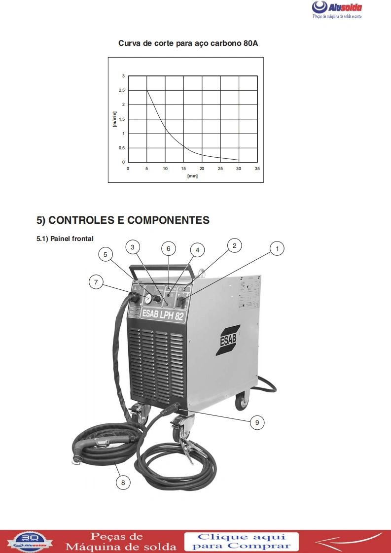 系只AlusoldaESABLPH 82Fonte para corte plasmaManual de Instrucoes0ESAB LPH 82Ref.:LPH 82 220/380/440V 50/60 Hz com tocha manual 6 metros0401142LPH 82 220/380/440V 50/60 Hz sem tocha0401281A ESAB se reserva odireito de alterar as caracteristicas tecnicas de seus equipamentos sem previo aviso.