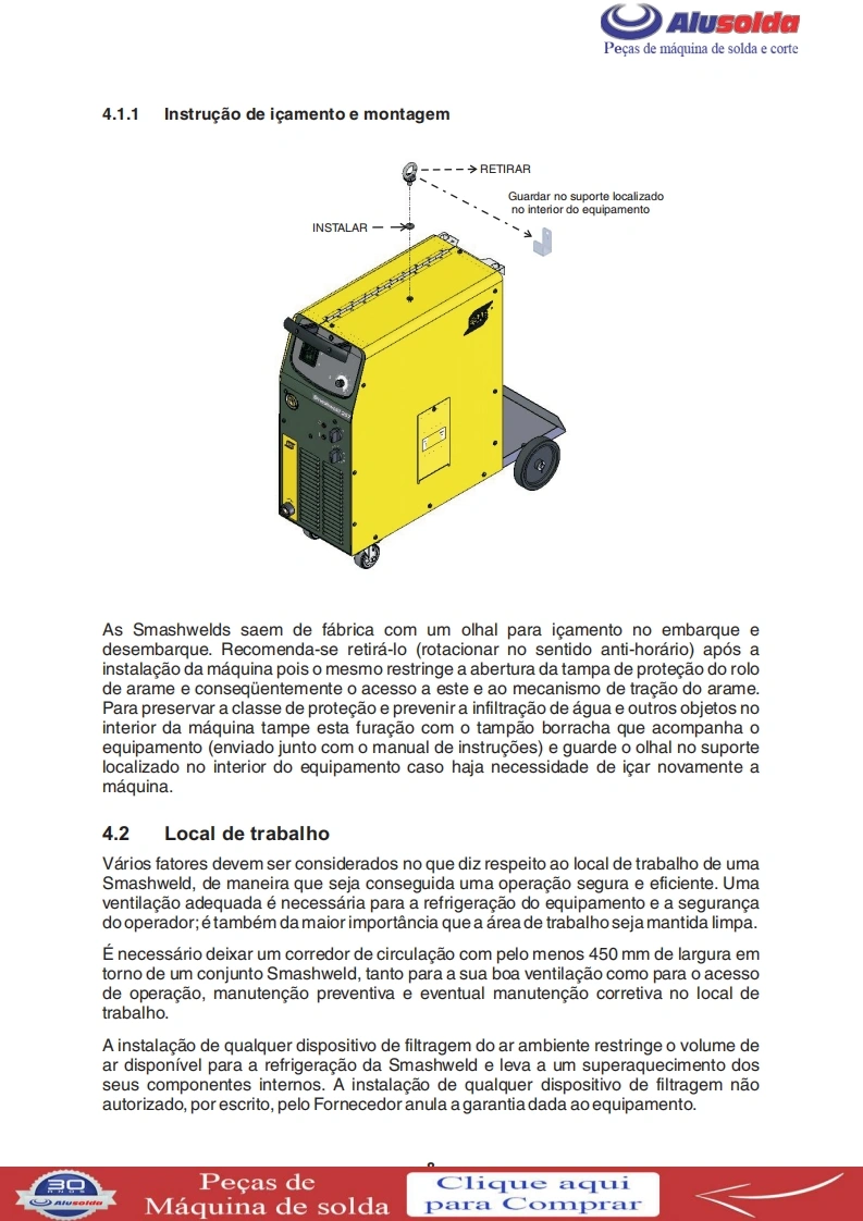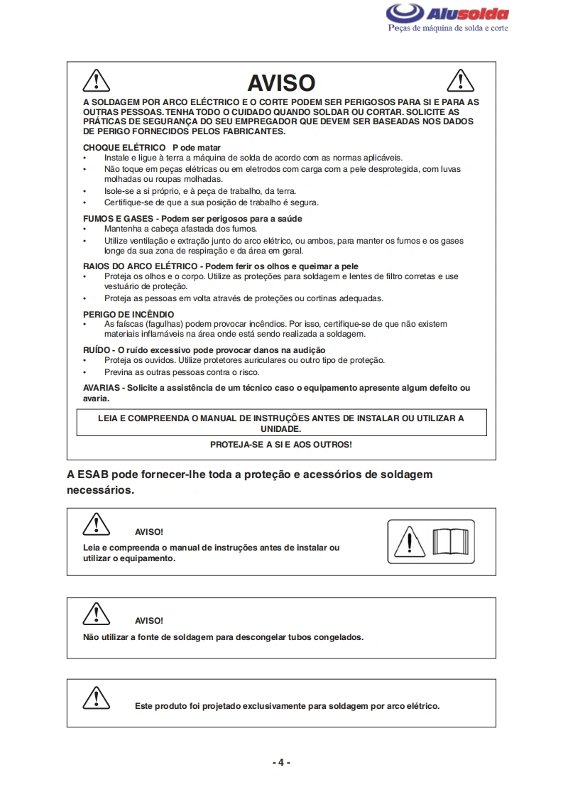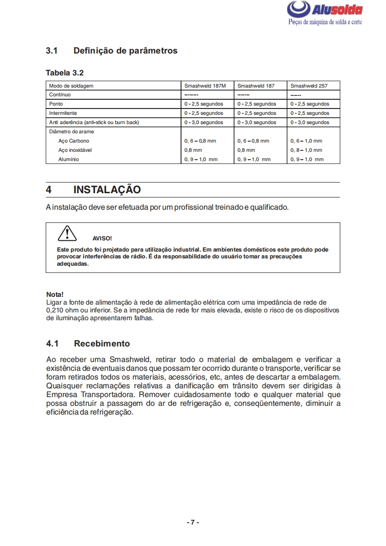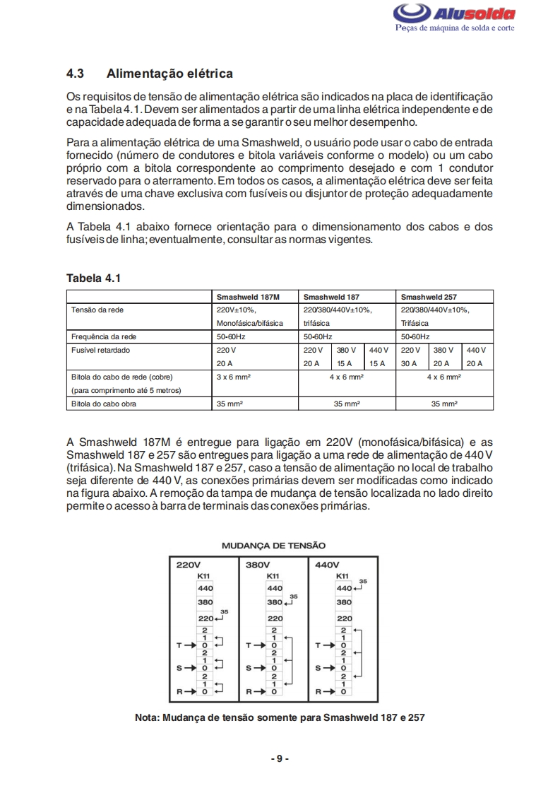 早只AlusoldaESABSmashweld 187MSmashweld 187Smashweld 257Manual do usuario e pecas de reposicaoSmashweld 187M(com volt/amp.)0402174Smashweld 187M(sem volt/amp.)0402190Smashweld 187(com volt/amp.)0402173Smashweld 187(sem volt/amp.)0402193Smashweld 257(com volt/amp.)0402071Smashweld 257(sem volt/amp.)04021960209795042009Valido a partir do n de serie F0801000