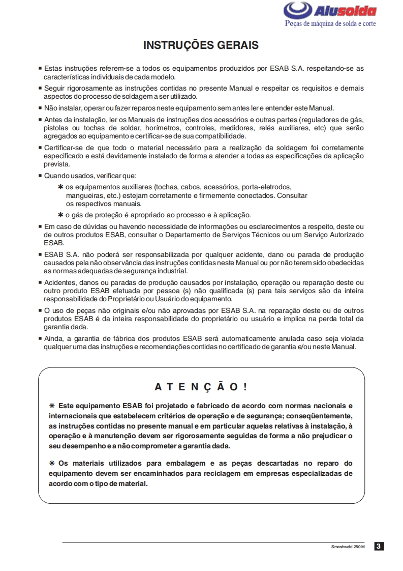 ESAB_SMASHWELD_250_M操作手册含电器原理图找手册网25天前发布关注私信2.70MB24页023ESAB_SMASHWELD_250_M操作手册含电器原理图此内容为付费资源,请付费后查看¥19¥21黄金会员免费钻石会员免费登录购买付费资源 第1页 / 共24页 第2页 / 共24页 第3页 / 共24页 第4页 / 共24页 第5页 / 共24页 第6页 / 共24页 第7页 / 共24页 第8页 / 共24页 第9页 / 共24页 第10页 / 共24页 试读已结束,还剩14页,您可下载完整版后进行离线阅读 THE ENDESAB焊机/林肯焊机 文本预览 阜只AlusoldaESABSMASHWELD 250 MConjunto semi-automaticopara soldagem MIG/MAGManual de InstrucoesESABSmashweld6250Ref.:Smashweld 250 M0401031(Tocha Spool Gun nao incluida) 查看更多 收起部分 喜欢就支持一下吧收藏