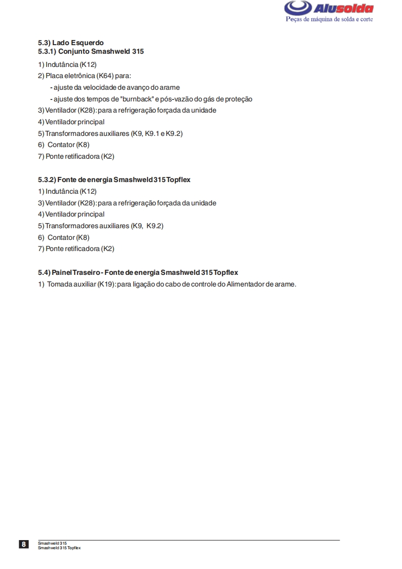 ESAB_SMASHWELD_315__315_TOPFLEX操作手册含电器原理图找手册网25天前发布关注私信1.94MB24页043ESAB_SMASHWELD_315__315_TOPFLEX操作手册含电器原理图此内容为付费资源,请付费后查看¥19¥21黄金会员免费钻石会员免费登录购买付费资源 第1页 / 共24页 第2页 / 共24页 第3页 / 共24页 第4页 / 共24页 第5页 / 共24页 第6页 / 共24页 第7页 / 共24页 第8页 / 共24页 第9页 / 共24页 第10页 / 共24页 试读已结束,还剩14页,您可下载完整版后进行离线阅读 THE ENDESAB焊机/林肯焊机 文本预览 3AlusoldaESABSMASHWELD 315SMASHWELD 315 TopflexConjunto semi-automaticopara soldagem MIG/MAGManual de InstrucoesSmashweld315pSmashweld315 copllsctRef.:Smashweld 3150.554.707.8800Smashweld 315 Topflex0.554.881.8800 查看更多 收起部分 喜欢就支持一下吧收藏