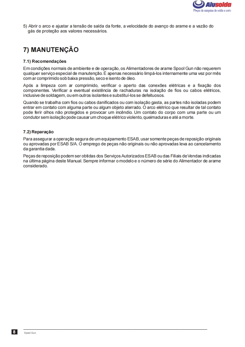 ESAB_SPOOL_GUN操作手册含电器原理图找手册网24天前发布关注私信1.43MB20页034ESAB_SPOOL_GUN操作手册含电器原理图此内容为付费资源,请付费后查看¥19¥21黄金会员免费钻石会员免费登录购买付费资源 第1页 / 共20页 第2页 / 共20页 第3页 / 共20页 第4页 / 共20页 第5页 / 共20页 第6页 / 共20页 第7页 / 共20页 第8页 / 共20页 第9页 / 共20页 第10页 / 共20页 试读已结束,还剩10页,您可下载完整版后进行离线阅读 THE ENDESAB焊机/林肯焊机 文本预览 争只AlusoldaESABSpool GunAlimentador de ArameManual de InstrucoesSPOOLRef.:Spool Gun 0400136 查看更多 收起部分 喜欢就支持一下吧收藏