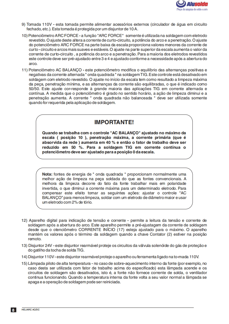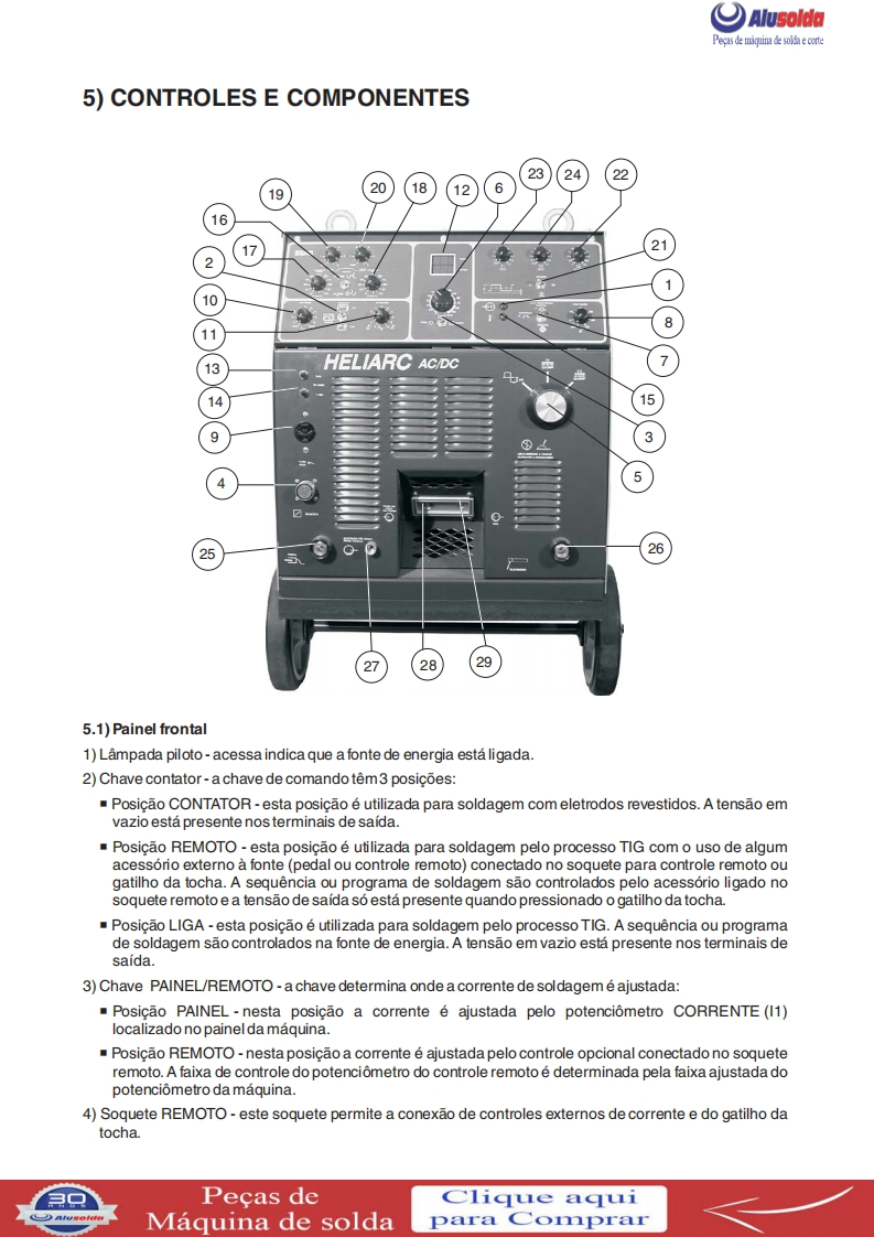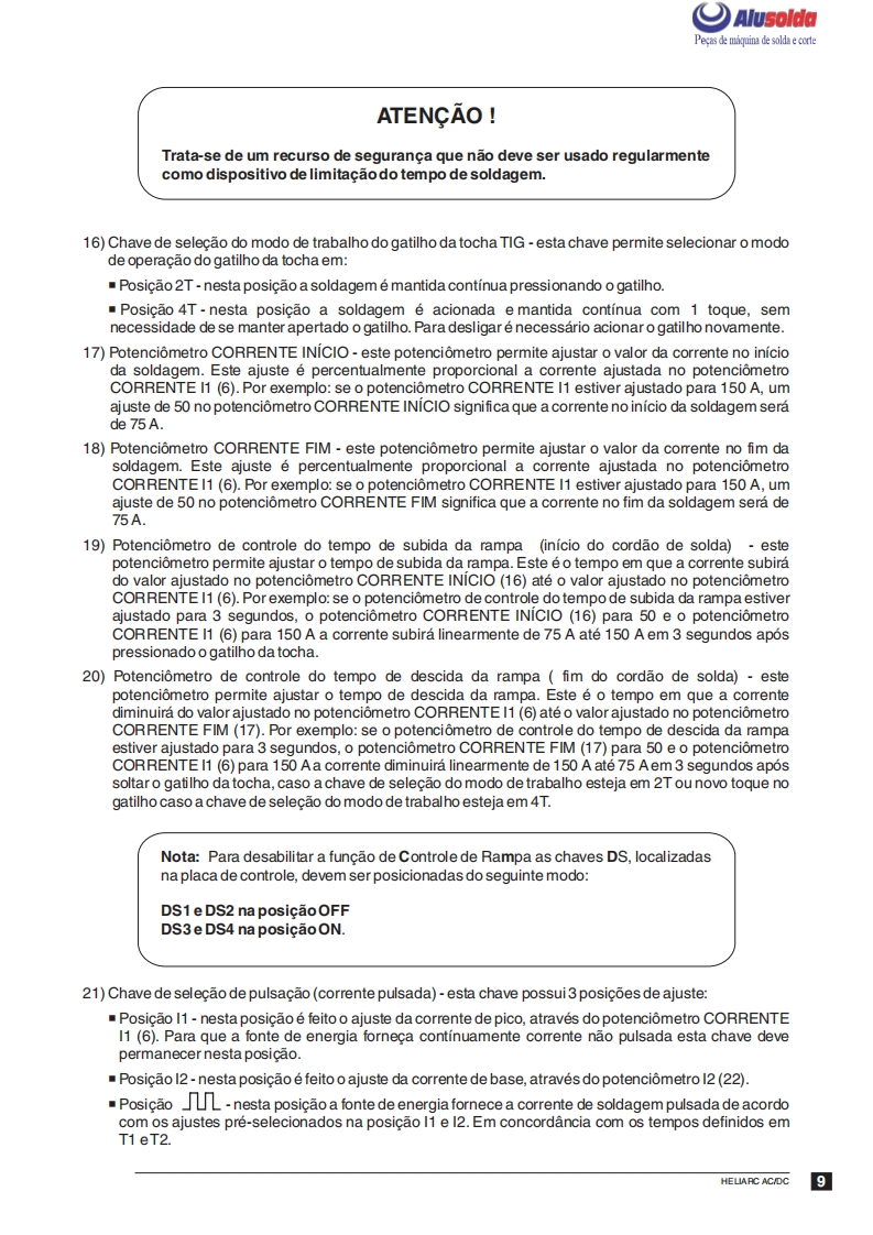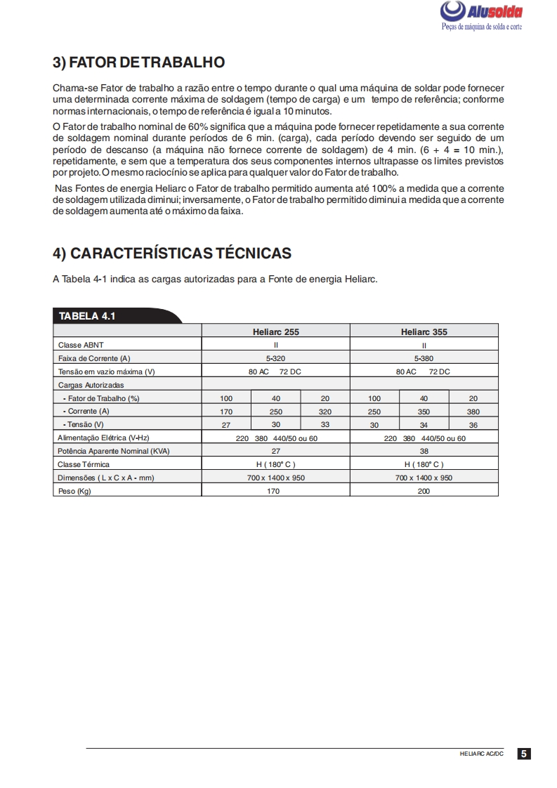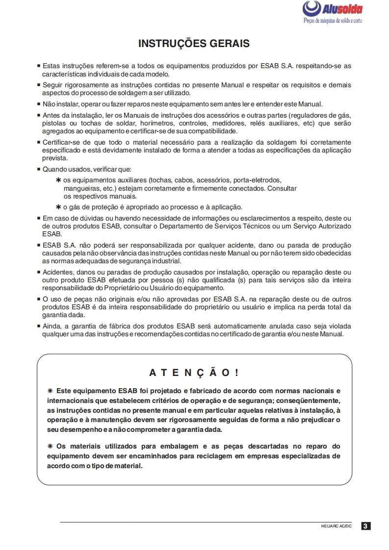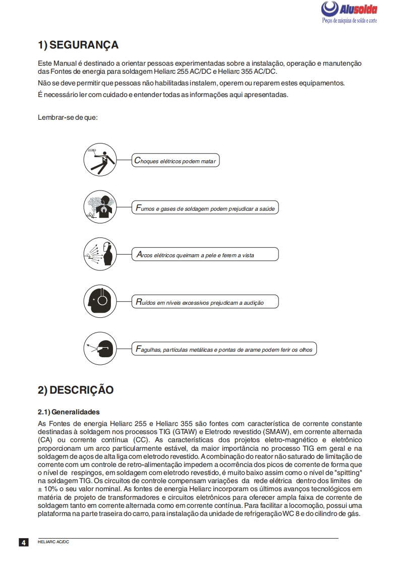 口AlusoldaESABHELIARC AC/DCFonte de energia para soldagem TIGe eletrodo revestidoManual de InstrucesHELIARC 255HELIARCRef.:Heliarc 255 AC/DC 50 Hz 0400252Heliarc 255 AC/DC 60 Hz 0400125Heliarc 355 AC/DC 50 Hz 0400351Heliarc 355 AC/DC 60 Hz 0400114