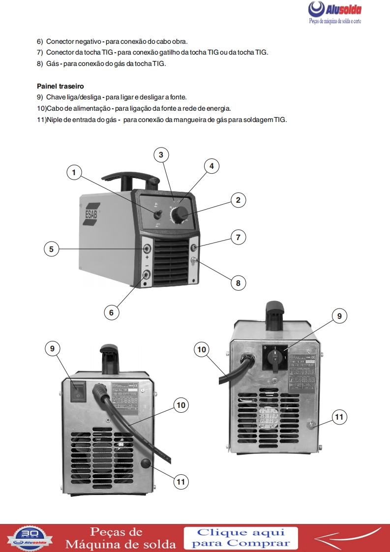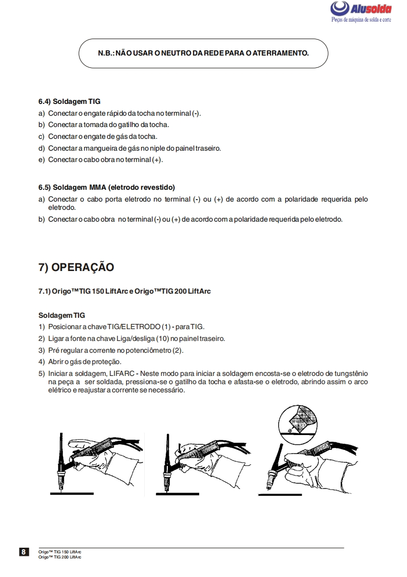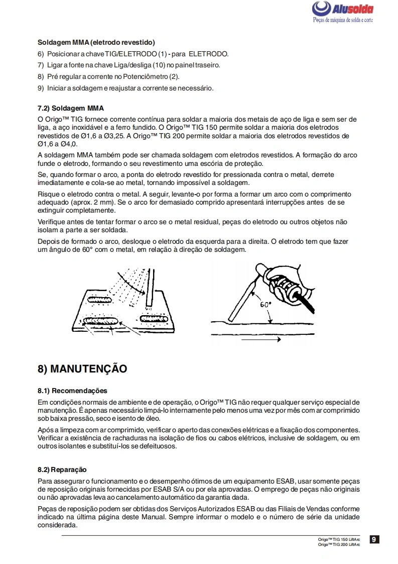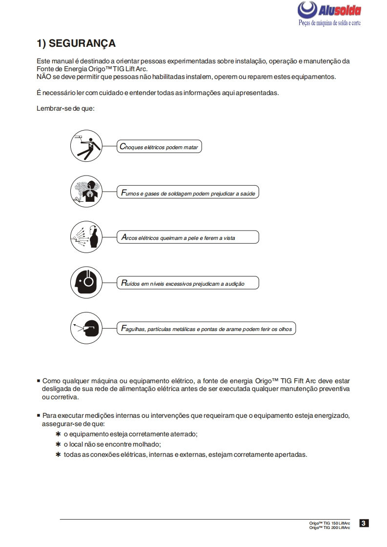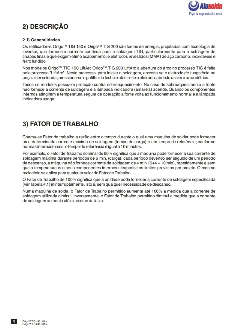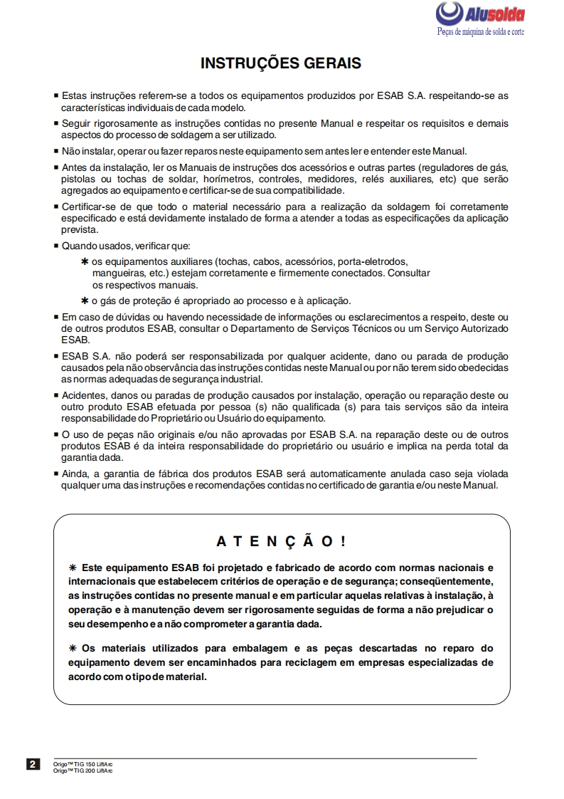 争口AlusolddESABOrigoTM TIG;150 LiftArcOrigoTM TiG200 LiftArcFonte de energia para soldagem TIGe com eletrodos revestidosManual de InstrucoesESAB+。Produzido noBrasifRef.:OrigoTM TIG 150-LiftArc0401380OrigoTM TIG 200-LiftArc0401381OrigoTM TIG 150-LiftArc com tocha0401549OrigoTM TIG 200-LiftArc com tocha0401550