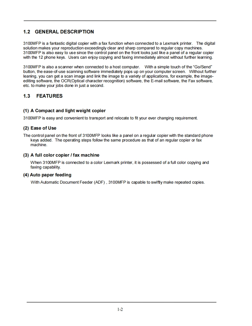 Lexmark-3100MFP-维修维护手册找手册网前天发布关注私信1.05MB35页045Lexmark-3100MFP-维修维护手册此内容为付费资源,请付费后查看¥19¥21黄金会员免费钻石会员免费立即购买您当前未登录!建议登陆后购买,可保存购买订单付费资源 第1页 / 共35页 第2页 / 共35页 第3页 / 共35页 第4页 / 共35页 第5页 / 共35页 第6页 / 共35页 第7页 / 共35页 第8页 / 共35页 第9页 / 共35页 第10页 / 共35页 试读已结束,还剩25页,您可下载完整版后进行离线阅读 THE ENDLexmark 文本预览 Note:This product is no longer serviced orupdated by Lexmark.Replacement parts(other than supplies)may have little or noavailability.3100 MFPService Manual巴4036-302Lexmark International Inc 查看更多 收起部分 喜欢就支持一下吧收藏