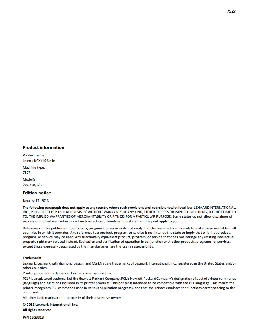 Lexmark-CXx10-MFP-维修维护手册-(Eng)找手册网前天发布关注私信34.62MB394页030Lexmark-CXx10-MFP-维修维护手册-(Eng)此内容为付费资源,请付费后查看¥19¥21黄金会员免费钻石会员免费立即购买您当前未登录!建议登陆后购买,可保存购买订单付费资源 第1页 / 共394页 第2页 / 共394页 第3页 / 共394页 第4页 / 共394页 第5页 / 共394页 第6页 / 共394页 第7页 / 共394页 第8页 / 共394页 第9页 / 共394页 第10页 / 共394页 试读已结束,还剩384页,您可下载完整版后进行离线阅读 THE ENDLexmark 文本预览 LEXMARKLexmark CXx10 MFPMachine Type 7527-2xx,-4xx,-63xService Manual·Start diagnostics·Maintenance·Safety and notices·Trademarks。IndexJanuary 17,2013www.lexmark.comP/N12G3313 查看更多 收起部分 喜欢就支持一下吧收藏