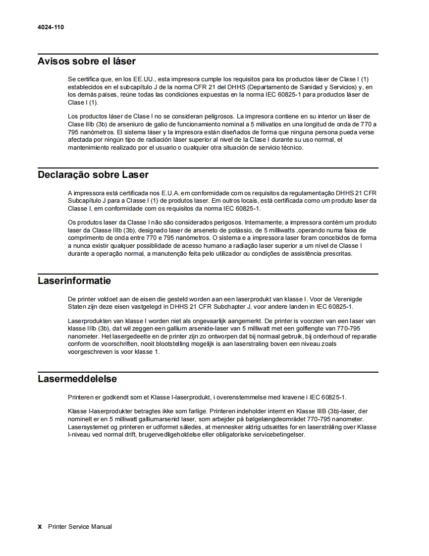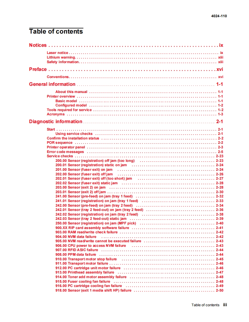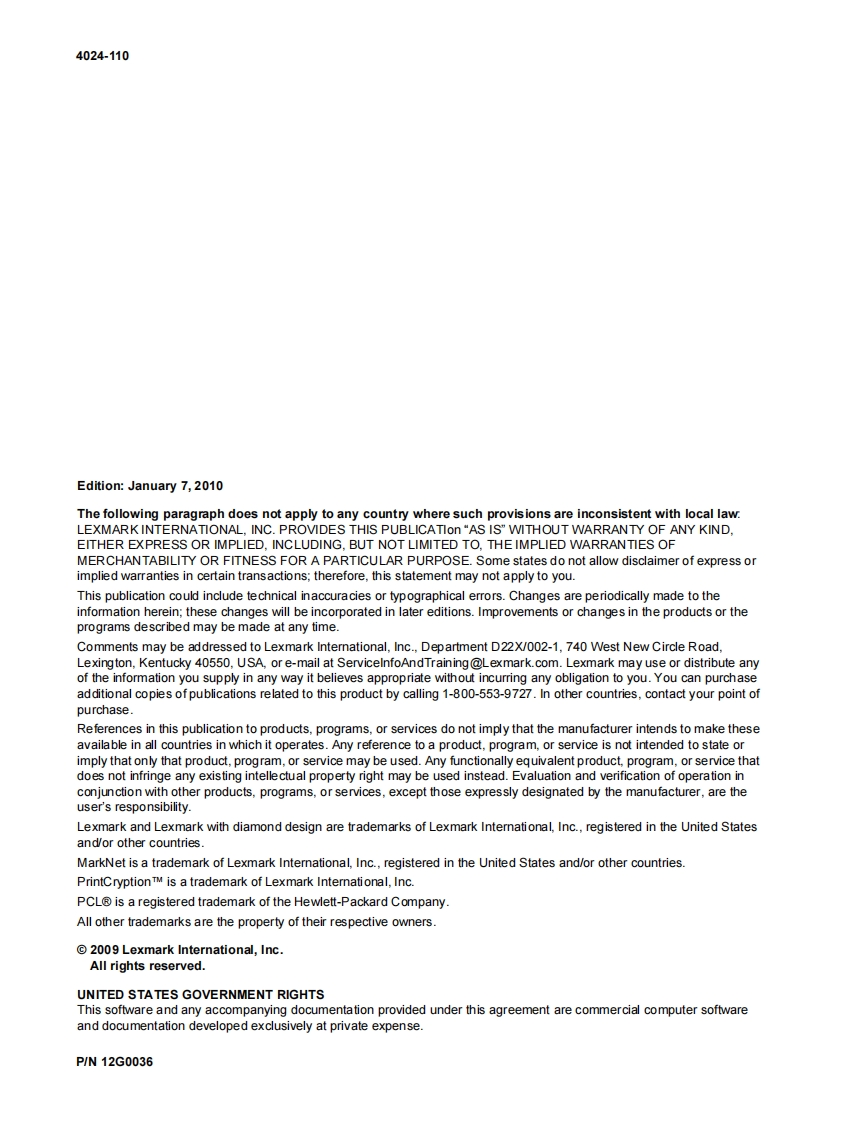 Revision:January 7,2010LexmarkM W850n and W850dn PrinterService Manual4024-110·Table of contents·Start diagnostics·Safety and notices·Trademarks·IndexLEXMARK.Lexmark and Lexmark with diamond design aretrademarks of Lexmark Intemational,Inc.,registeredin the United States and/or other countries