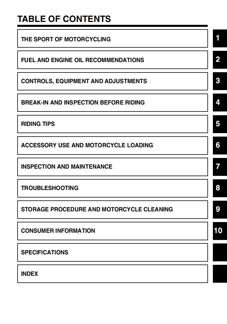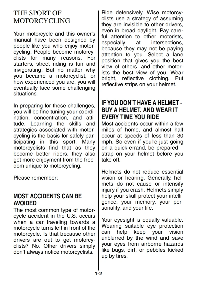 California Proposition 65 WarningA WARNINGEngine exhaust,some of its constituents,and certain product com-ponents contain or emit chemicals known to the State of Californiato cause cancer and birth defects or other reproductive harm.This manual should be considered a permanent part of themotorcycle and should remain with the motorcycle when resoldor otherwise transferred to a new owner or operator.Themanual contains important safety information and instructionswhich should be read carefully before operating the motorcycle.
