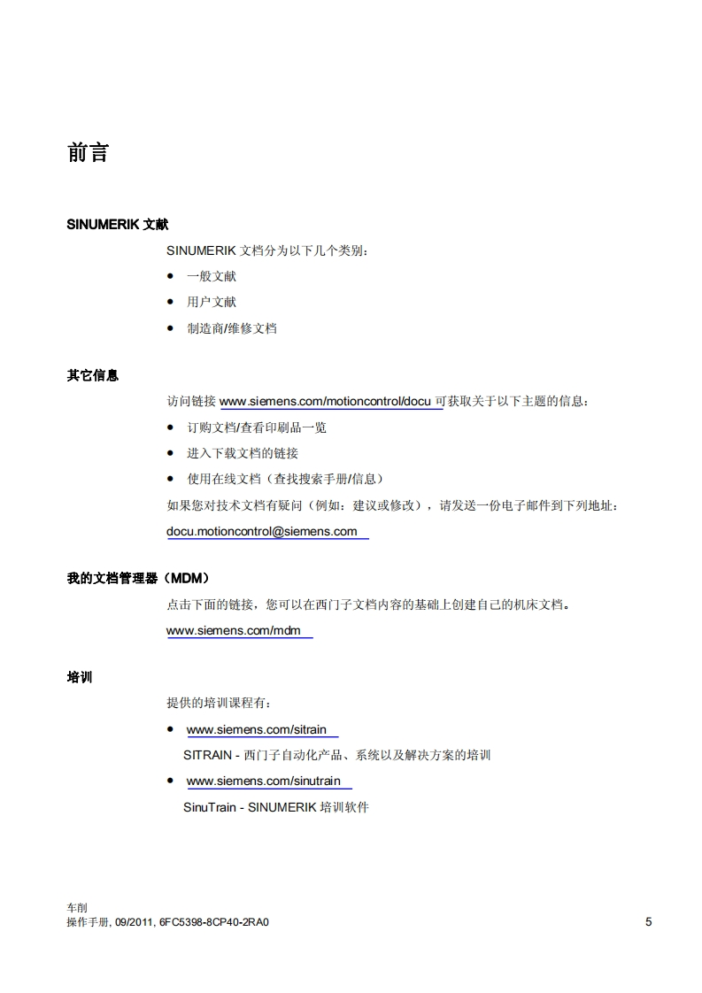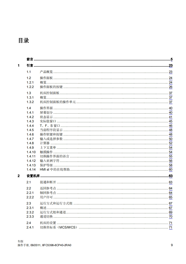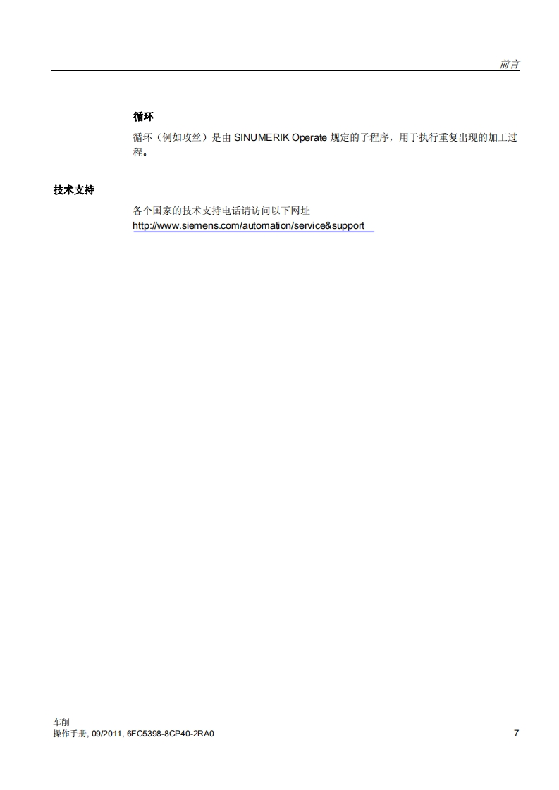 SIEMENS前言引言1设置机床2SINUMERIK以手动方式工作3SINUMERIK 840D sl/828D车削加工工件4加工模拟5操作手册创建G代码程序6创建ShopTum程序编程工艺功能(循环)8多通道视图9多通道支持10用户变量11程序示教12使用B轴加工13适用于:双刀架加工14SINUMERIK840Dsl/840DEs/828D控制系统软件版本用于840Dsl/840DEsl的CNC软件4.415用于PCU/PC的SINUMERIK Operate4.4刀具管理程序管理1609/2011转下页6FC5398-8CP40-2RA0