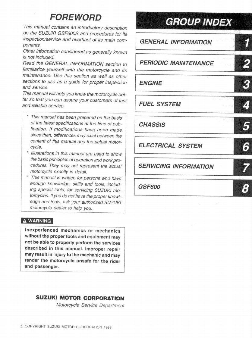 suzuki_gsf600bandit_维修维护手册_2000找手册网前天发布关注私信87.11MB333页027suzuki_gsf600bandit_维修维护手册_2000此内容为付费资源,请付费后查看¥19¥21黄金会员免费钻石会员免费立即购买您当前未登录!建议登陆后购买,可保存购买订单付费资源 第1页 / 共333页 第2页 / 共333页 第3页 / 共333页 第4页 / 共333页 第5页 / 共333页 第6页 / 共333页 第7页 / 共333页 第8页 / 共333页 第9页 / 共333页 第10页 / 共333页 试读已结束,还剩323页,您可下载完整版后进行离线阅读 THE ENDSuzuki 文本预览 SUZUKIGSF600S/GSF600SERVICE MANUAL99500-36100-01E 查看更多 收起部分 喜欢就支持一下吧收藏