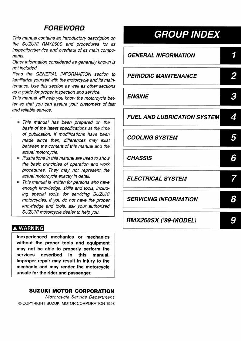 suzuki_rmx250s_x2798_x2799_service_manual摩托车维修手册找手册网前天发布关注私信31.73MB192页020suzuki_rmx250s_x2798_x2799_service_manual摩托车维修手册此内容为付费资源,请付费后查看¥19¥21黄金会员免费钻石会员免费立即购买您当前未登录!建议登陆后购买,可保存购买订单付费资源 第1页 / 共192页 第2页 / 共192页 第3页 / 共192页 第4页 / 共192页 第5页 / 共192页 第6页 / 共192页 第7页 / 共192页 第8页 / 共192页 第9页 / 共192页 第10页 / 共192页 试读已结束,还剩182页,您可下载完整版后进行离线阅读 THE ENDSuzuki 文本预览 SUZUKRMX250SSERVICE MANUAL99500-22071-01E 查看更多 收起部分 喜欢就支持一下吧收藏