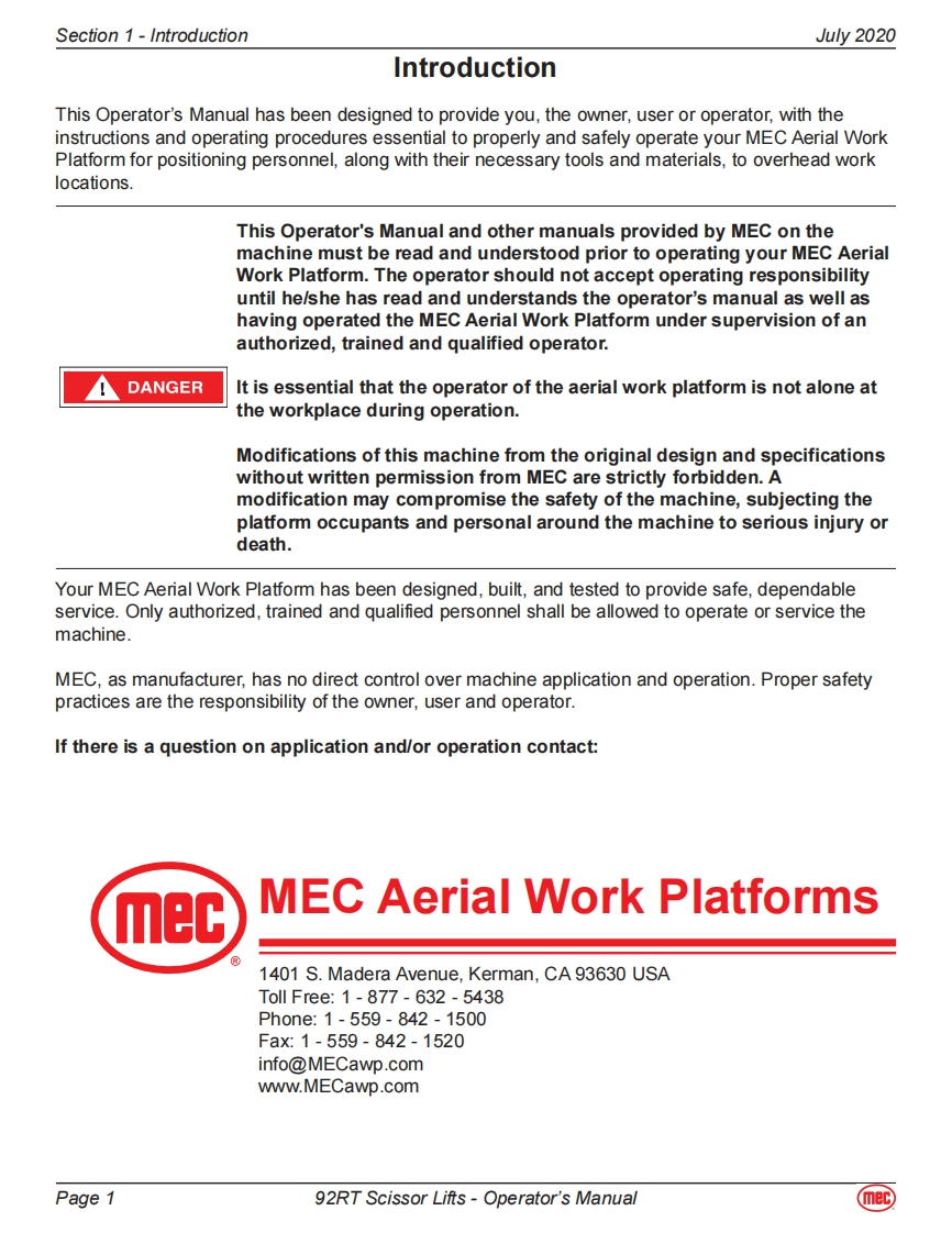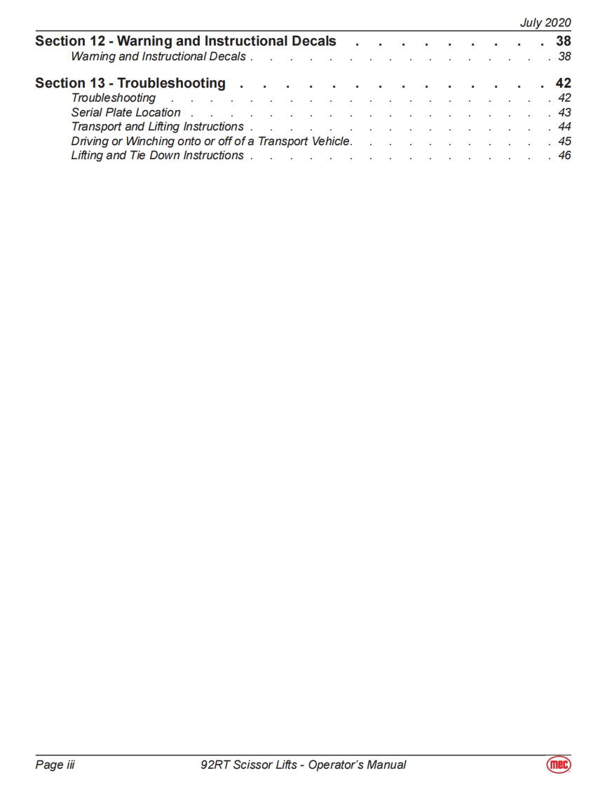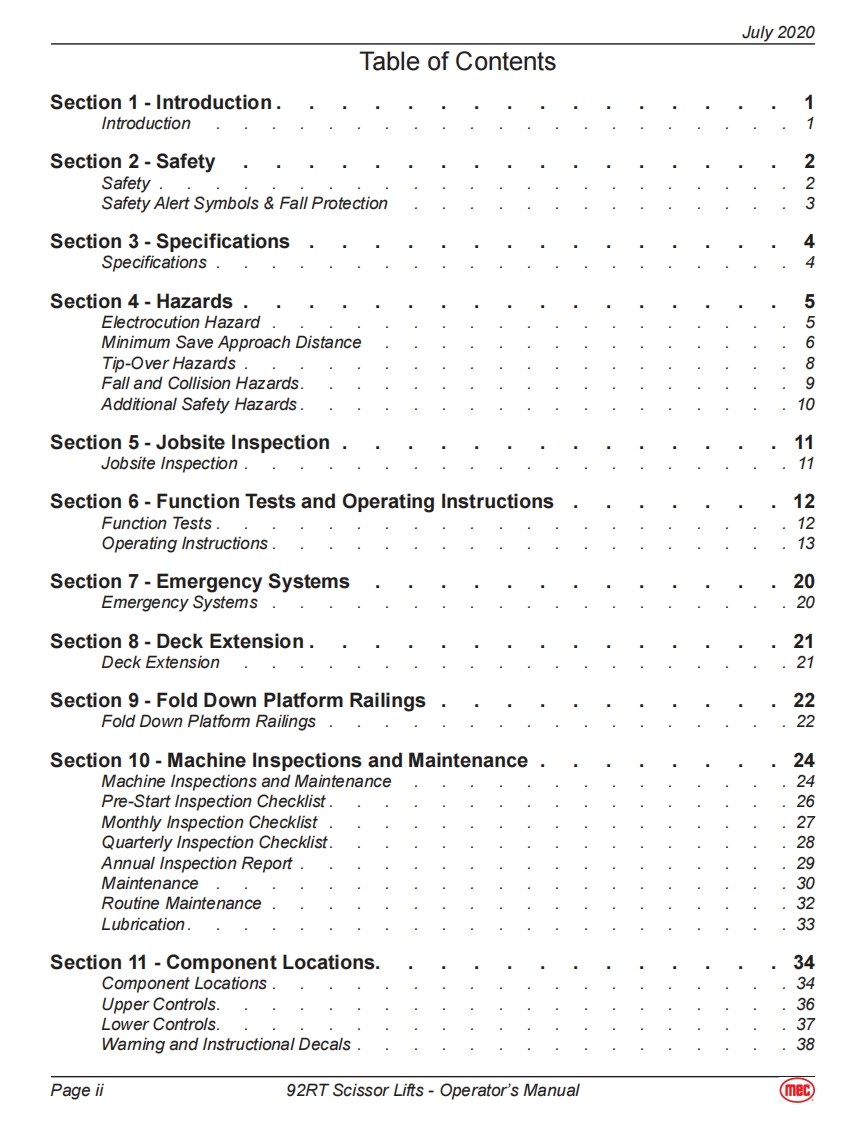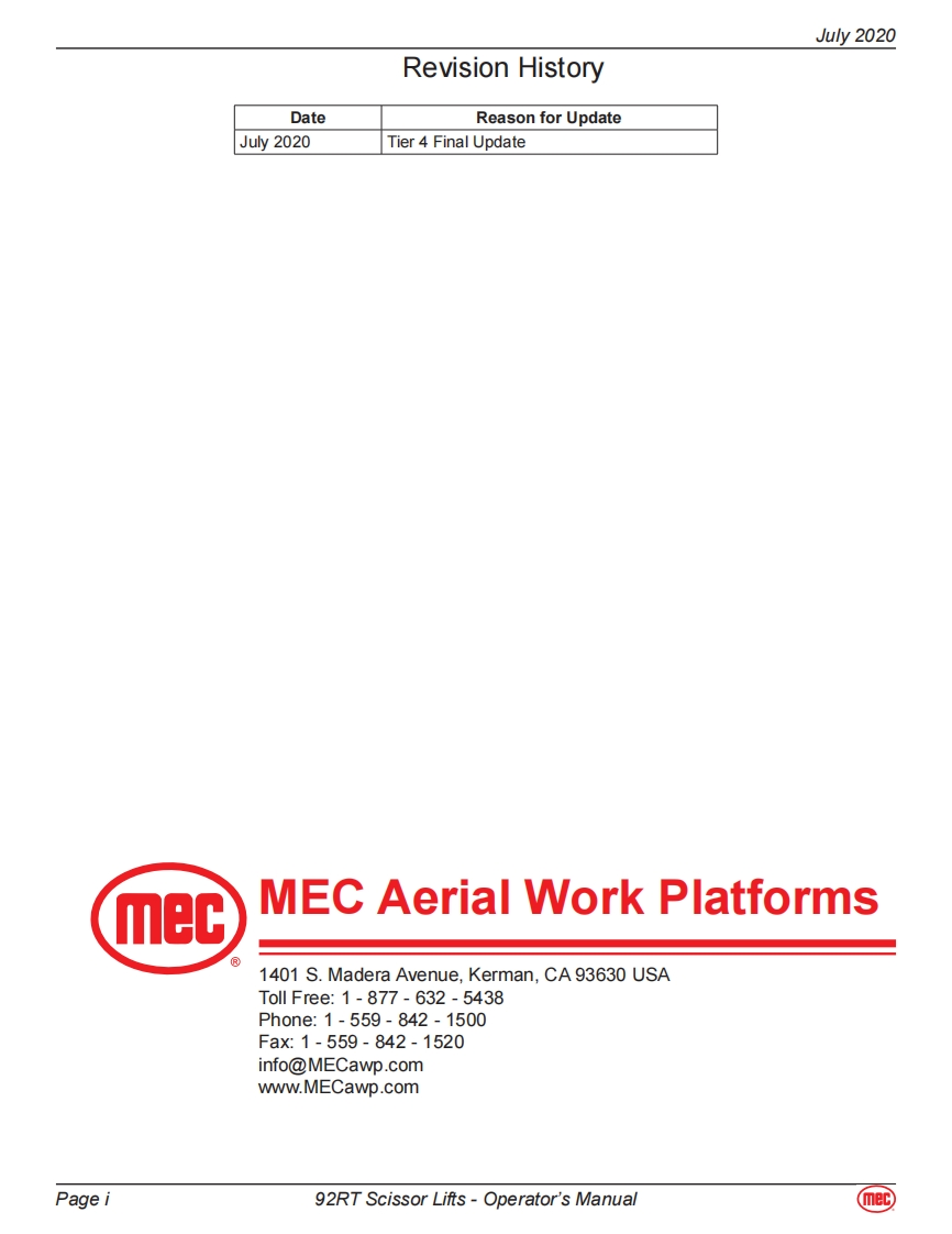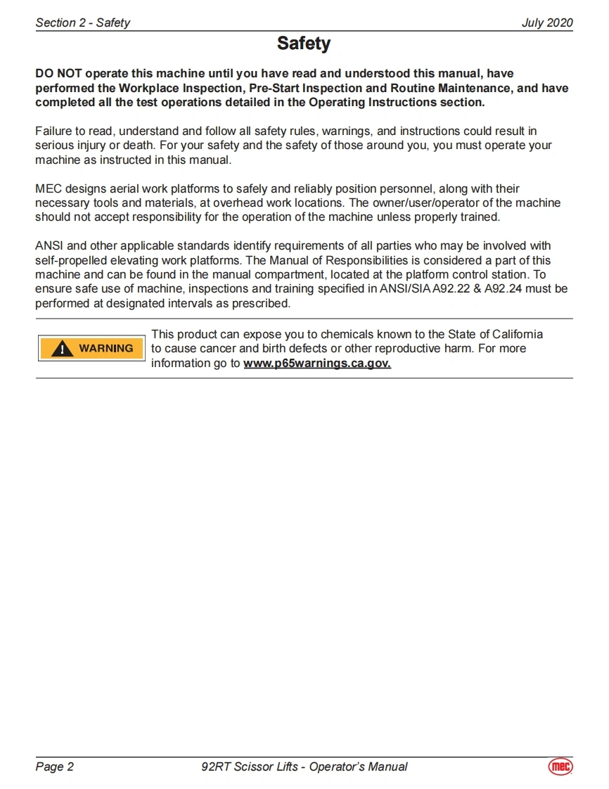 MEC-92RT-operator-manual操作与维护保养说明书手册找手册网昨天发布关注私信6.07MB56页037MEC-92RT-operator-manual操作与维护保养说明书手册此内容为付费资源,请付费后查看¥19¥21黄金会员免费钻石会员免费立即购买您当前未登录!建议登陆后购买,可保存购买订单付费资源 第1页 / 共56页 第2页 / 共56页 第3页 / 共56页 第4页 / 共56页 第5页 / 共56页 第6页 / 共56页 第7页 / 共56页 第8页 / 共56页 第9页 / 共56页 第10页 / 共56页 试读已结束,还剩46页,您可下载完整版后进行离线阅读 THE END利勃海尔/Swift/Mec 文本预览 mecOperator's Manual92RT Scissor LiftsART_30125492RT Serial Number Range-11900001-Up Part #918586092RT Serial Number Range-12900001-UpJuly 2020 查看更多 收起部分 喜欢就支持一下吧收藏
